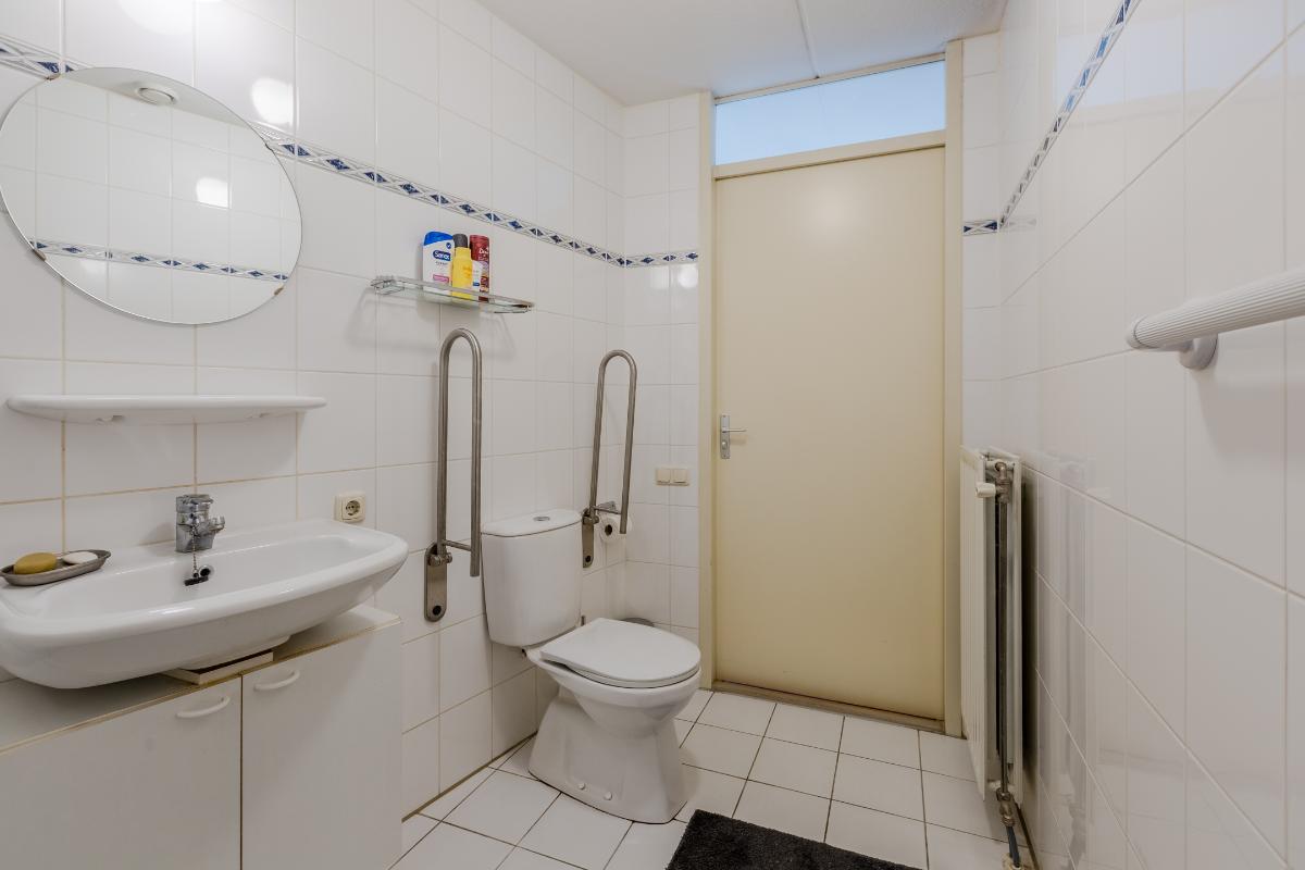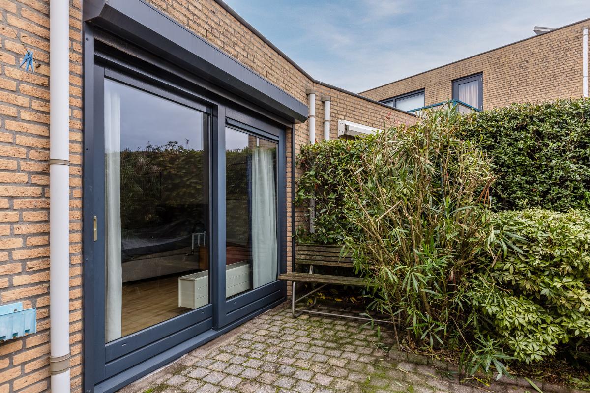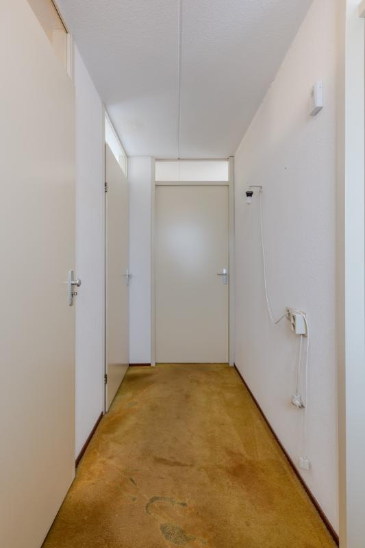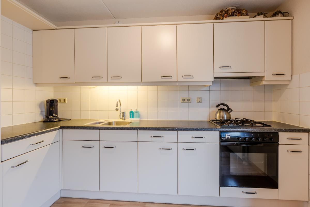 Globale indeling: Begane grond: Entree, hal met toegang tot het toilet, de technische ruimte, de meterkast, de garage en de woonkamer. De woonkamer is gericht op zowel de voorzijde als de patio. De open keuken beschikt over een 4-pits gasstel, een afzuigkap, een oven en een koelkast. Op dezelfde verdieping vind je een comfortabele slaapkamer en een gebruiksvriendelijke badkamer voorzien van een toilet, inloopdouche en wastafel. Zowel vanuit de woonkamer en slaapkamer heeft u middels een schuifpui toegang tot de patio. De vloer van de verdieping is v.v. laminaat. Wanden v.v. stucwerk.