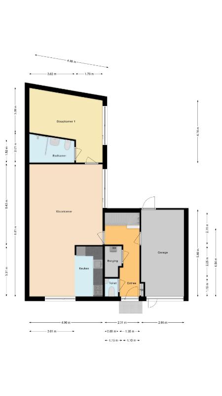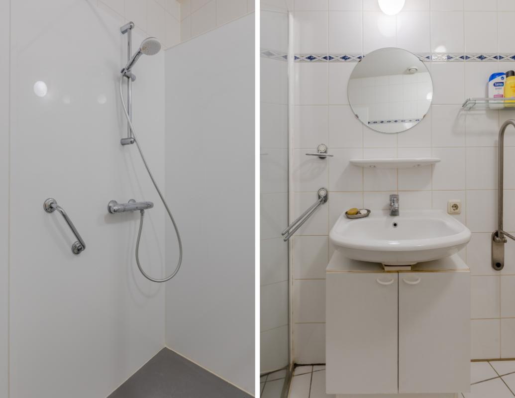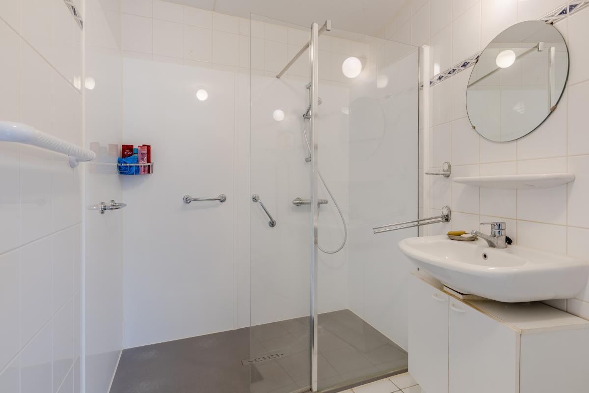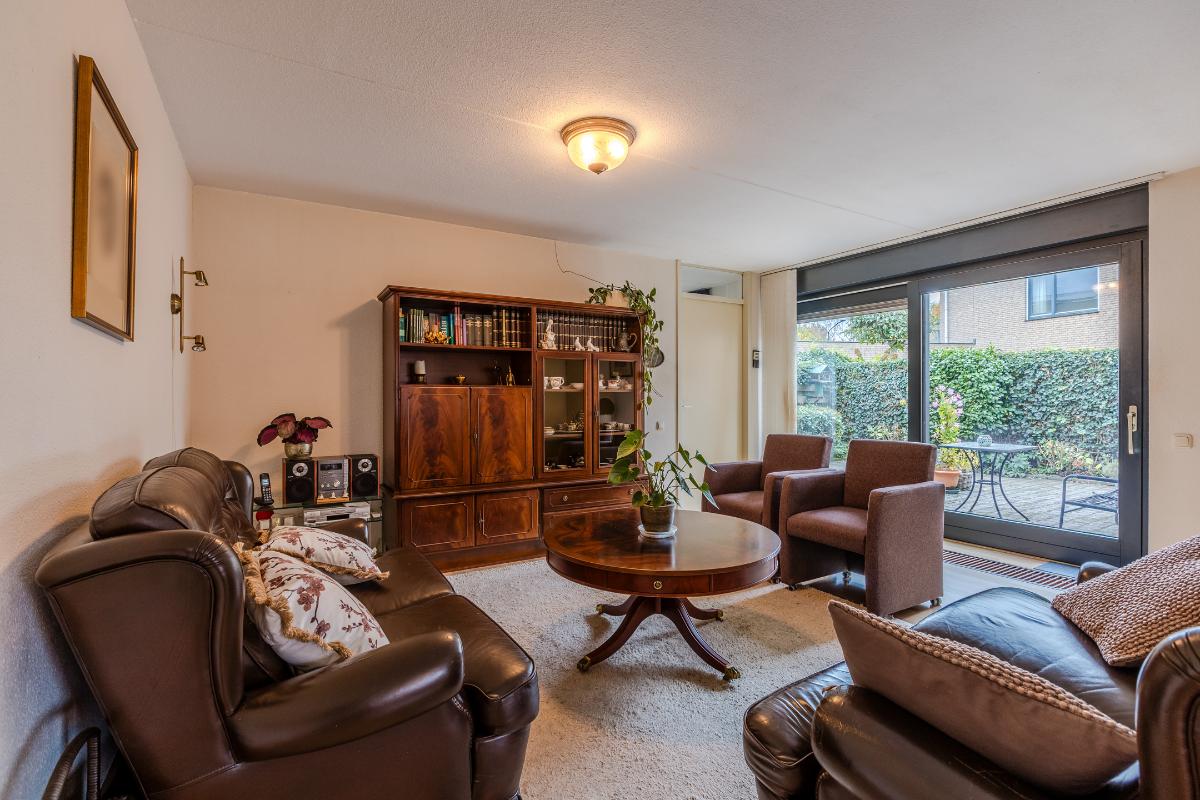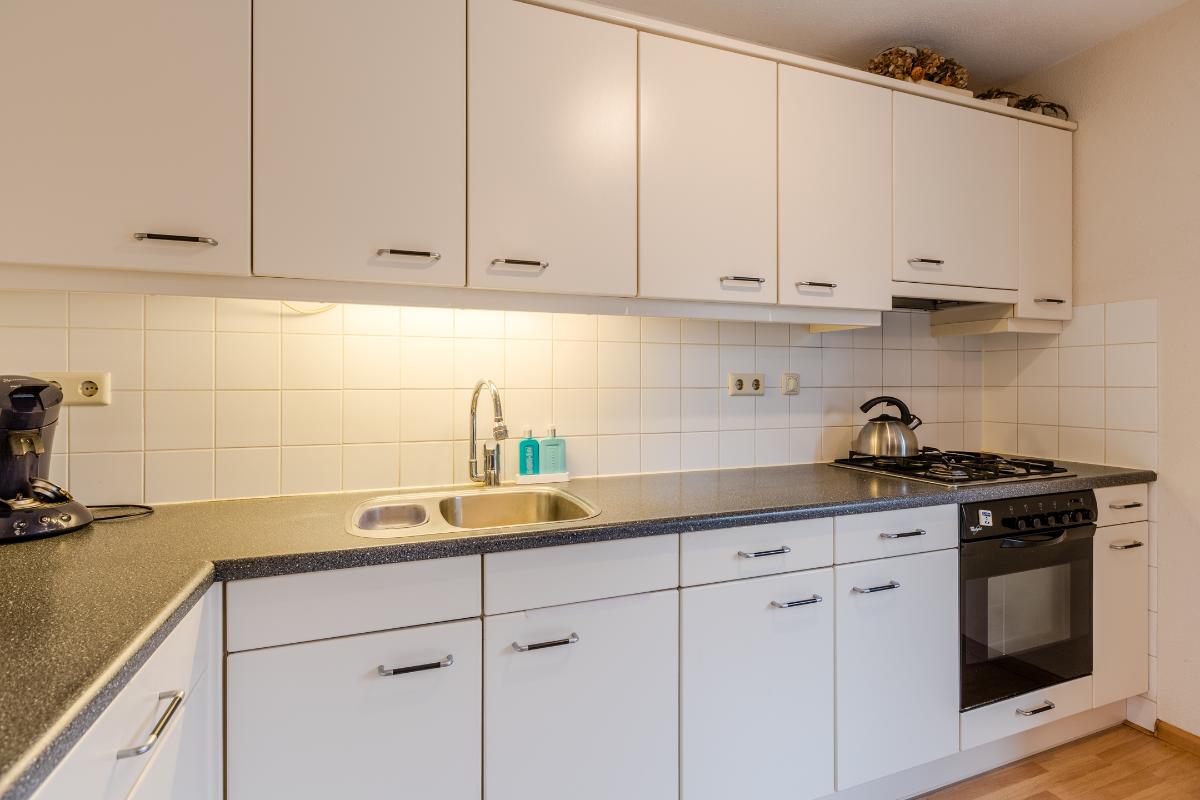 Globale indeling: Begane grond: Entree, hal met toegang tot het toilet, de technische ruimte, de meterkast, de garage en de woonkamer. De woonkamer is gericht op zowel de voorzijde als de patio. De open keuken beschikt over een 4-pits gasstel, een afzuigkap, een oven en een koelkast. Op dezelfde verdieping vind je een comfortabele slaapkamer en een gebruiksvriendelijke badkamer voorzien van een toilet, inloopdouche en wastafel. Zowel vanuit de woonkamer en slaapkamer heeft u middels een schuifpui toegang tot de patio. De vloer van de verdieping is v.v. laminaat. Wanden v.v. stucwerk.