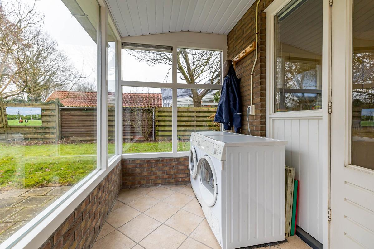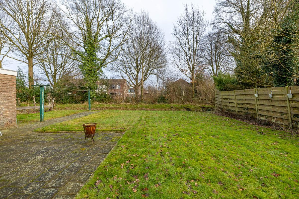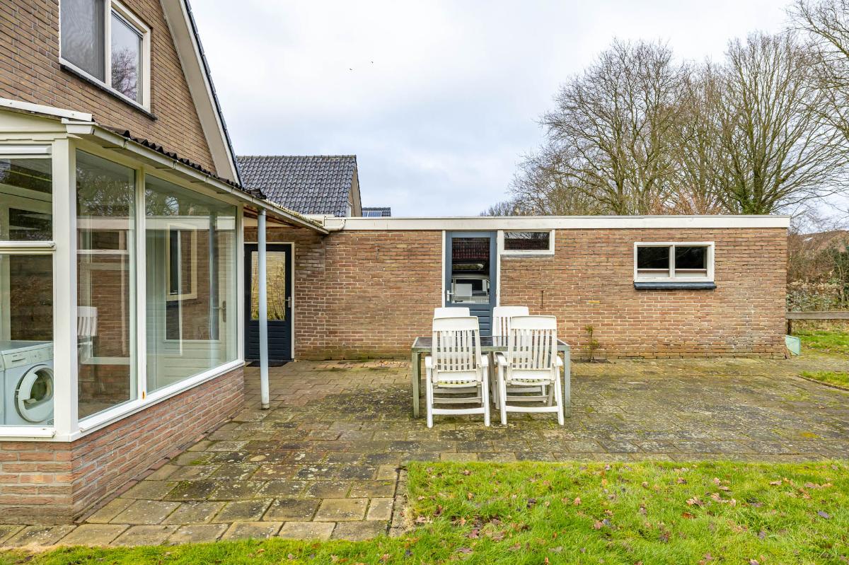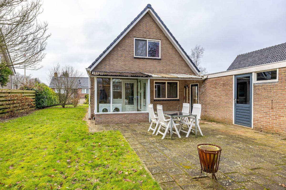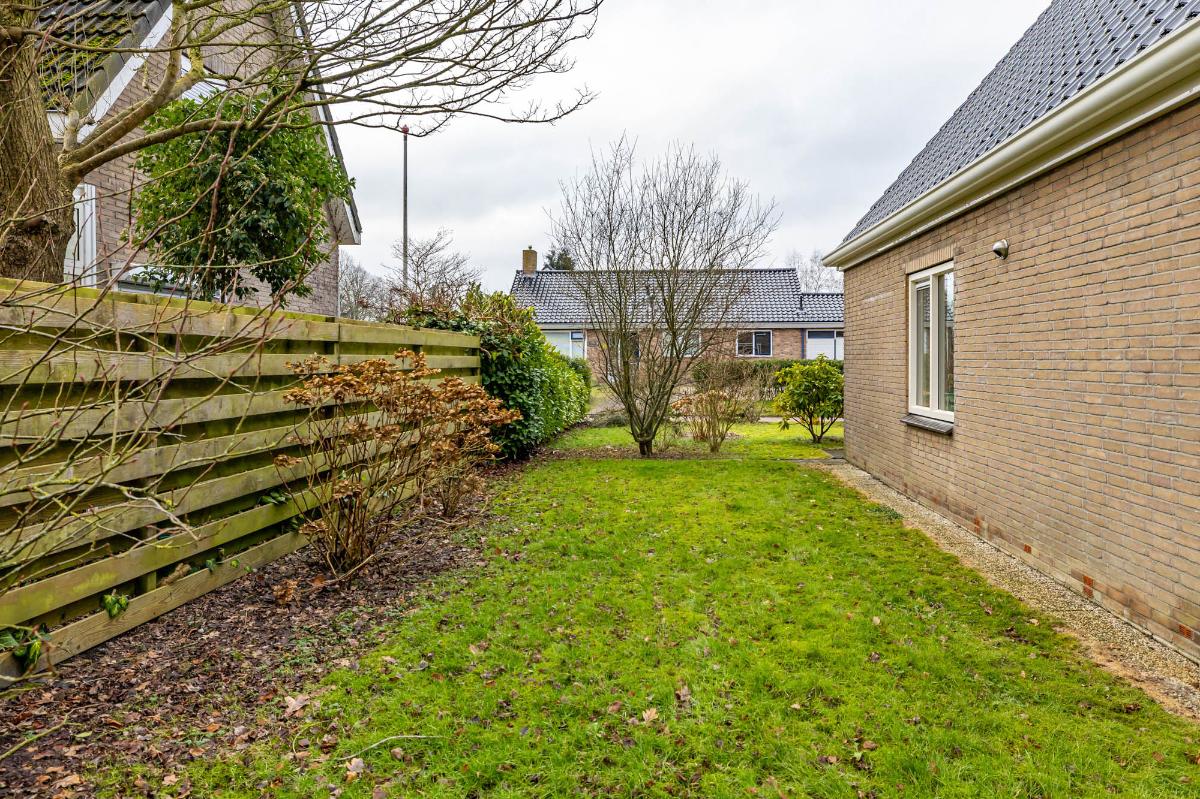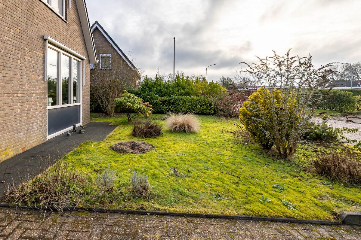Tuin De royale tuin loopt langs de zijkant van de woning en is eenvoudig maar verzorgd, met veel gras en een terras direct achter de woning. Dit biedt een prachtige basis voor een creatieve indeling: meerdere zitgedeeltes, bloeiende borders, een moestuin of een gezellige loungehoek zijn allemaal mogelijk. De tuin is zonnig, privé en omringt de woning, waardoor binnen en buiten mooi met elkaar verbonden zijn.