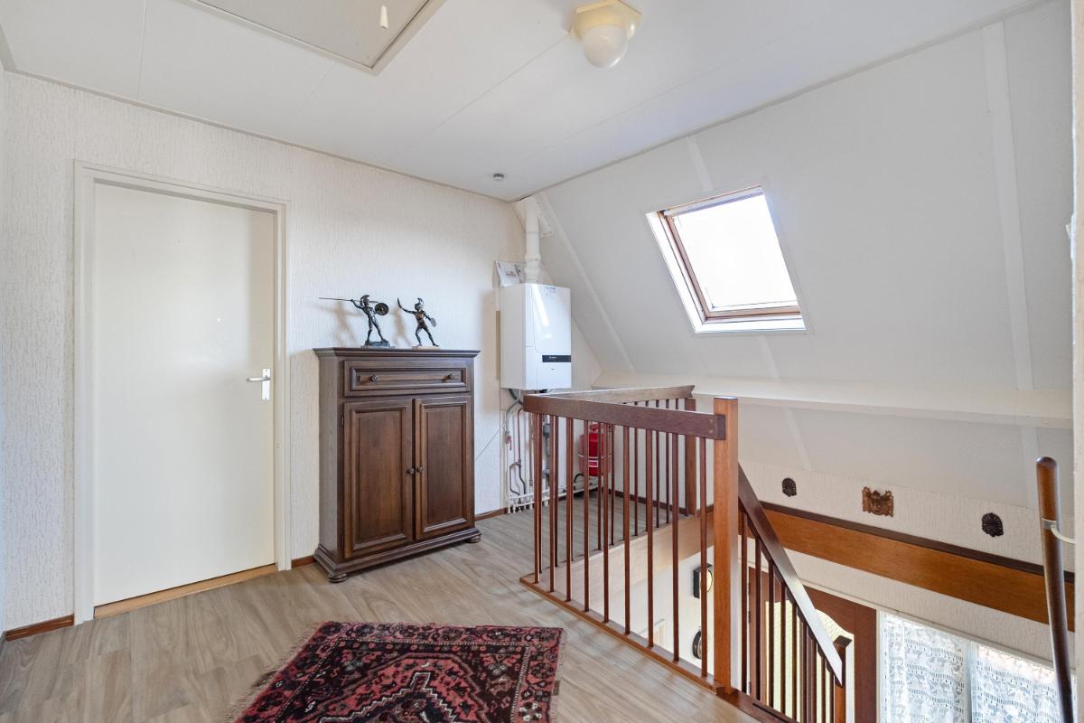 Op de verdieping bevinden zich drie slaapkamers met nog een aparte ruimte, nu in gebruik als toilet, deze ingericht worden als tweede badkamer. Op de overloop is ook de CV ketel opgesteld. Deze is vernieuwd in het jaar 2025. De ruime bergzolder is via een vlizotrap bereikbaar.
