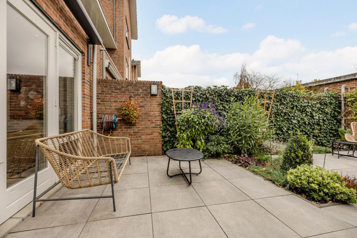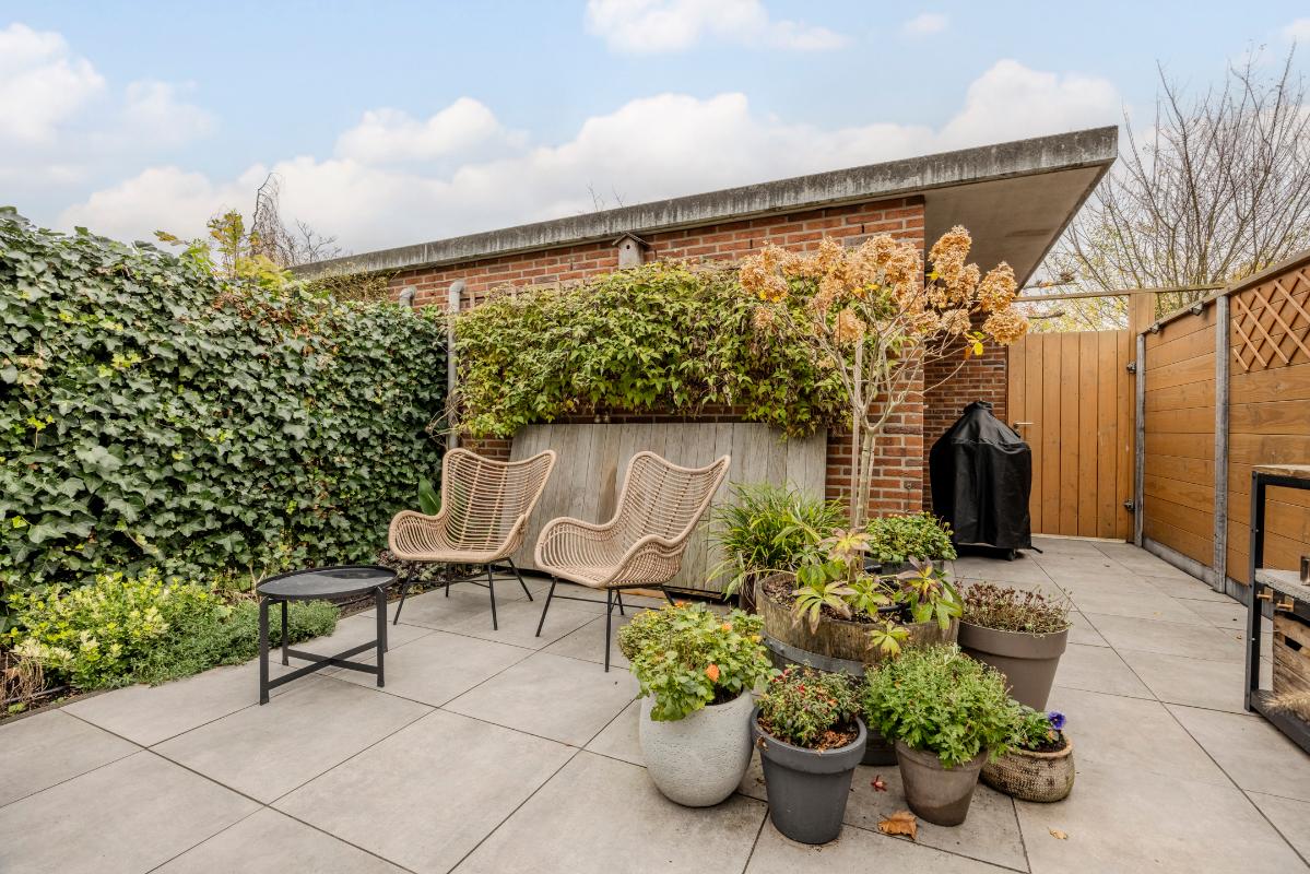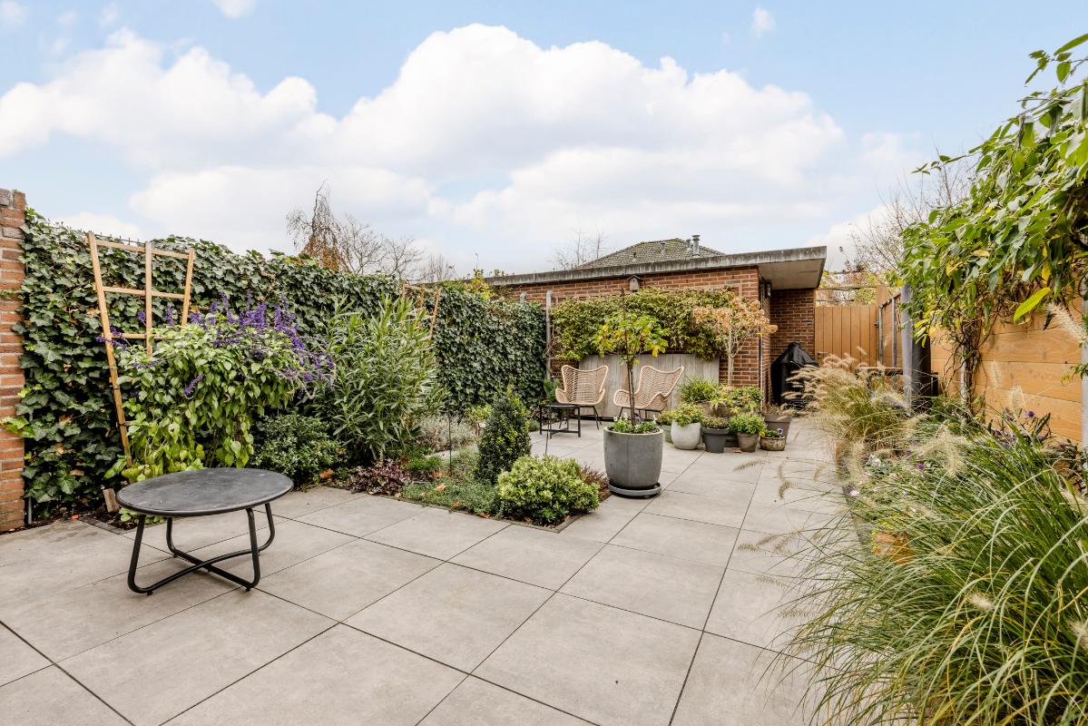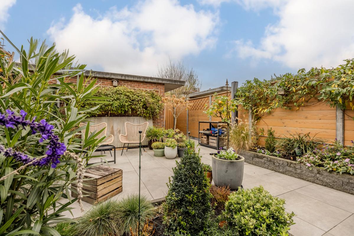 De prachtig aangelegde tuin (2020) met keramische tegels en mooie vaste beplanting is een waar genot. De tuin is gericht op het oosten en biedt voldoende ruimte om te ontspannen en te genieten van de buitenlucht. Een vrijstaande stenen berging biedt extra opslagruimte. Elektrische buitenzonwering aanwezig aan de achterzijde en een buitenkraan aan de voor en de achterzijde.