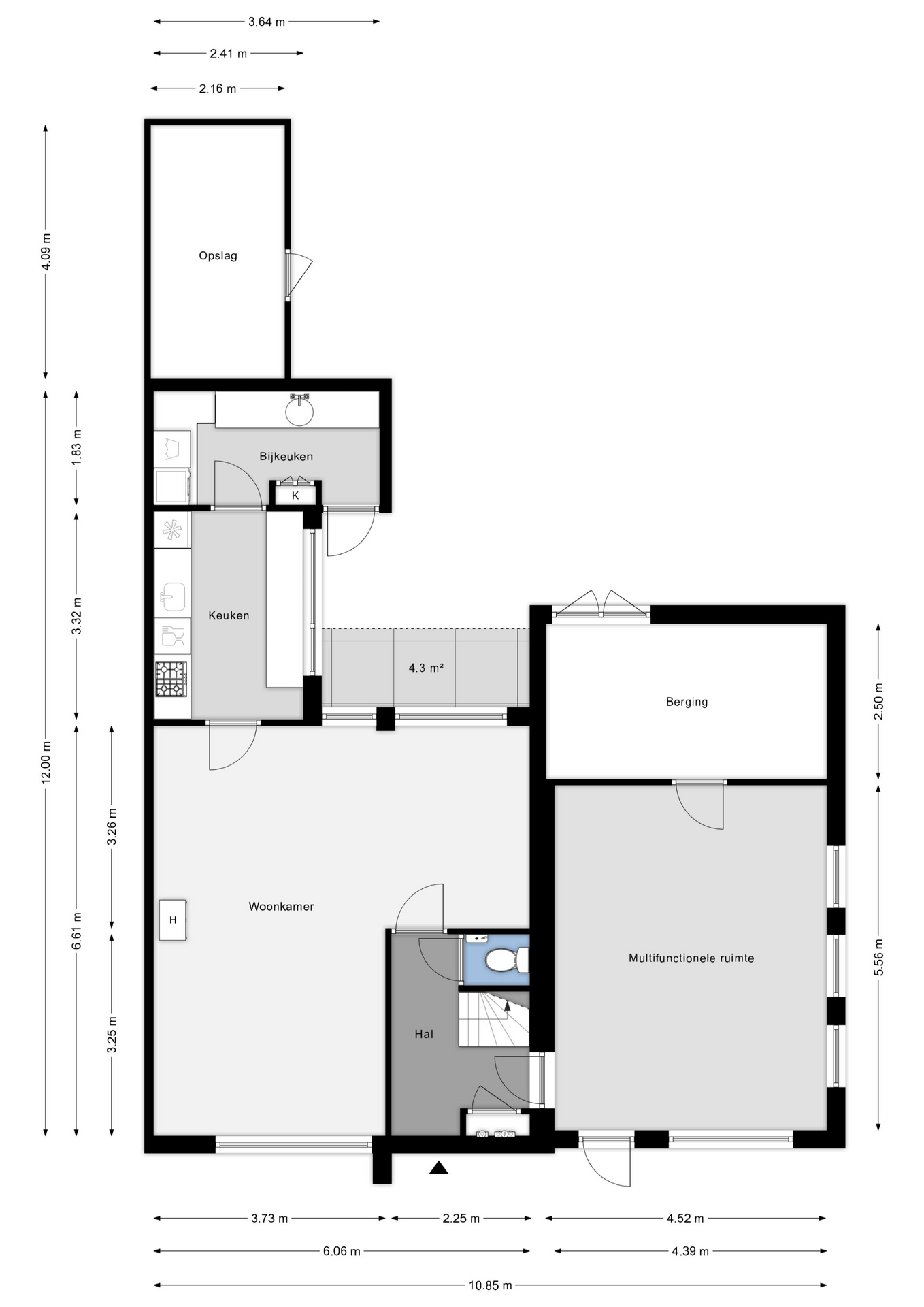 ENTREE/HAL Entree met meterkast (8 groepen en 2 aardlekschakelaars), trapopgang naar de eerste verdieping en toegang tot de woonkamer, toiletruimte en multifunctionele ruimte in de aanbouw aan de zijkant.
