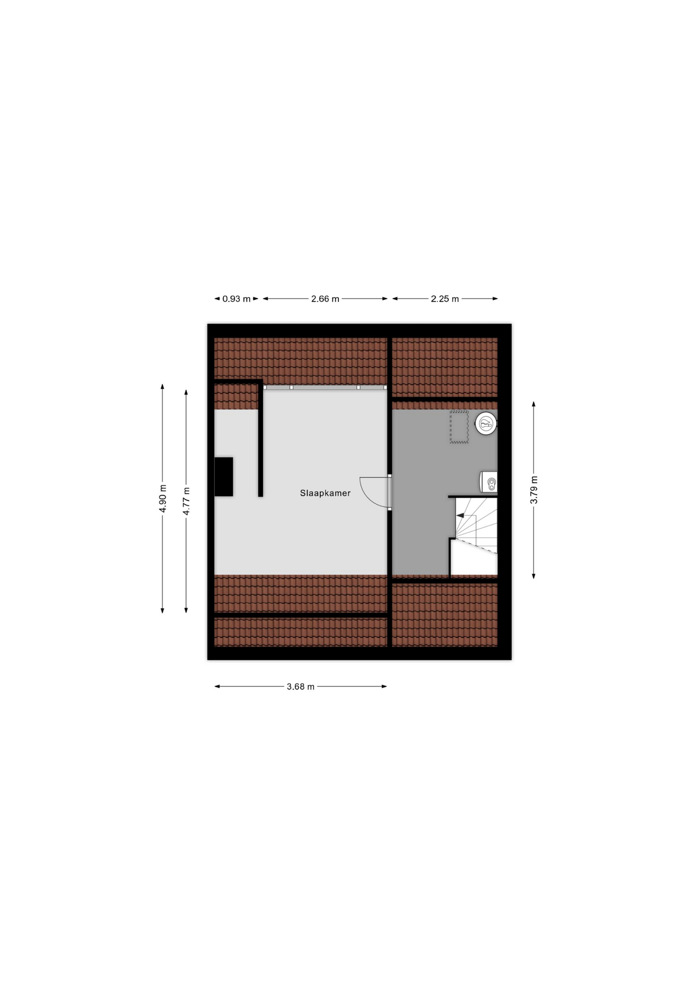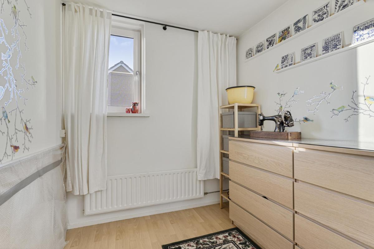 ZOLDERSLAAPKAMER Ruime slaapkamer met dakkapel, waardoor extra ruimte en licht wordt gecreëerd. Achter de knieschotten bevindt zich de praktische bergruimte. Deze kamer is handig en efficient ingedeeld met de extra kastruimte in de hoek.