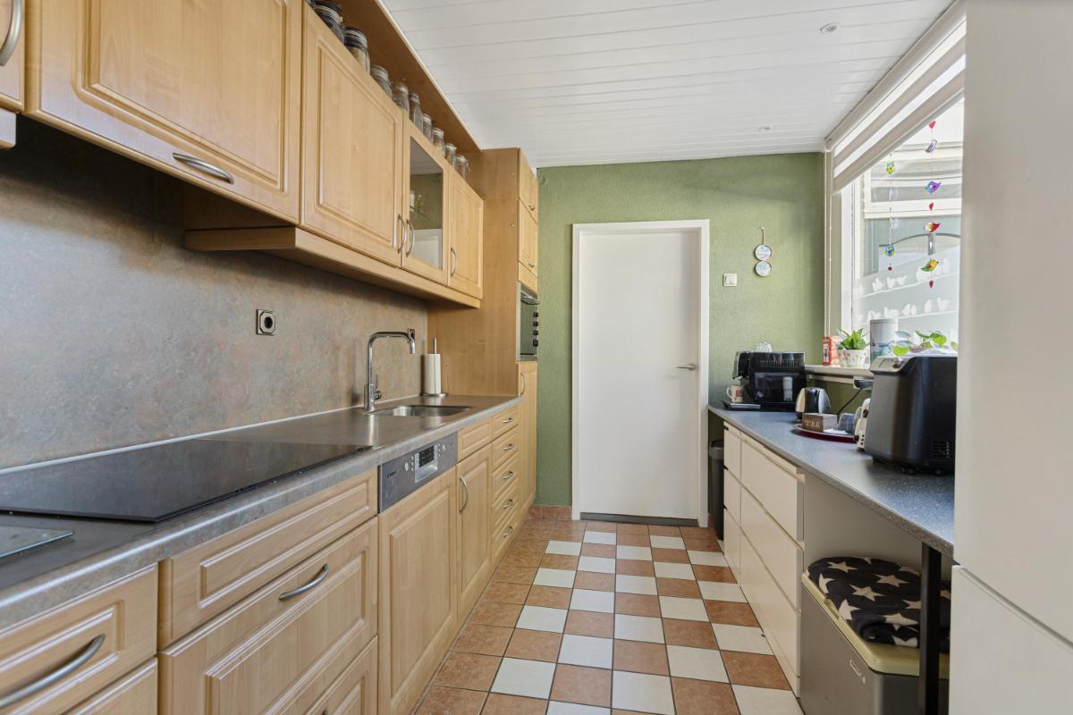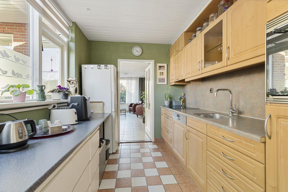 KEUKEN De complete keuken is uitgevoerd in een praktische wandopstelling en beschikt over een 4-pits inductiekookplaat (2026), vaatwasser, oven, spoelbak en diverse bergkasten. Vanuit de keuken heeft u direct toegang tot de naastgelegen bijkeuken en een fraai zicht over de tuin.