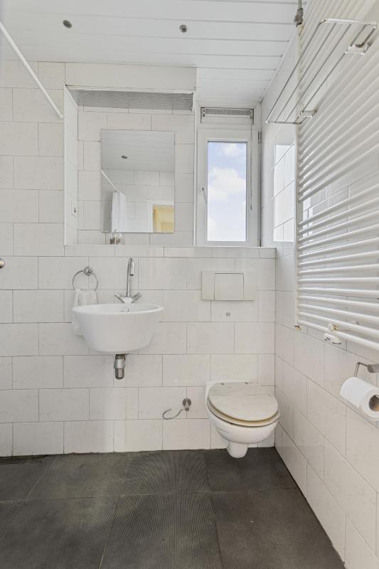 BADKAMER De badkamer op deze verdieping is voorzien van een inloopdouche, vrijhangend closet, wastafel, designradiator en inbouwspots.