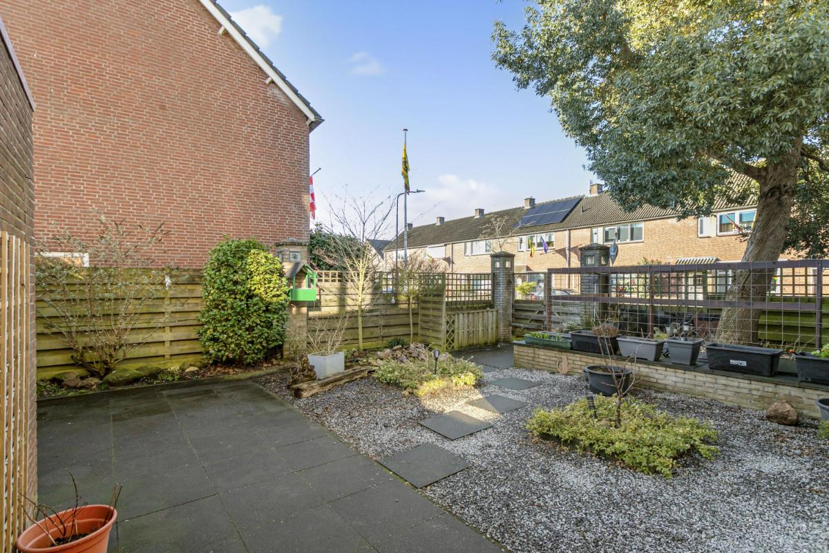 TUIN De woning beschikt over een royale tuin gesitueerd aan de voorzijde, zijkant én achterzijde. De achtertuin is gunstig gelegen op het zonnige zuiden en is verzorgd aangelegd met siergrind, beplanting en een fraaie vijverpartij. Daarnaast is de tuin voorzien van een beregeningsinstallatie en een containerhok. Via de openslaande houten deuren aan de zijkant bestaat de mogelijkheid om desgewenst op eigen terrein te parkeren. Aan de woning bevindt zich een sfeervolle overkapping met inbouwspots waar u heerlijk beschut kunt zitten en tot slot beschikt de tuin over 2 bergingen; berging 1: ruime opslag met licht en elektra; berging 2 gelegen achter de multifunctionele ruimte (bereikbaar met een tussendeur) met eveneens een ruime opslag en voorzien van de omvormer voor de zonnepanelen.