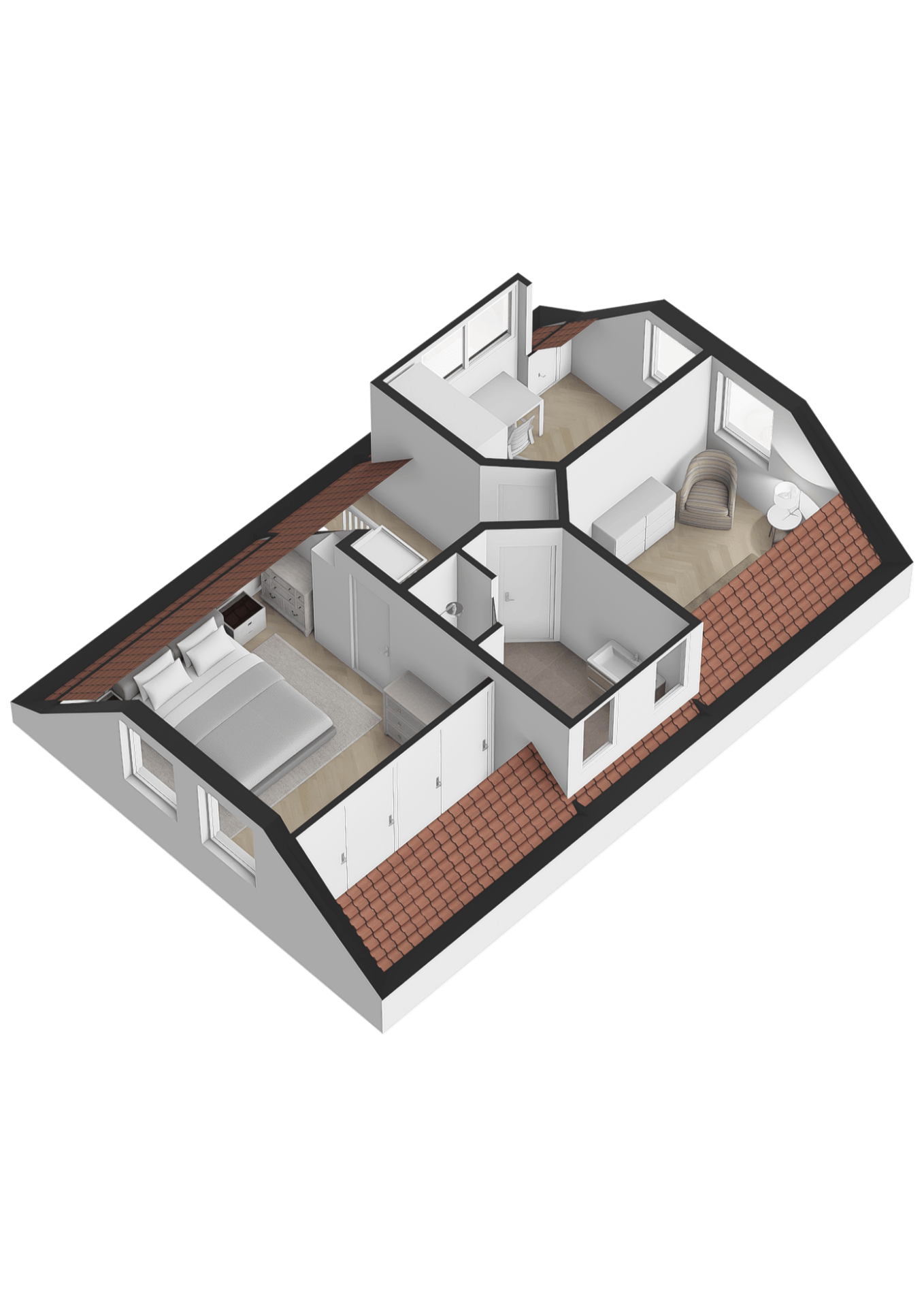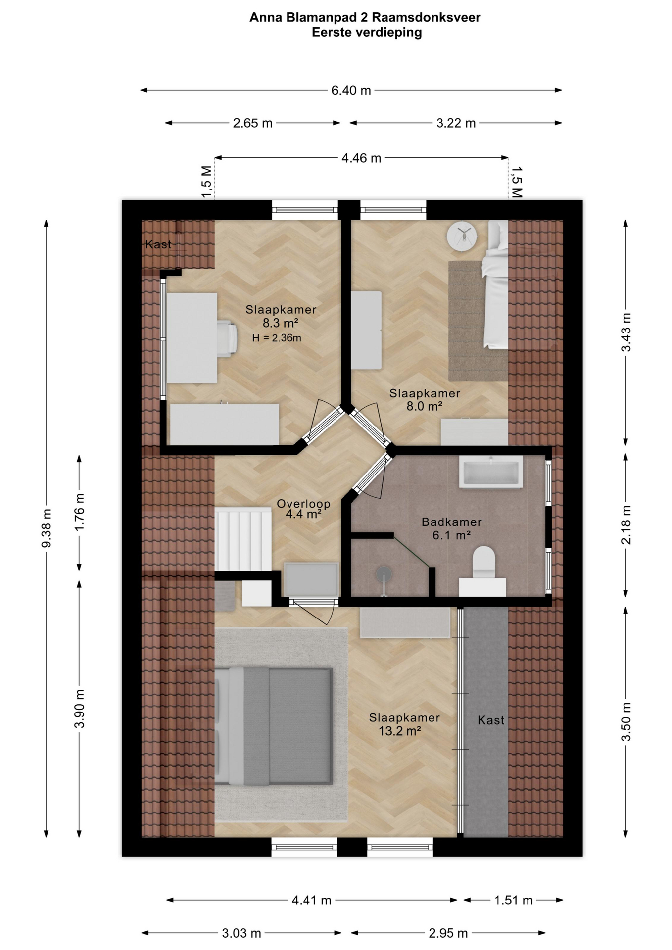 Bovenverdieping & Buitenleven Op de eerste verdieping wachten drie comfortabele slaapkamers op u. De nette badkamer is voorzien van een douche, toilet en een compleet wastafelmeubel.