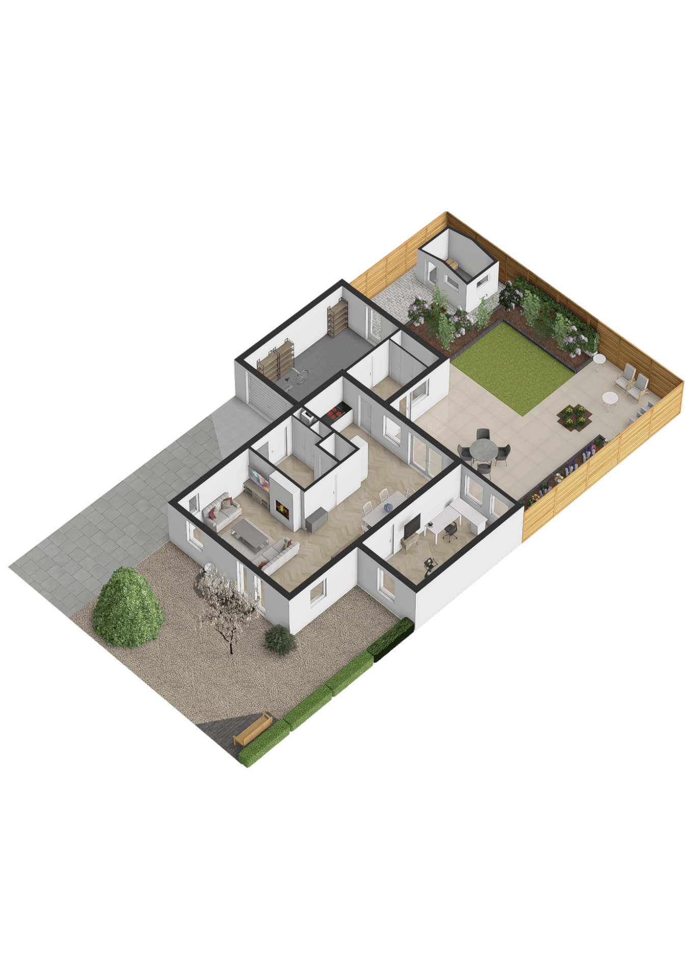 Een Warm Welkom U wordt ontvangen met een eigen oprit én garage, wat het parkeren van uw auto wel heel gemakkelijk maakt. Zodra u de woning betreedt, ervaart u direct de sfeer. De ruime L-vormige woonkamer is een ware blikvanger, compleet met een sfeervolle gashaard die zorgt voor gezellige avonden. Dankzij de vloerverwarming op de begane grond is het hier het hele jaar door behaaglijk.