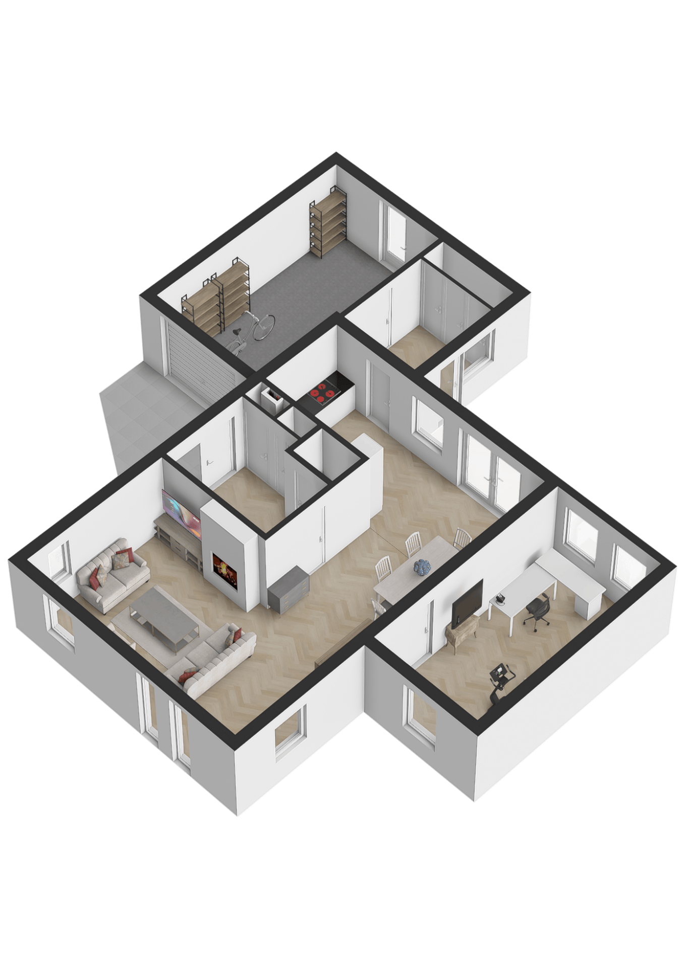 Flexibel Wonen met Opties Uniek aan deze woning is de aangebouwde extra kamer naast de woonkamer. Deze ruimte is perfect in te zetten als thuiskantoor, speelkamer, of met een kleine aanpassing, zelfs als levensloopbestendige slaapkamer op de begane grond!