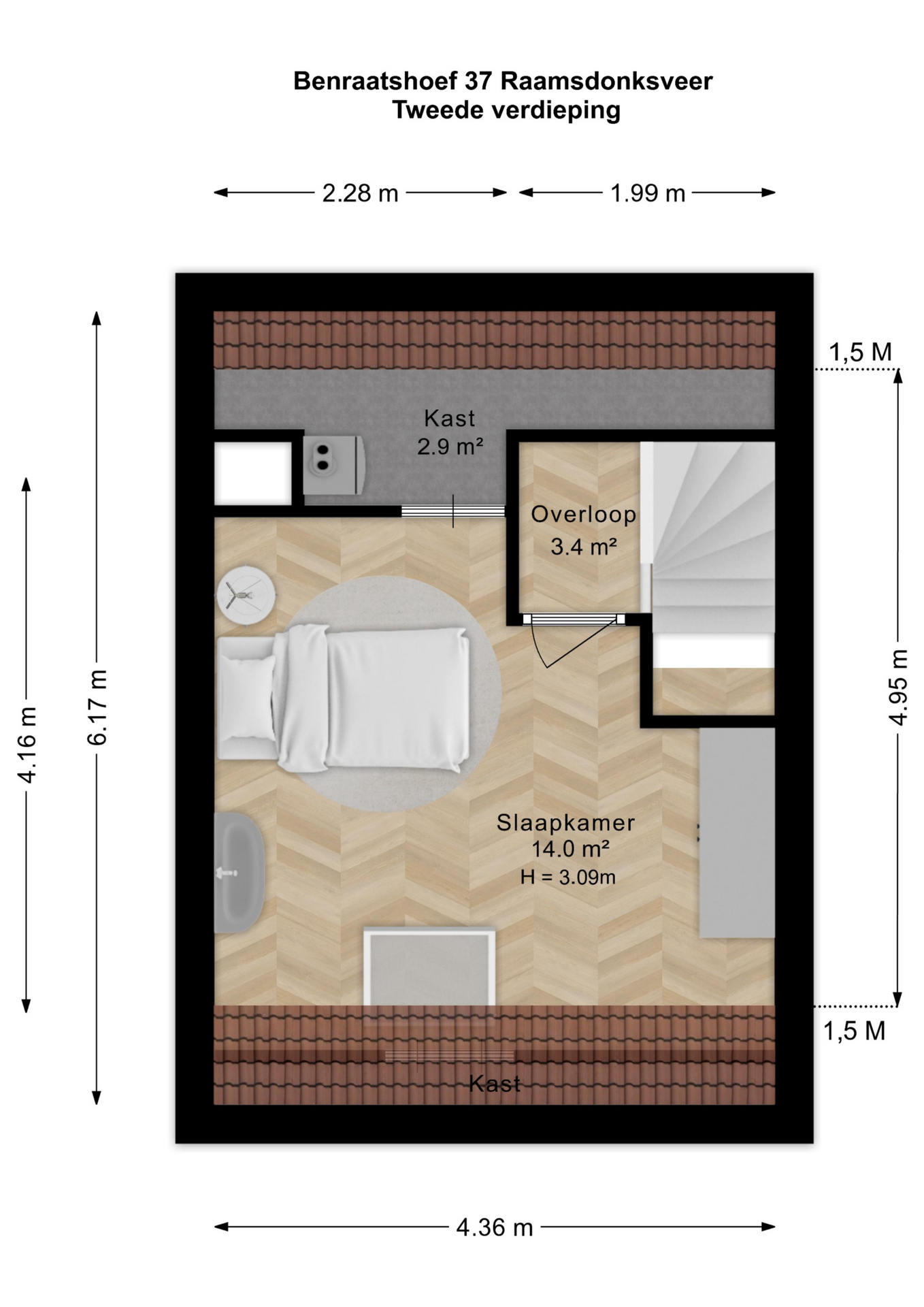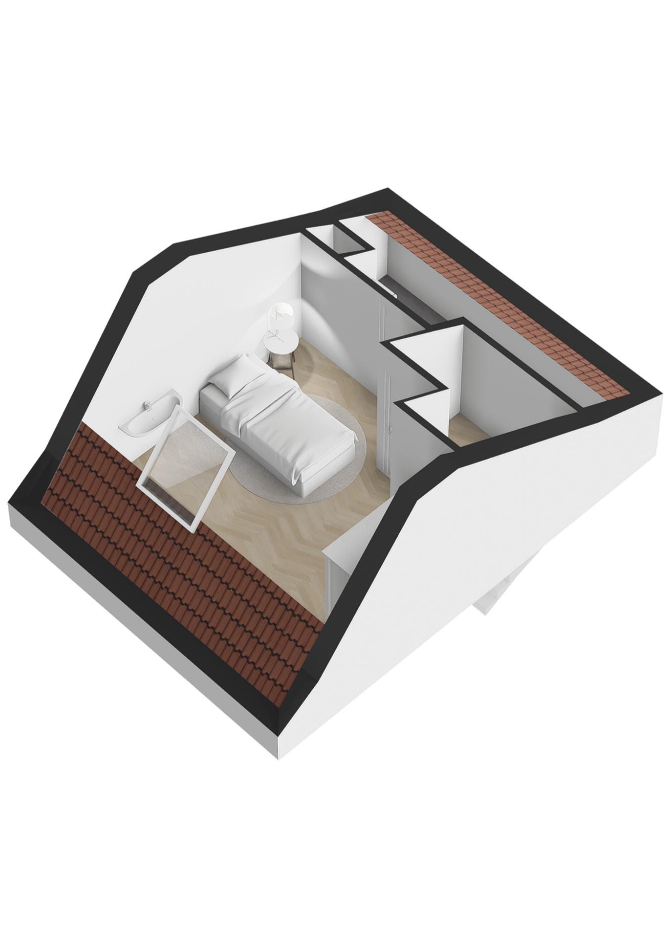 Tweede verdieping Via een vaste trap bereikt u de overloop met aansluitend een ruime zolderslaapkamer. Dankzij het dakraam is dit een lichte en comfortabele kamer, voorzien van een praktische vaste wastafel. Daarnaast is er een grote bergruimte met de opstelling van de c.v.-installatie.