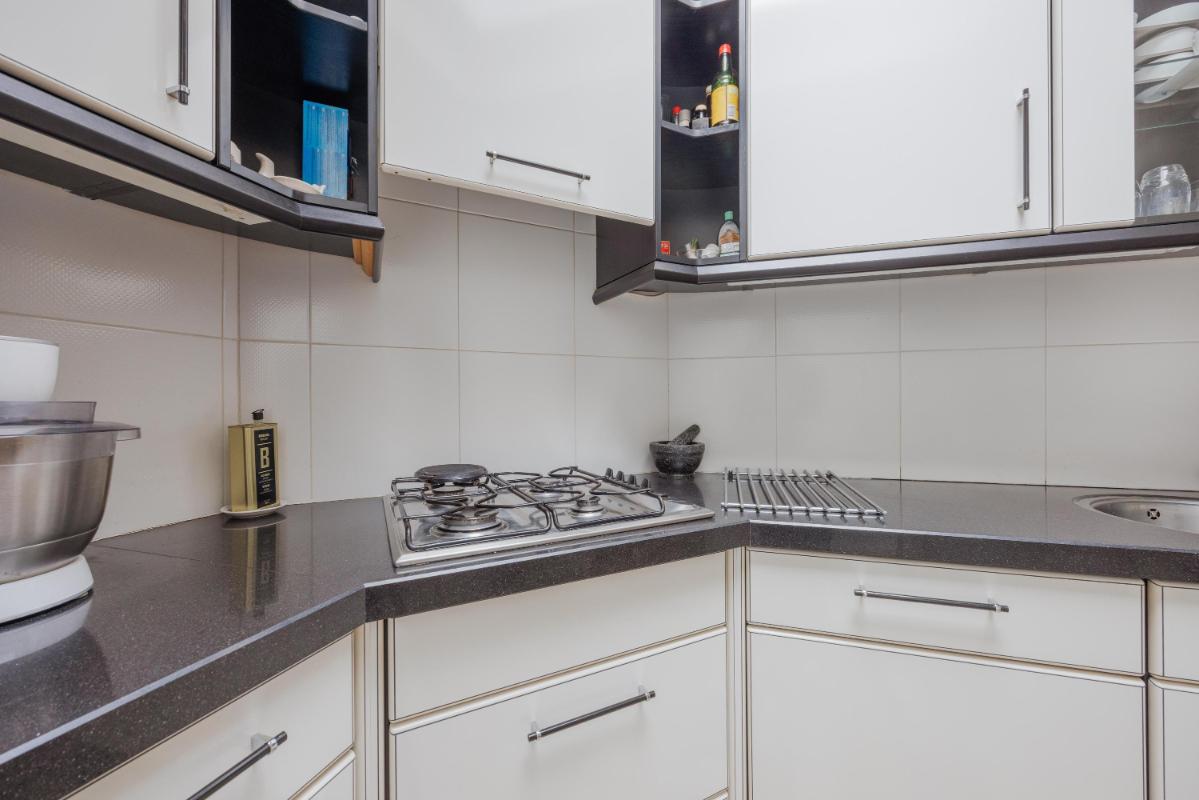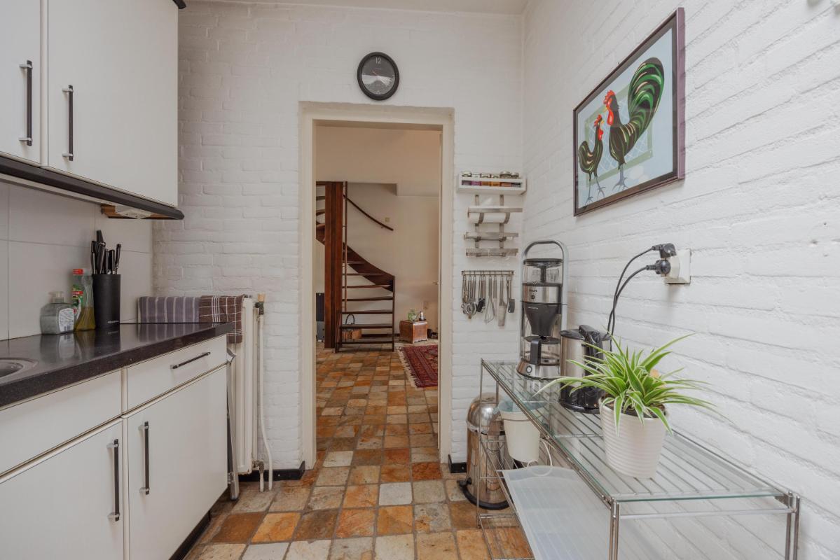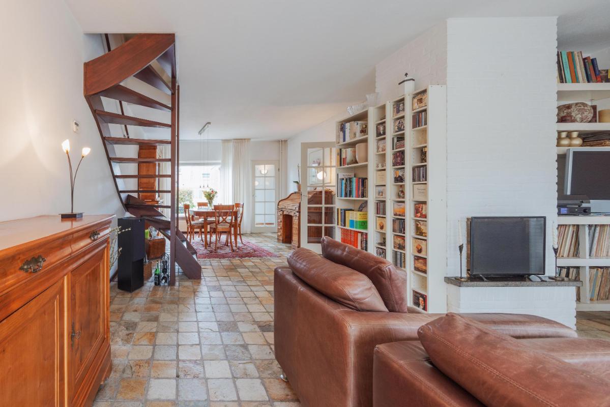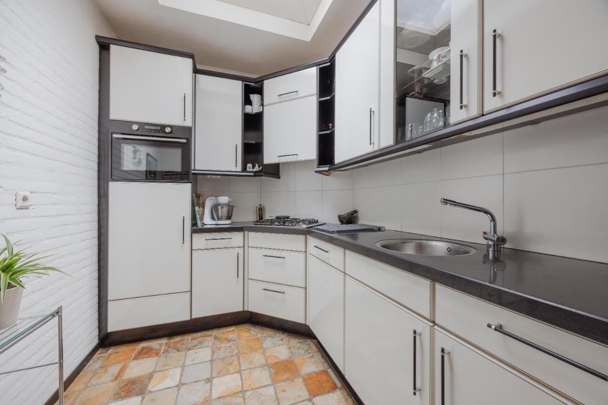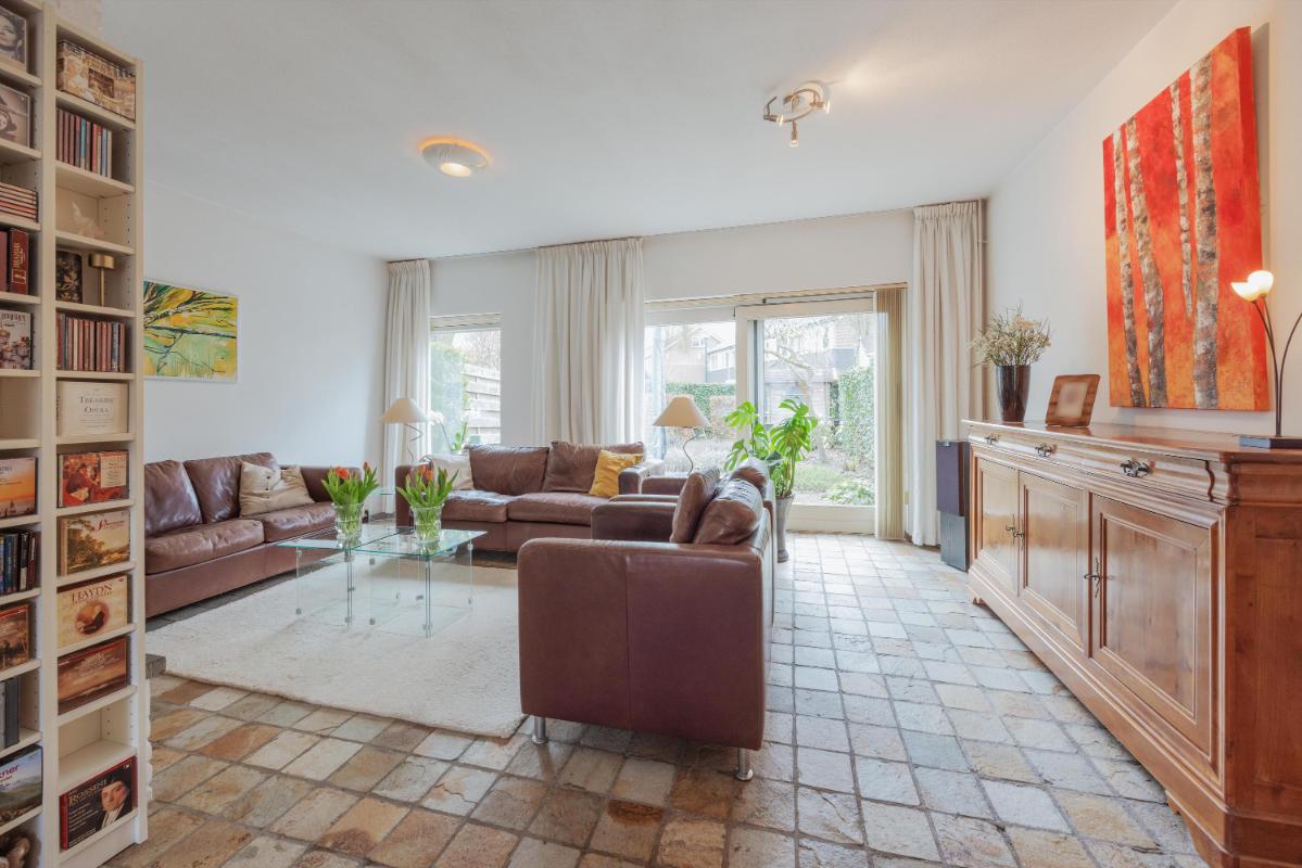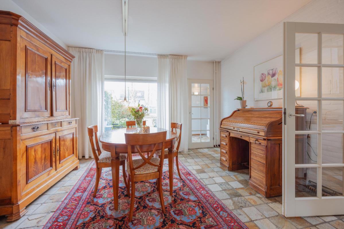 De royale L-vormige woonkamer is een heerlijke leefruimte van circa 47 m². Dankzij de grote raampartijen geniet u hier van veel natuurlijk licht. De tegelvloer, sfeervolle schouw en schuifpui naar de achtertuin zorgen voor een warme en comfortabele uitstraling. De keuken is eveneens L-vormig, modern uitgevoerd en voorzien van diverse inbouwapparatuur. De lichtkoepel zorgt hier voor extra daglicht, wat het een prettige plek maakt om te koken.
