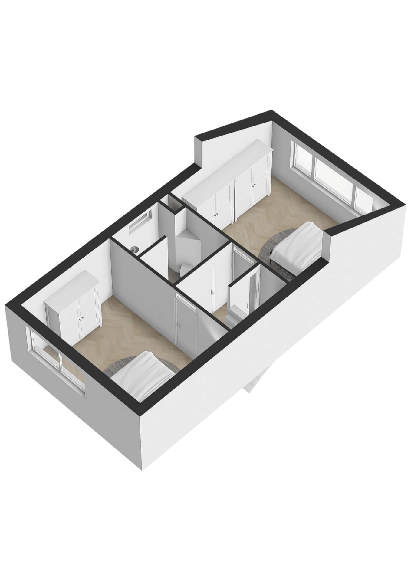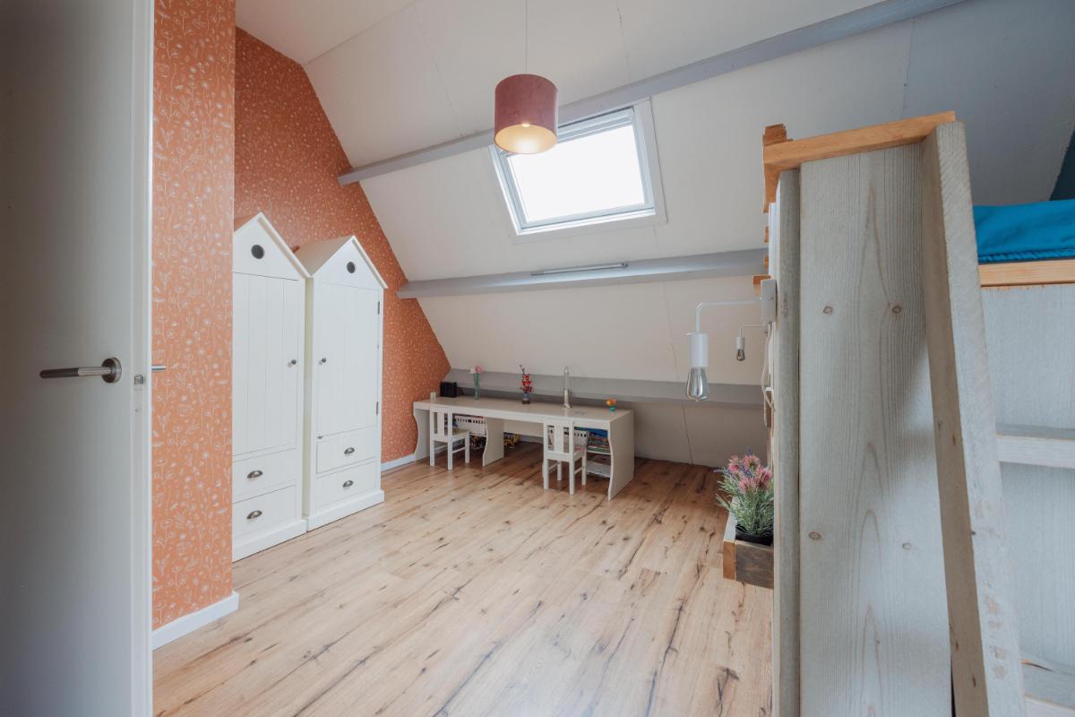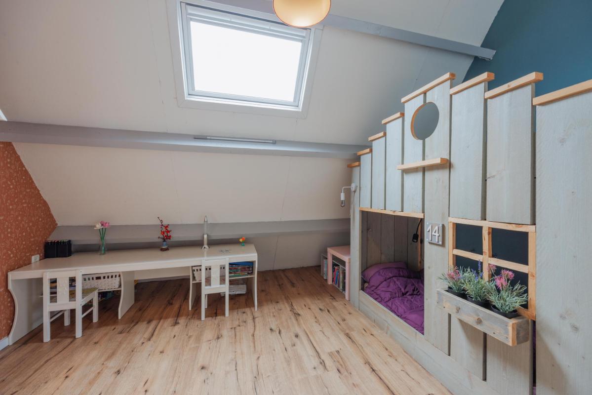 2e Verdieping: Middels vaste trap te bereiken overloop met aansluitend de ruime zolderslaapkamer. Deze kamer is voorzien van een zijraam (met rolluik) en een groot dakvenster. Voorts nog toegang tot een grote bergruimte waar zich ook de opstelling van de c.v.-installatie bevindt.