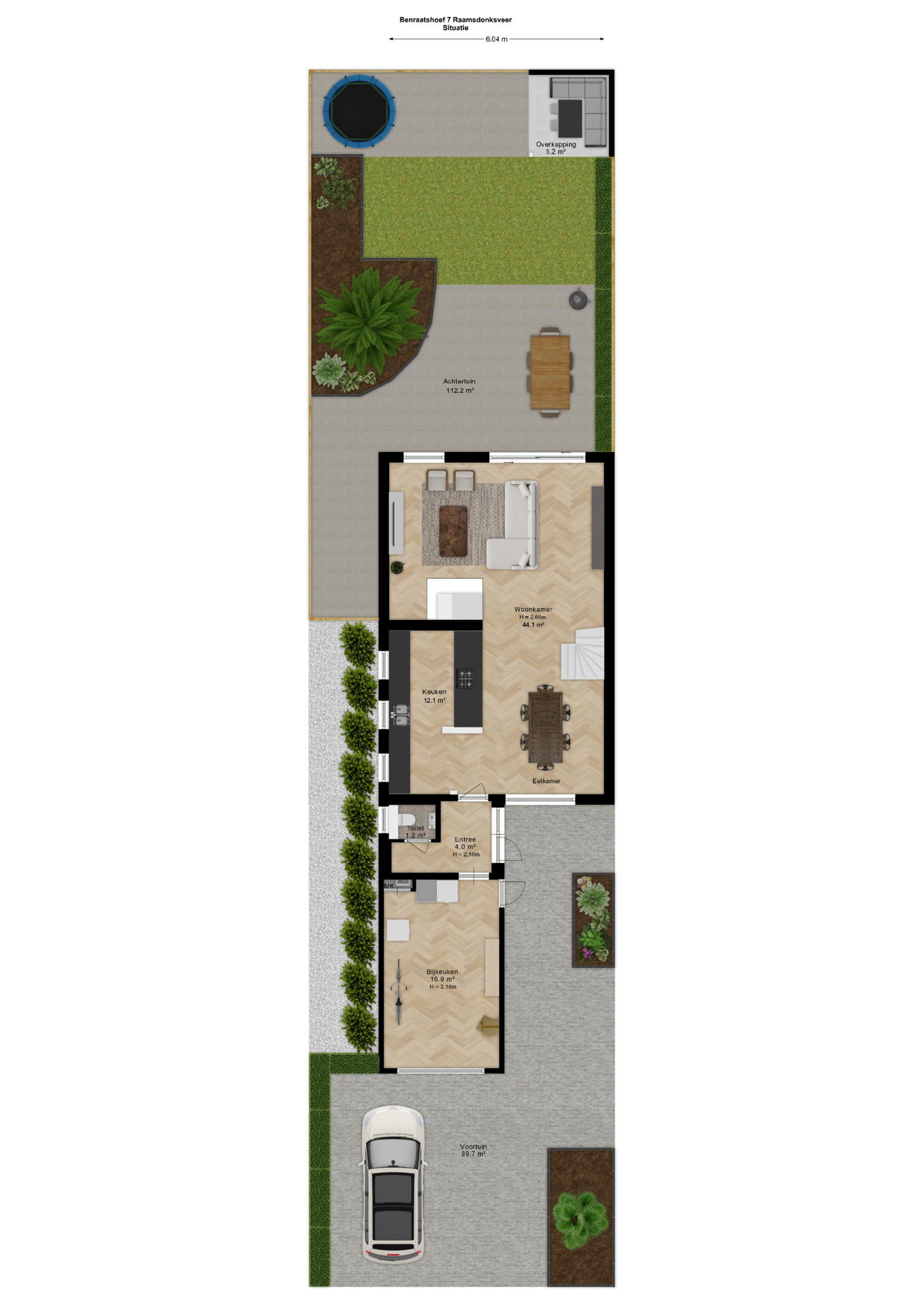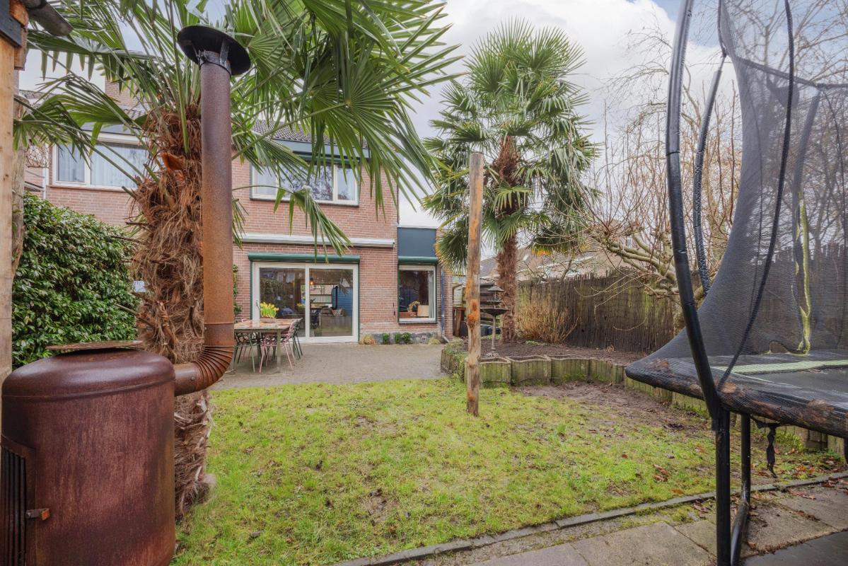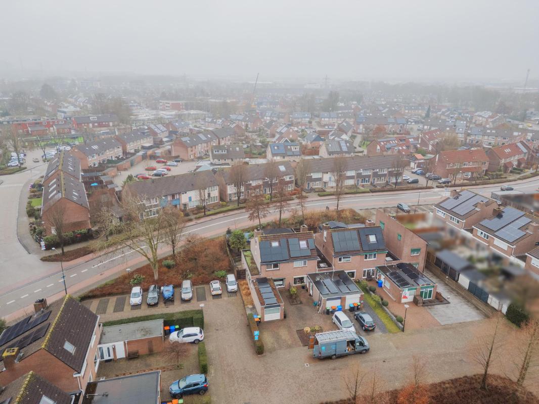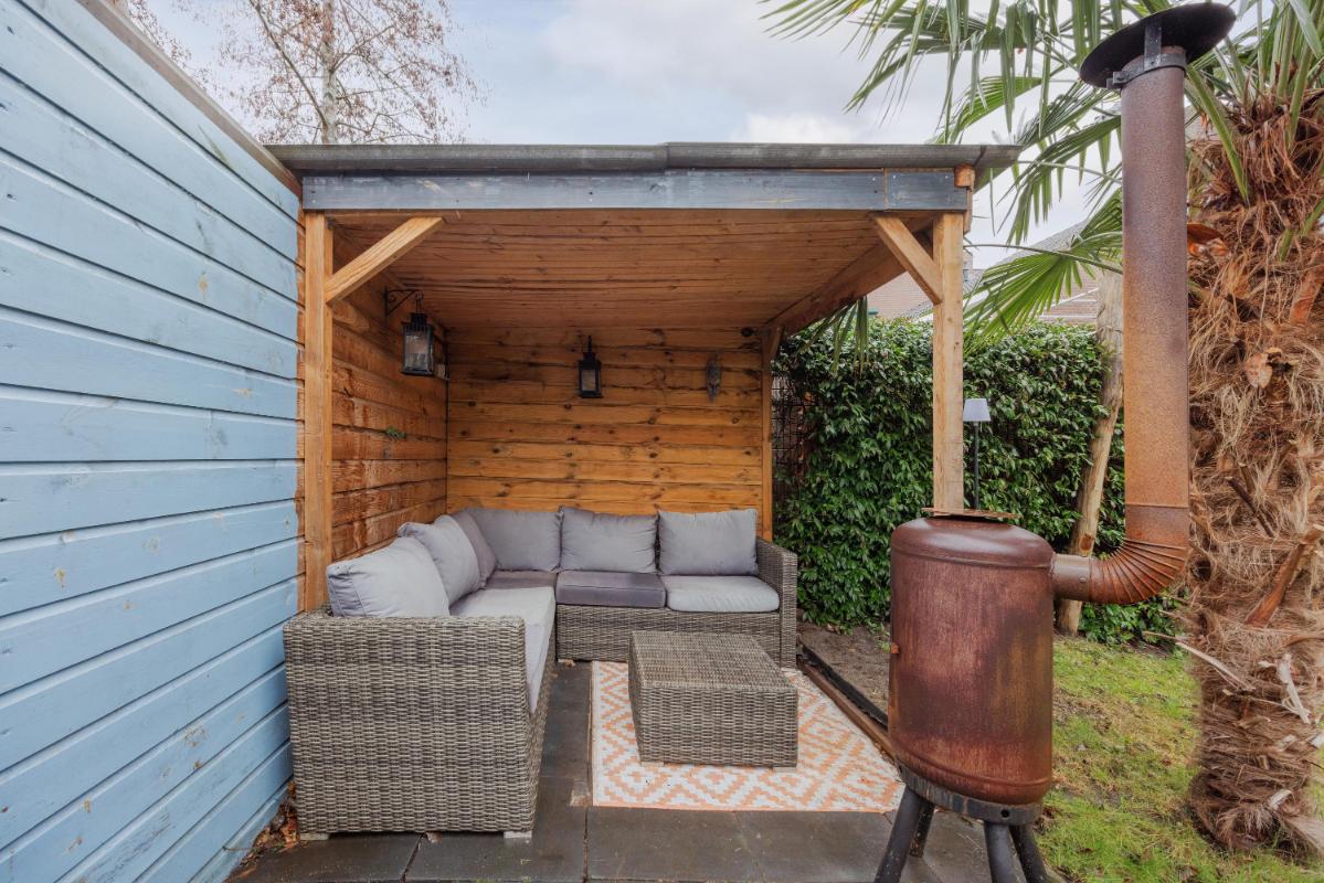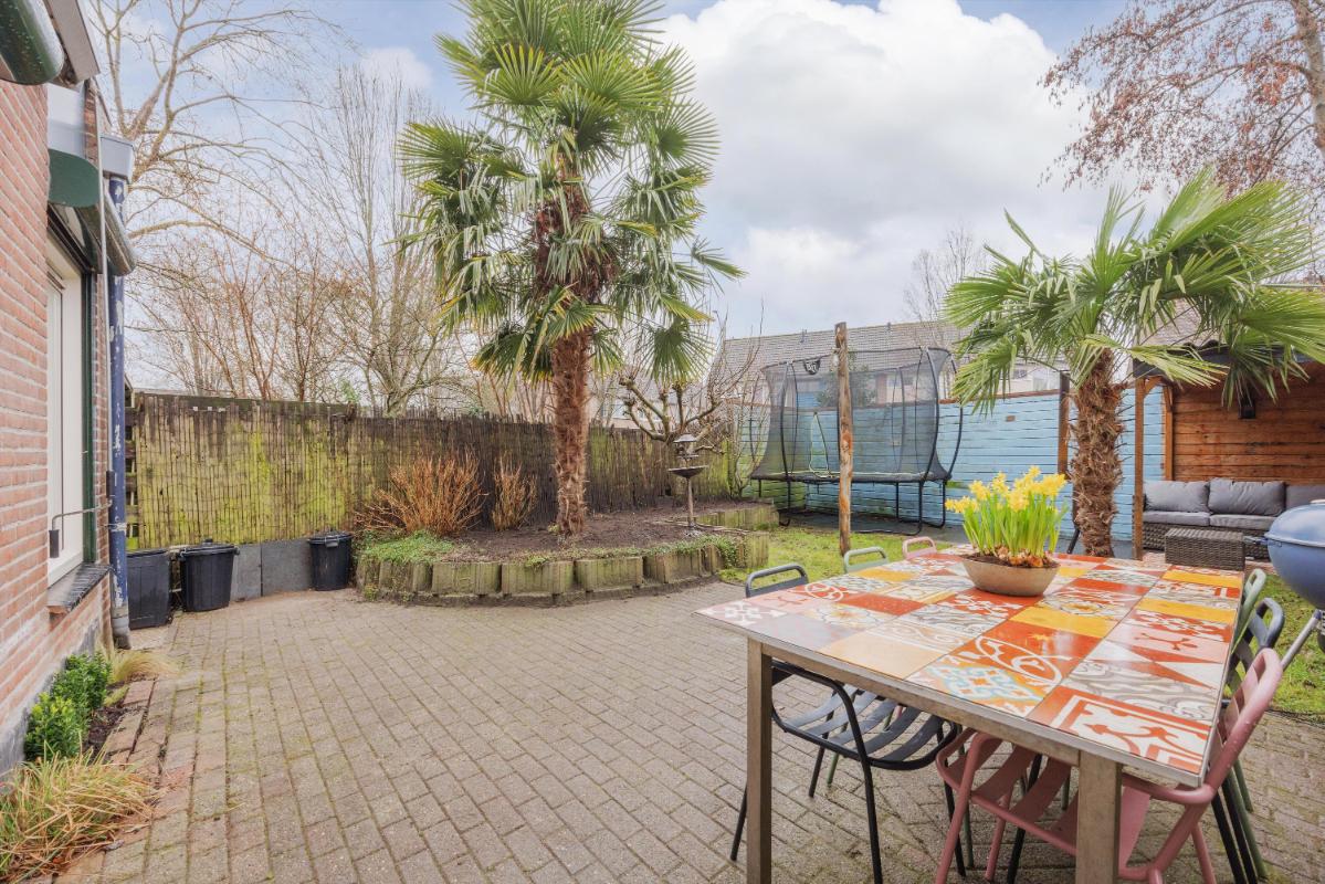 Tuin: De achtertuin is verzorgd aangelegd met een eigen achterom en een vrijstaande overkapping en ligt overwegend op het westen. De tuin biedt volop privacy en de tuin beschikt voorts nog over een buitenkraan en een zonnescherm. Aan de voorzijde tevens nog 2 parkeerplaatsen op eigen terrein.