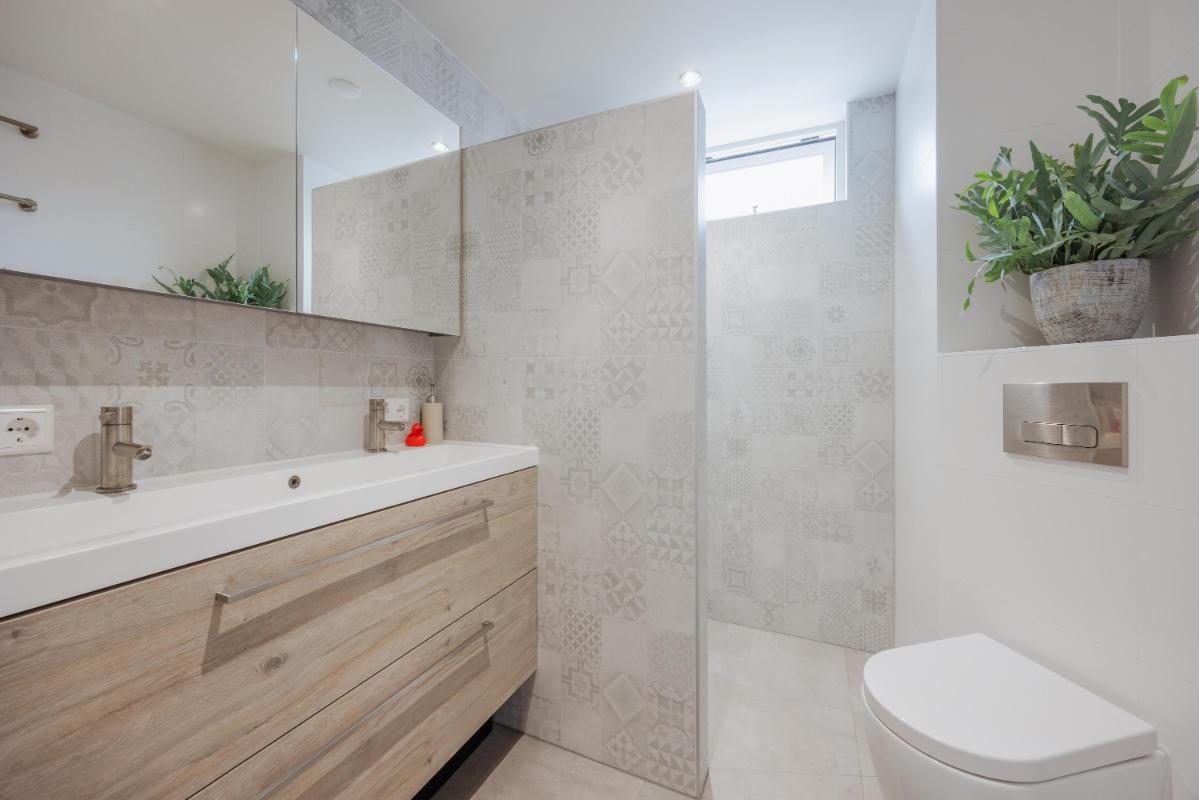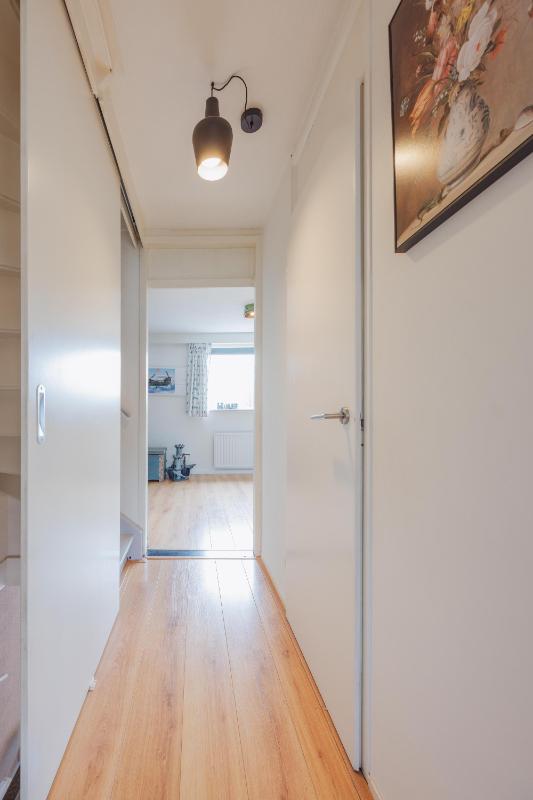 1e Verdieping: Op de eerste verdieping geeft de afgesloten overloop toegang aan 2 ruime slaapkamers en de badkamer. De badkamer is enkele jaren terug compleet vernieuwd en voorzien van een ruime inloopdouche, wastafelmeubel met dubbele kraan en een wandcloset. De badkamer is volledig betegeld, en heeft middels een zijraam daglichttoetreding en ideaal voor een goede ventilatie. Zeer ruim opgezette slaapkamer aan de achterzijde met kastenwand welke door de schuin weglopende plafonds zeer ruimtelijk oogt. De 2e slaapkamer is gelegen aan de voorzijde. De slaapkamers beschikken over een rolluik.