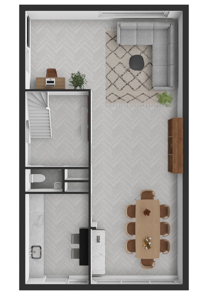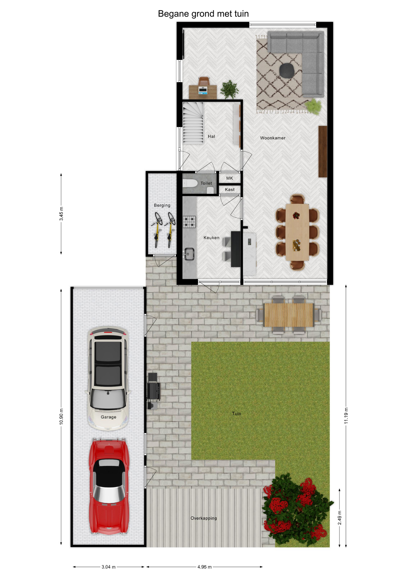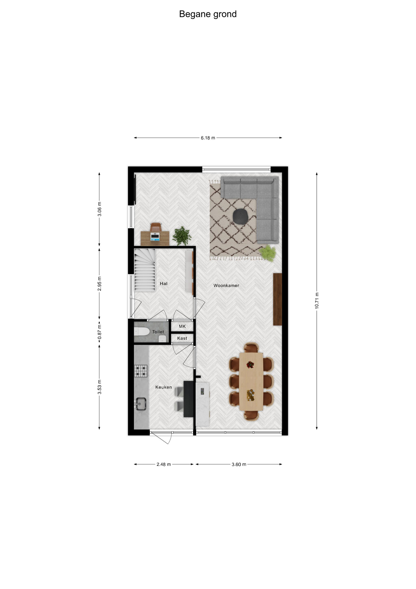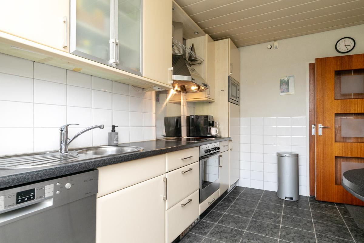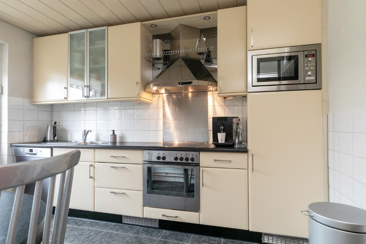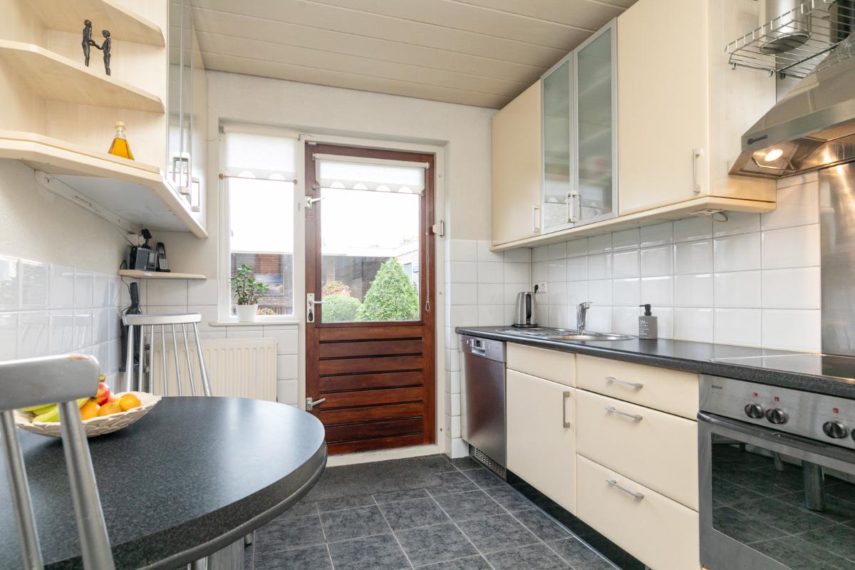 Globale Indeling: Begane grond : Overdekte entree/hal met trapopgang, meterkast (7 groepen, kookgroep en 3 aardlekschakelaars), en de gedeeltelijk betegelde toiletruimte met wandcloset en fonteintje. Vanuit de hal toegang tot de uitgebouwde woonkamer. De L-vormige woonkamer ca. 46 m2, is voorzien van een fraaie eikenhouten vloer en heeft door de grote raampartijen een heerlijke lichtinval. Ruime dichte woonkeuken met keukenblok in een rechte opstelling geplaatst met diverse inbouwapparatuur, namelijk: RVS afzuigkap, keramische kookplaat, combi-magnetron, vaatwasser en een koelkast met vriesvak. Daarnaast beschikt de keuken nog over een praktische provisiekast en vanuit de keuken toegang tot de fraai aangelegde achtertuin.