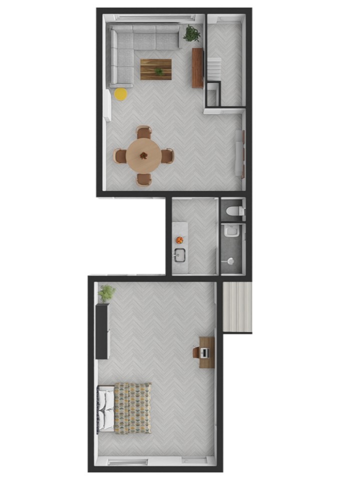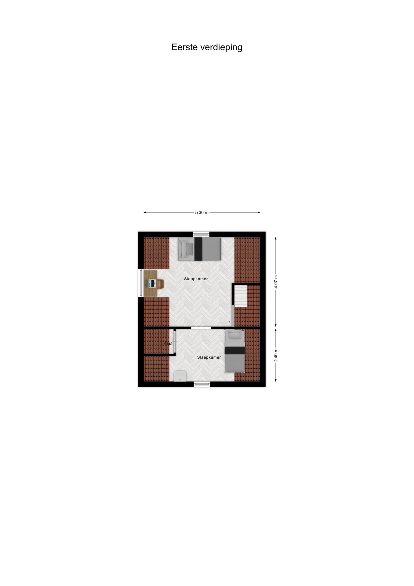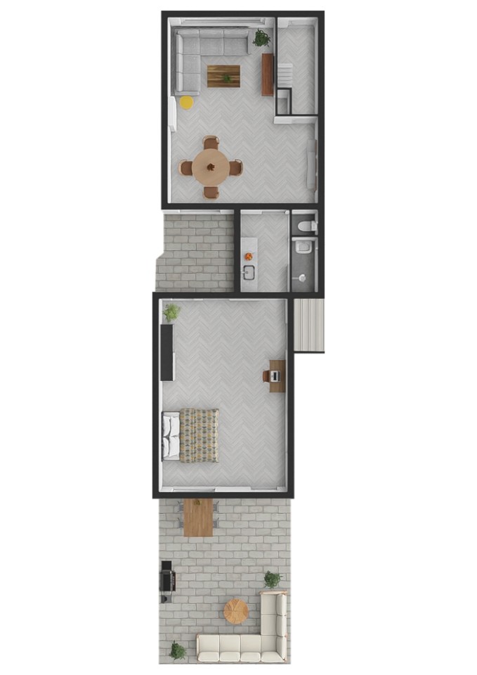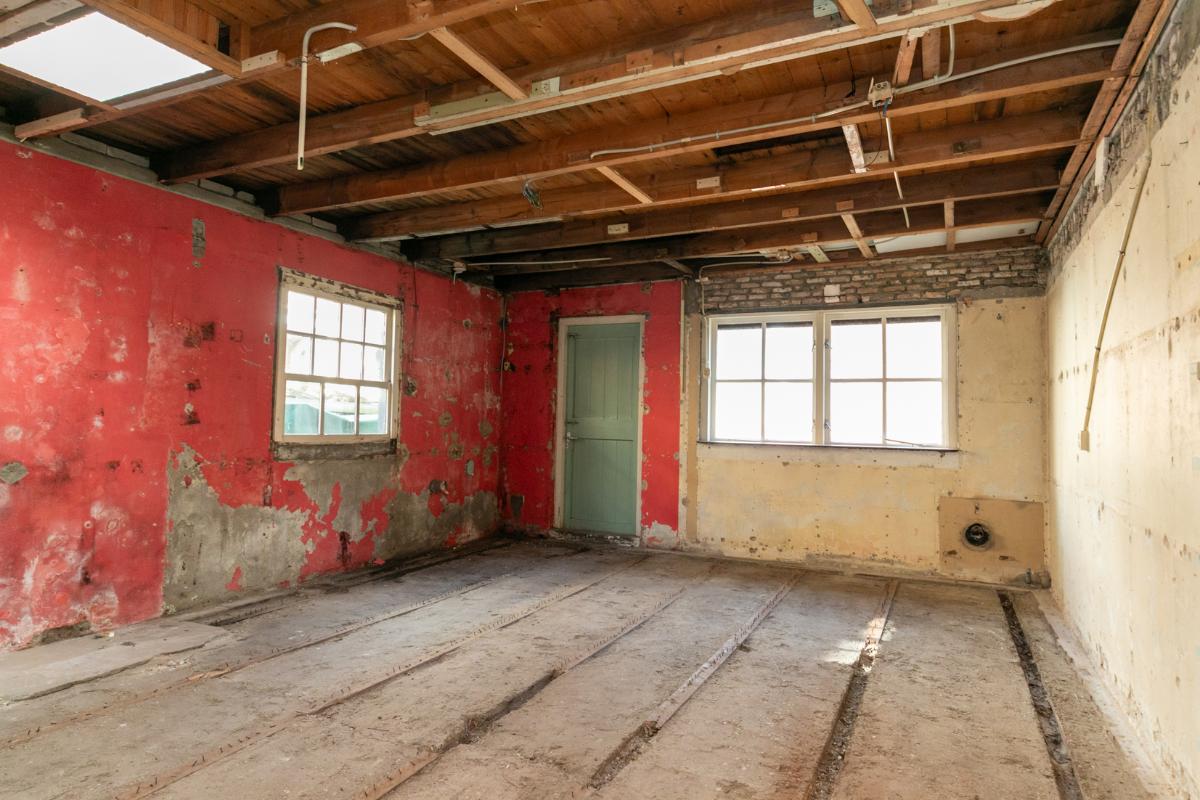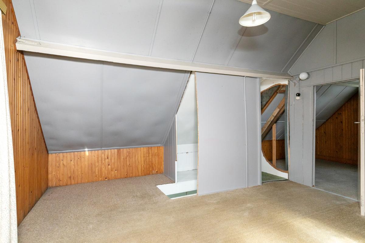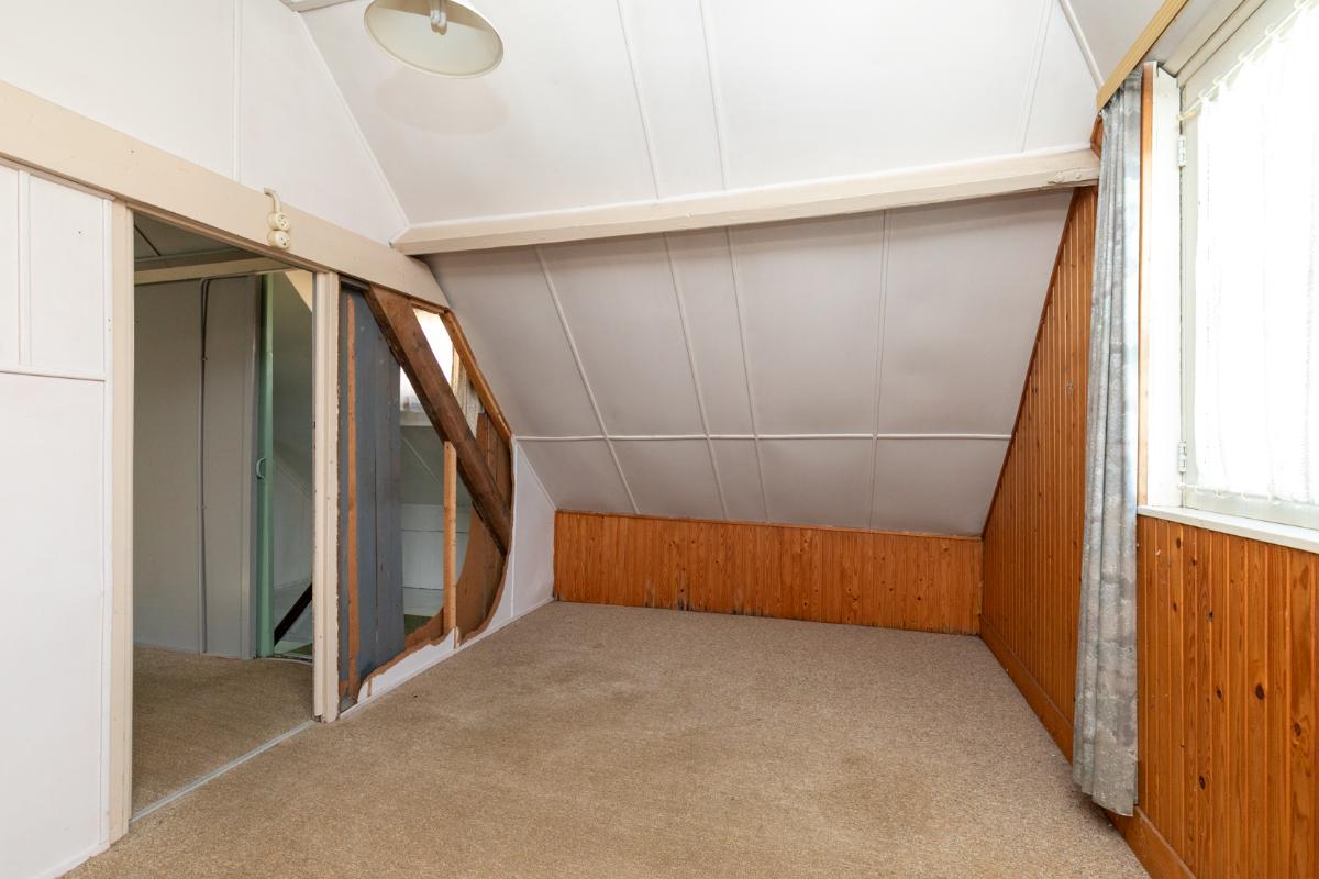 1e verdieping: De eerste verdieping is een open ruimte in 2 delen met de mogelijkheid daar, door nieuwe indeling en renovatie, 1 of 2 slaapkamers te maken.