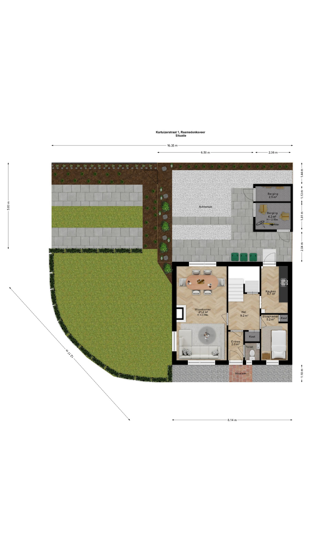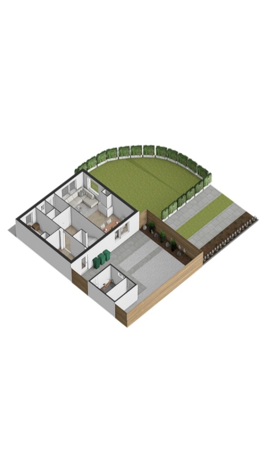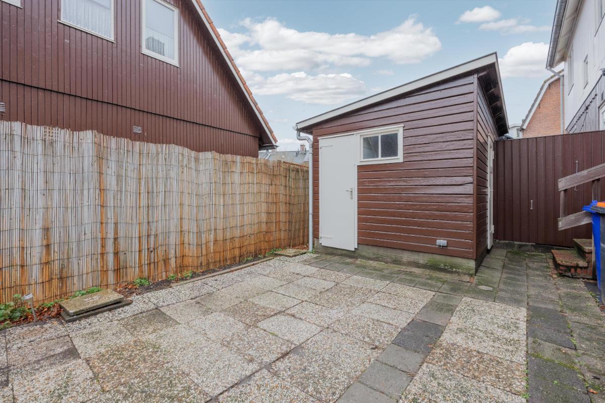De woning staat op een perceel van 175 m² en beschikt over een verzorgde tuin met bestrating, gazon en een beukenhaag. De vrijstaande houten berging is uitgevoerd in dezelfde stijl als de woning en biedt praktische extra opslagruimte.