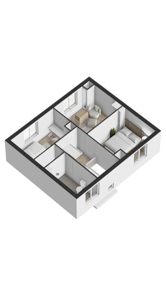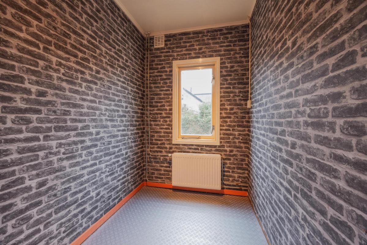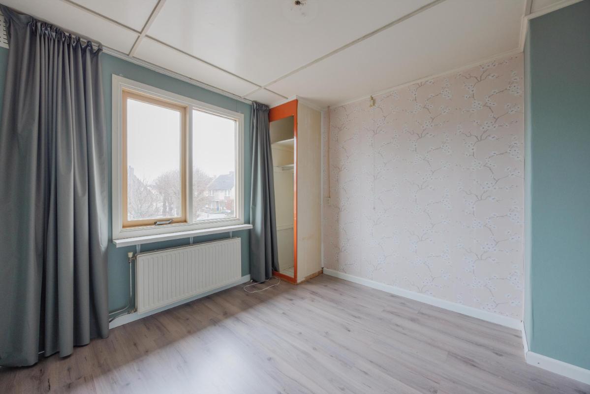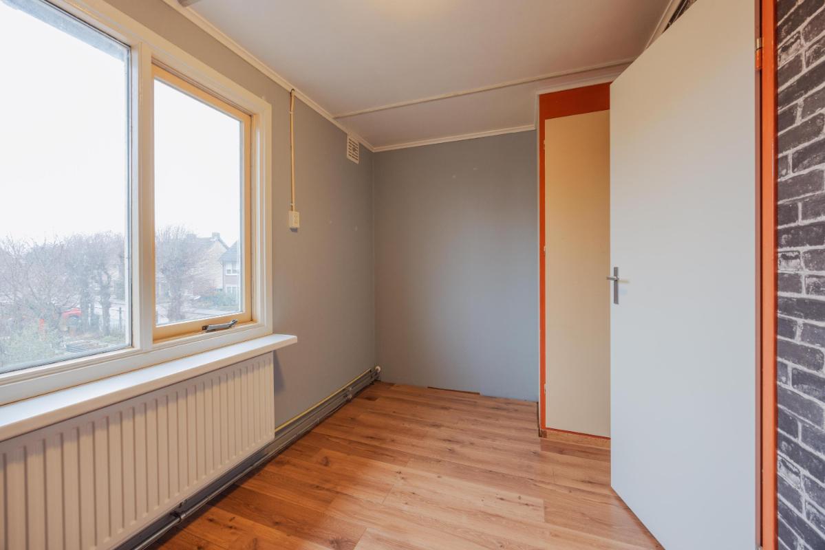 De slaapkamer op de begane grond is ideaal te gebruiken als kantoor of werkkamer, beschikt over een vaste kast en is aan de voorzijde van de woning gelegen.