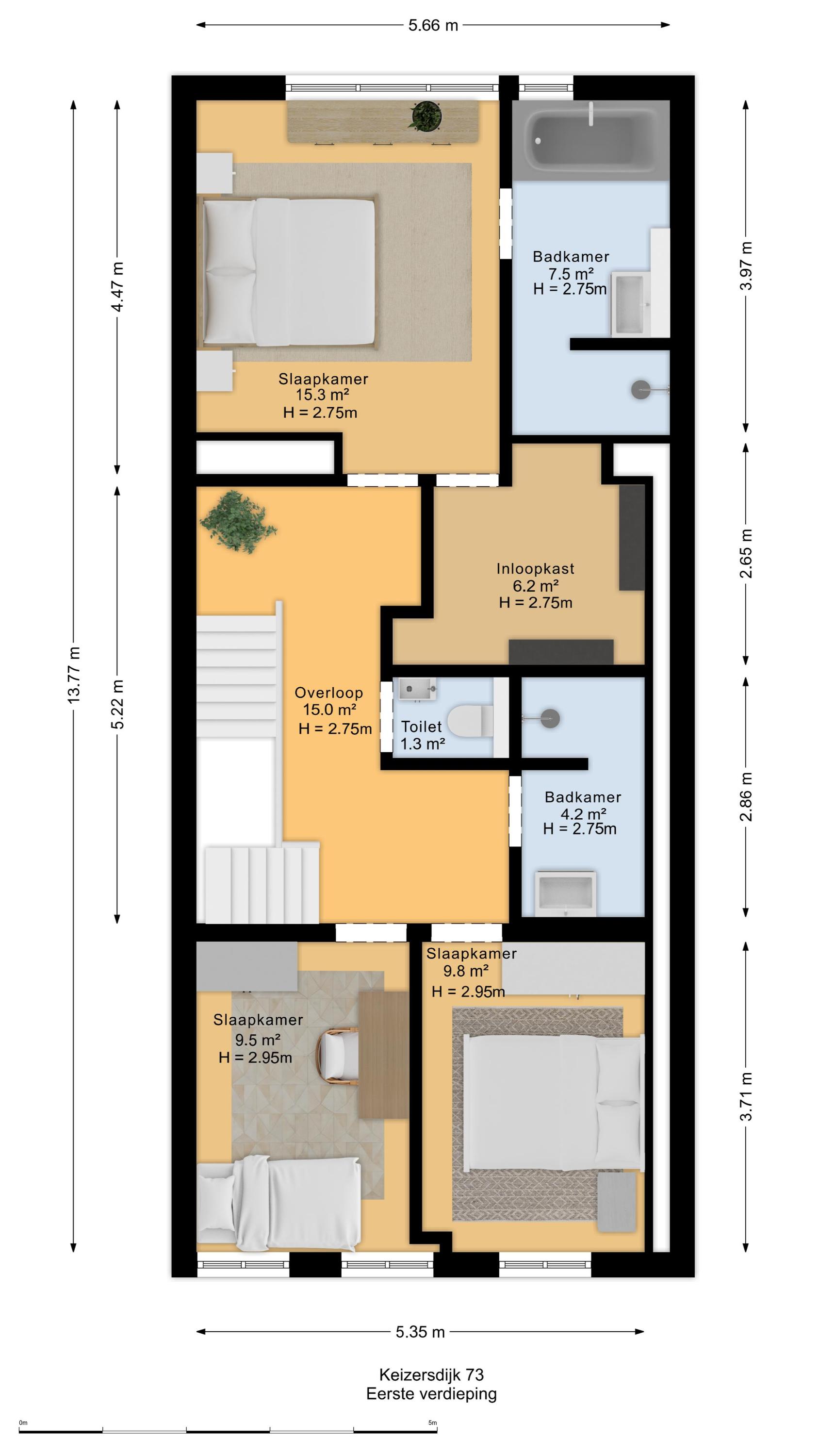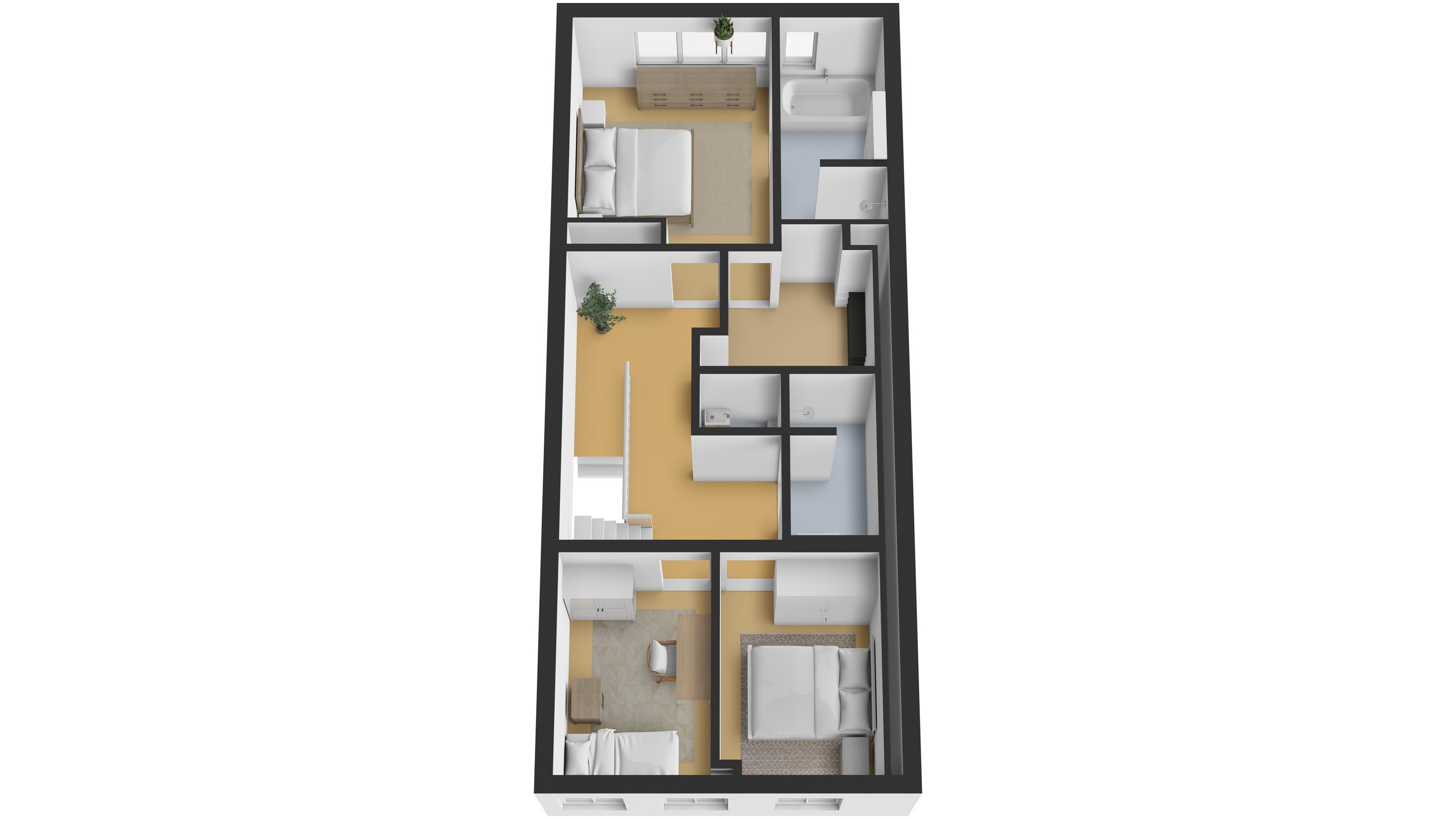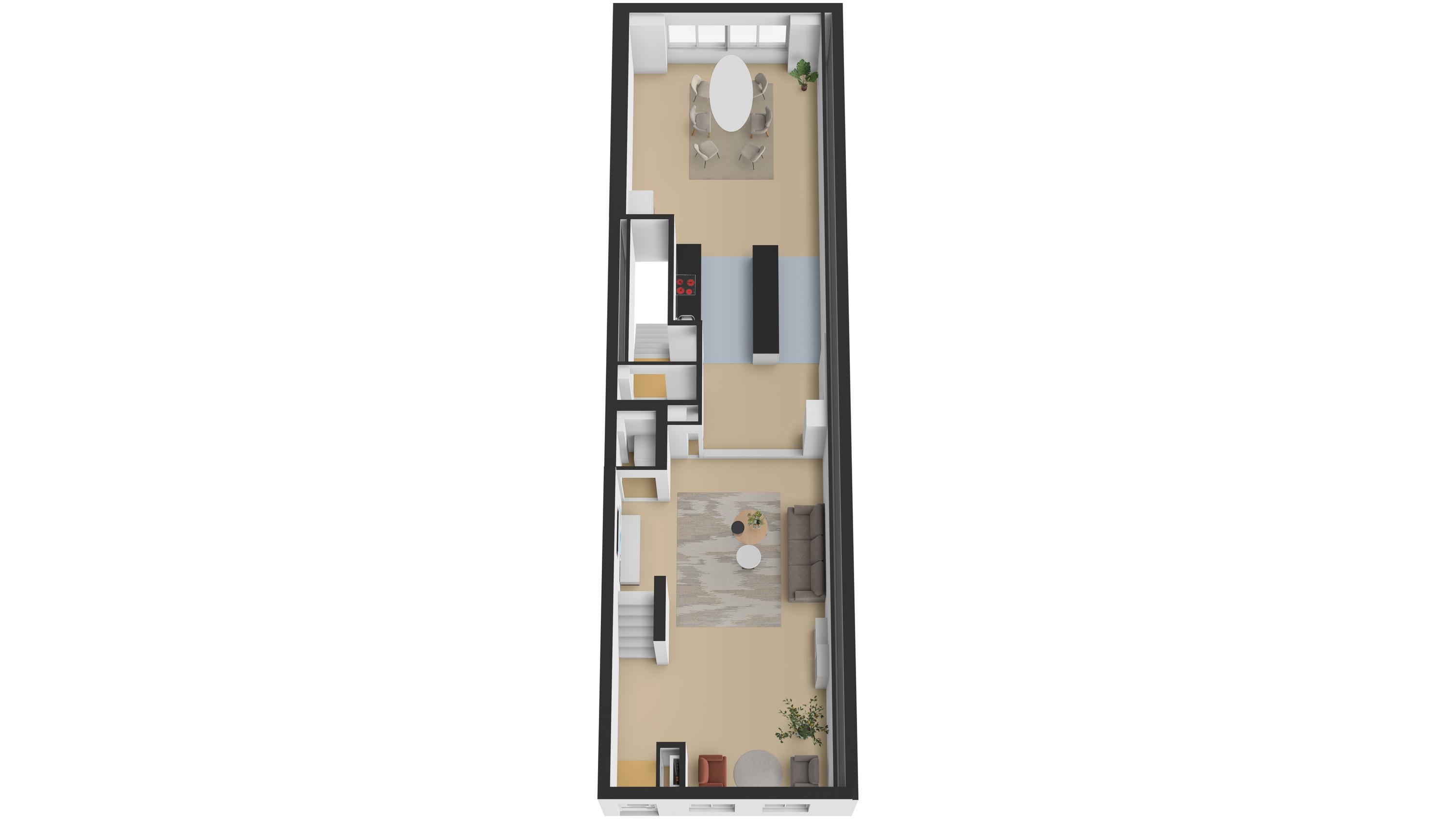 Indeling – een huis dat met u meegroeit De vier woonlagen bieden een ongekende mate van flexibiliteit, volume en privacy: - Souterrain: Volwaardig, licht en met openslaande deuren naar de achterzijde. Ideaal als tuinkamer, wellness, thuiskantoor of gastenverblijf. De verschillende ruimtes geven u alle vrijheid om functies slim te combineren. In het souterrain zijn alle aansluitingen aanwezig voor het eventueel plaatsen van een tweede keuken en wasmachine- en droger. De wanden in het souterrain worden voor oplevering nog gestukadoord. - Bel-etage aan de Keizersdijk: De woonverdieping met uitzicht over het straatbeeld van Raamsdonksveer. Grote raampartijen, een royale leefruimte en open keukenopstelling met aansluitingen maken dit het sociale hart van het huis. - Eerste verdieping: Hier bevinden zich drie riante slaapkamers en twee badkamers – perfect voor gezinssituaties of het creëren van een master suite met walk-in closet. - Tweede verdieping: Nog eens twee kamers (ideaal als slaap-, hobby- of logeerruimte) en een aparte wasruimte.