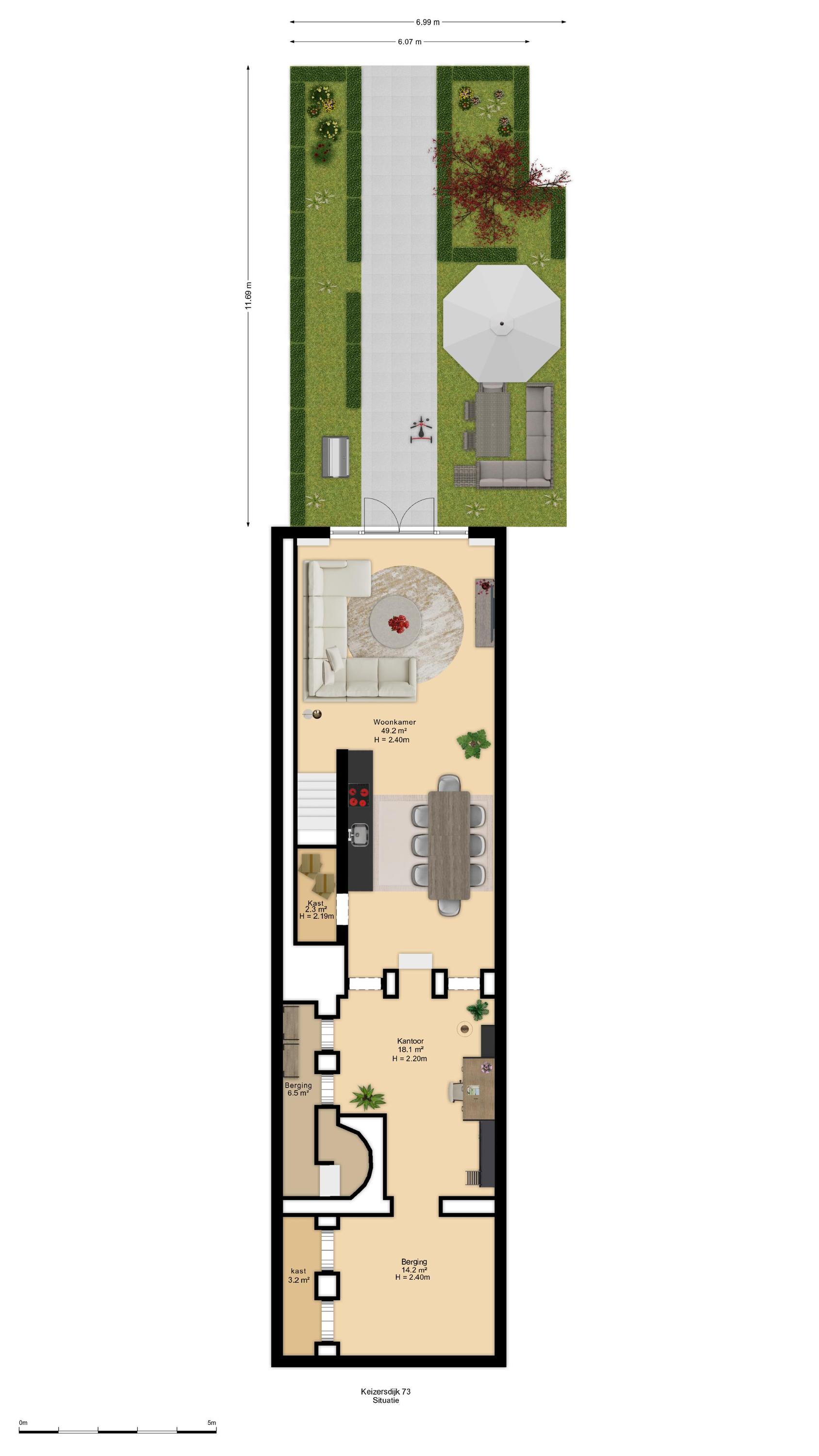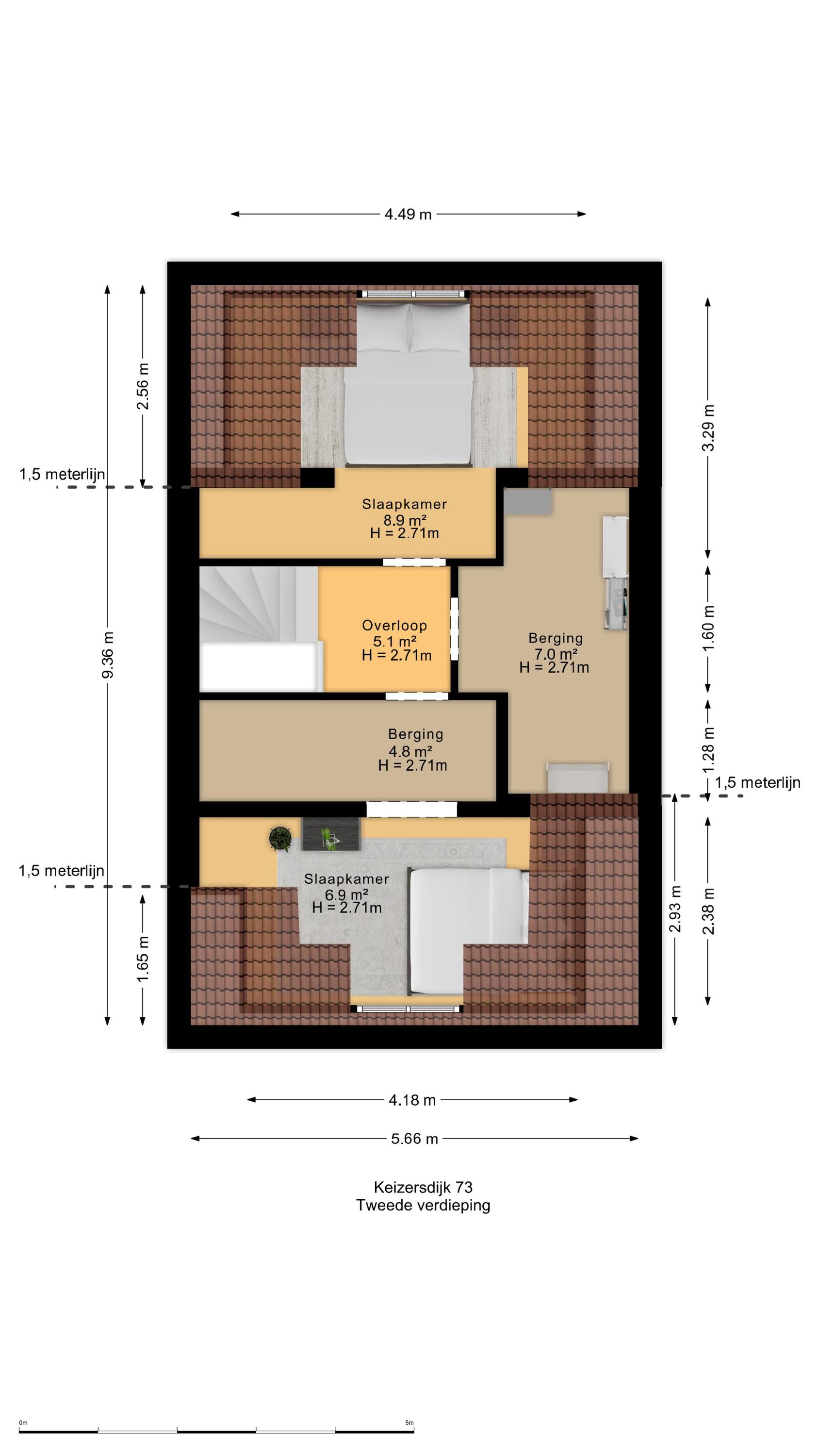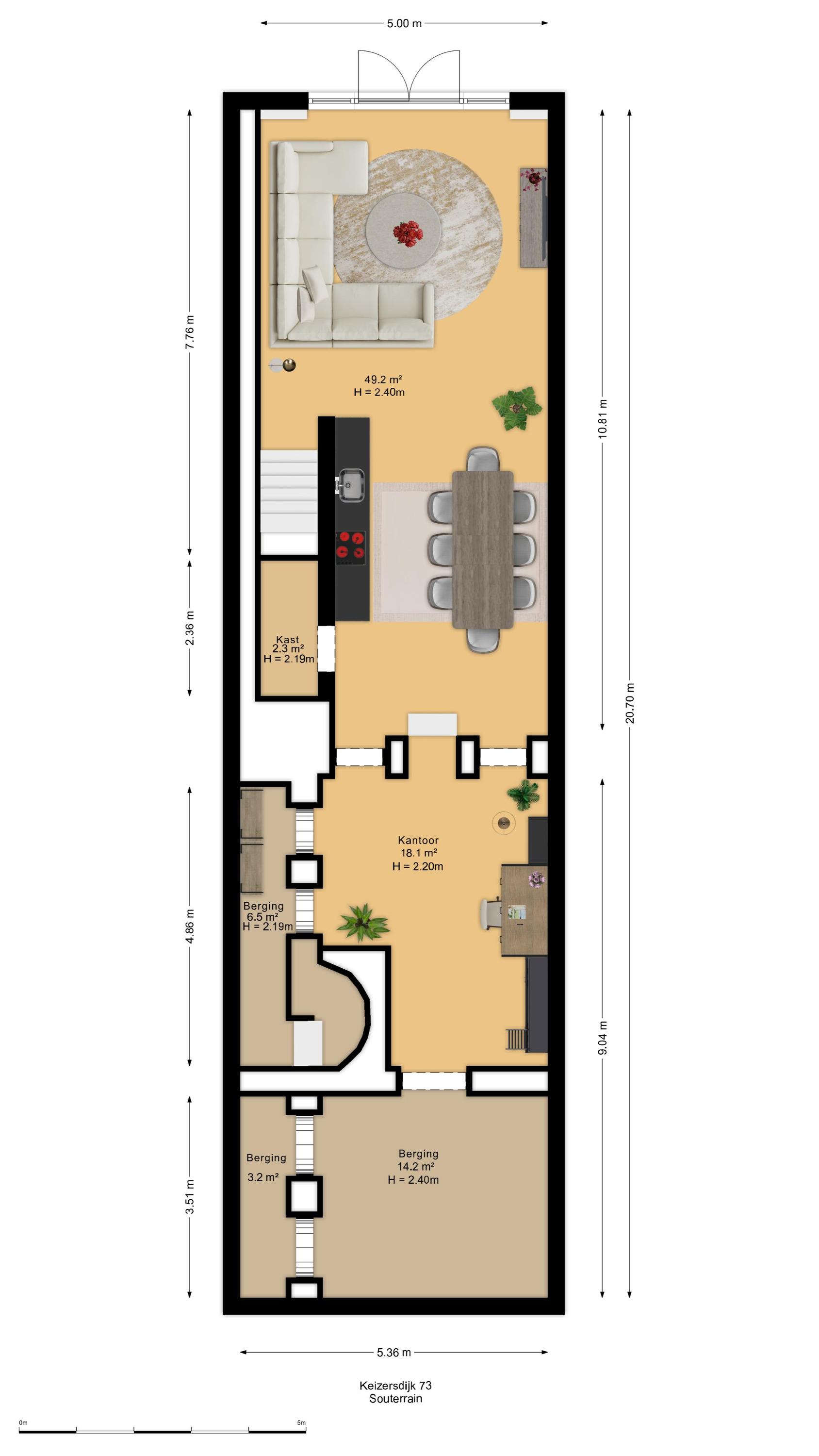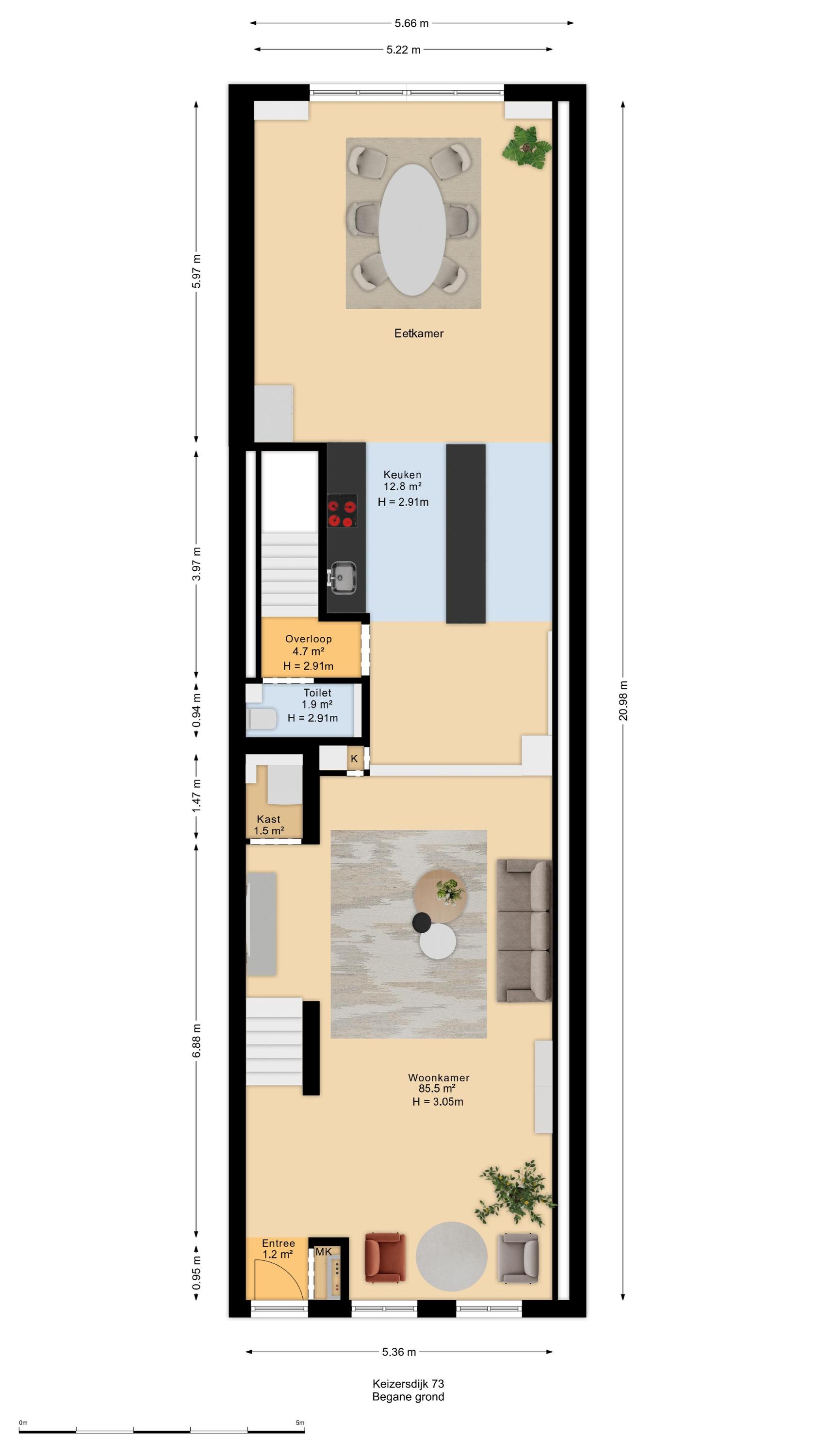 Indeling – een huis dat met u meegroeit De vier woonlagen bieden een ongekende mate van flexibiliteit, volume en privacy: - Souterrain: Volwaardig, licht en met openslaande deuren naar de achterzijde. Ideaal als tuinkamer, wellness, thuiskantoor of gastenverblijf. De verschillende ruimtes geven u alle vrijheid om functies slim te combineren. In het souterrain zijn alle aansluitingen aanwezig voor het eventueel plaatsen van een tweede keuken en wasmachine- en droger. De wanden in het souterrain worden voor oplevering nog gestukadoord. - Bel-etage aan de Keizersdijk: De woonverdieping met uitzicht over het straatbeeld van Raamsdonksveer. Grote raampartijen, een royale leefruimte en open keukenopstelling met aansluitingen maken dit het sociale hart van het huis. - Eerste verdieping: Hier bevinden zich drie riante slaapkamers en twee badkamers – perfect voor gezinssituaties of het creëren van een master suite met walk-in closet. - Tweede verdieping: Nog eens twee kamers (ideaal als slaap-, hobby- of logeerruimte) en een aparte wasruimte.
