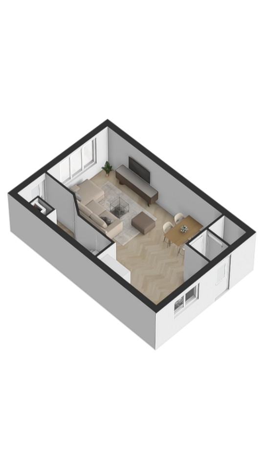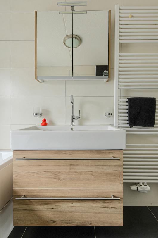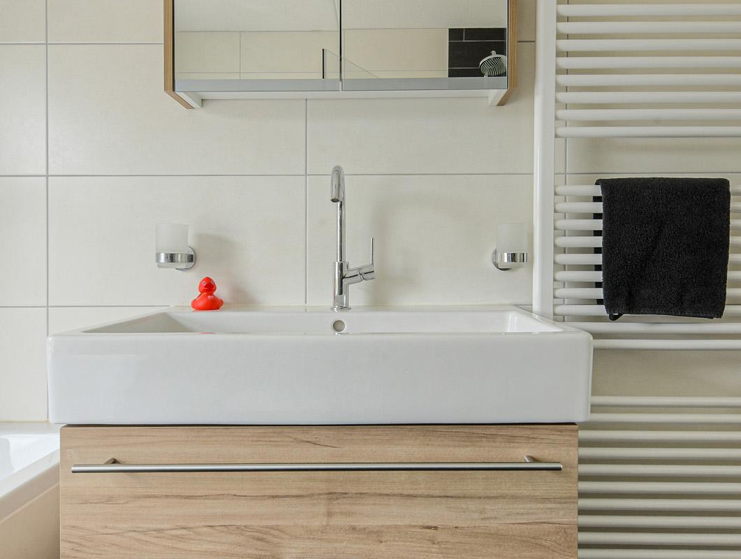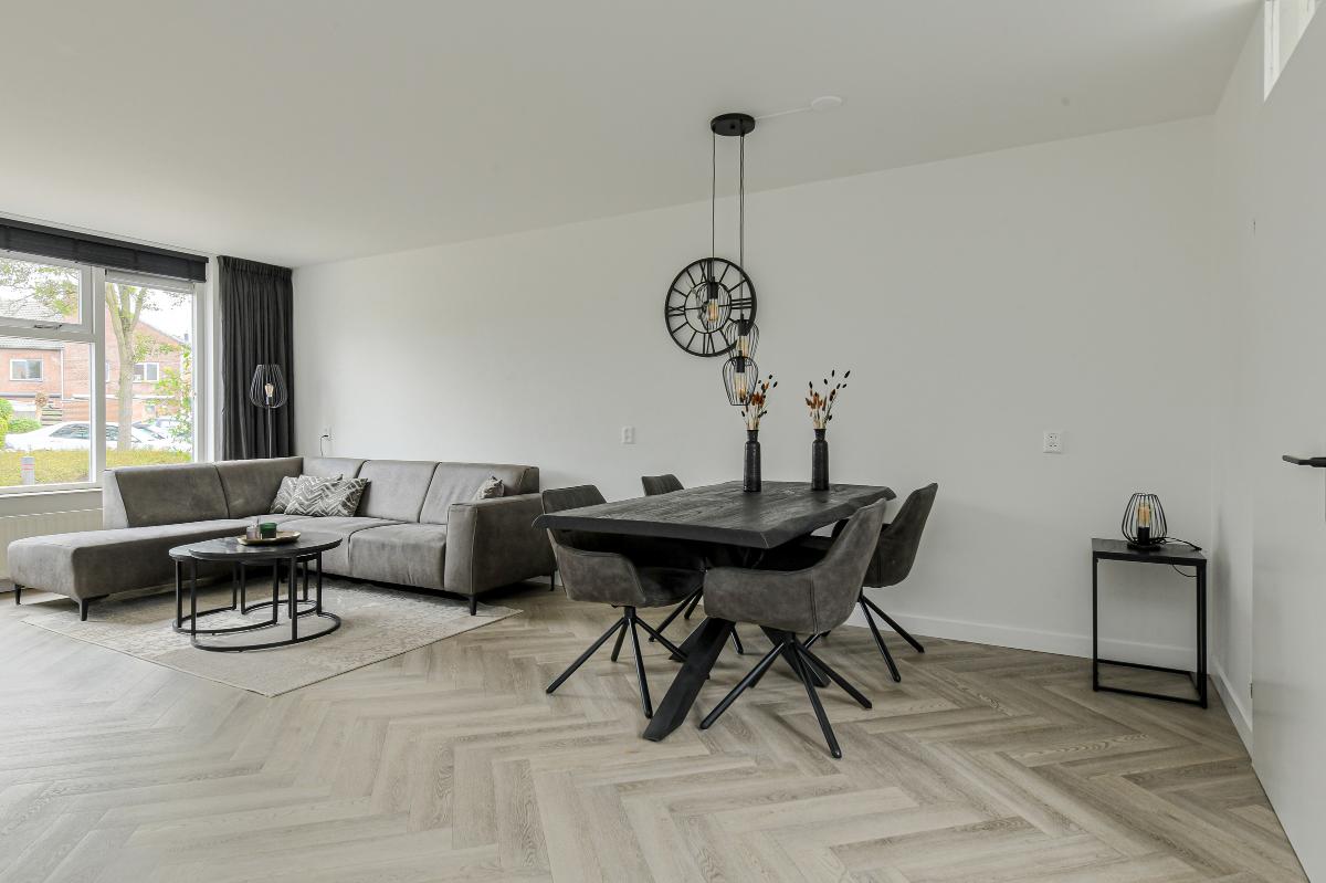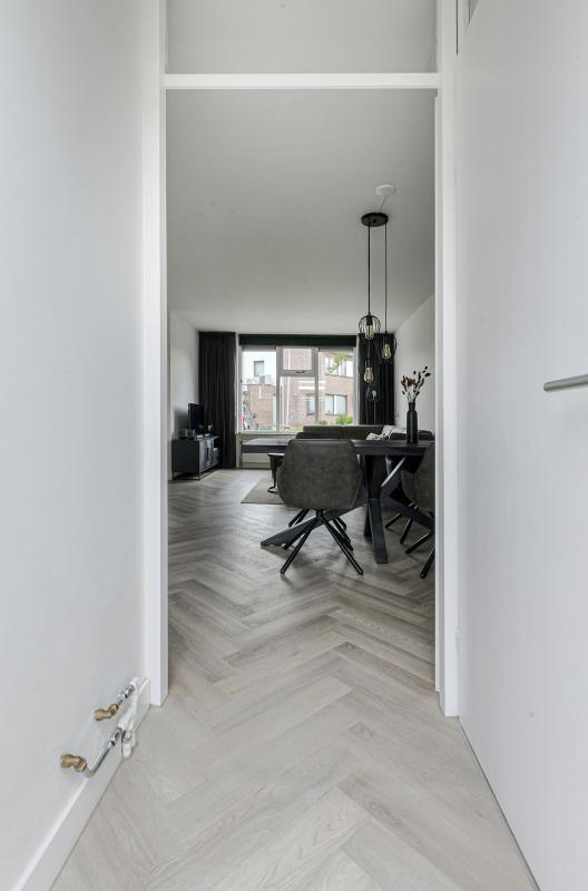 In de lichte, grote woonkamer met open keuken voelt u zich meteen thuis. De keuken is uitgerust met moderne inbouwapparatuur, waaronder een vaatwasser, koel-vriescombinatie, magnetronoven, inductiekookplaat en een kokend waterkraan. Hier kookt u met gemak de lekkerste maaltijden, terwijl u in contact blijft met uw gezelschap.