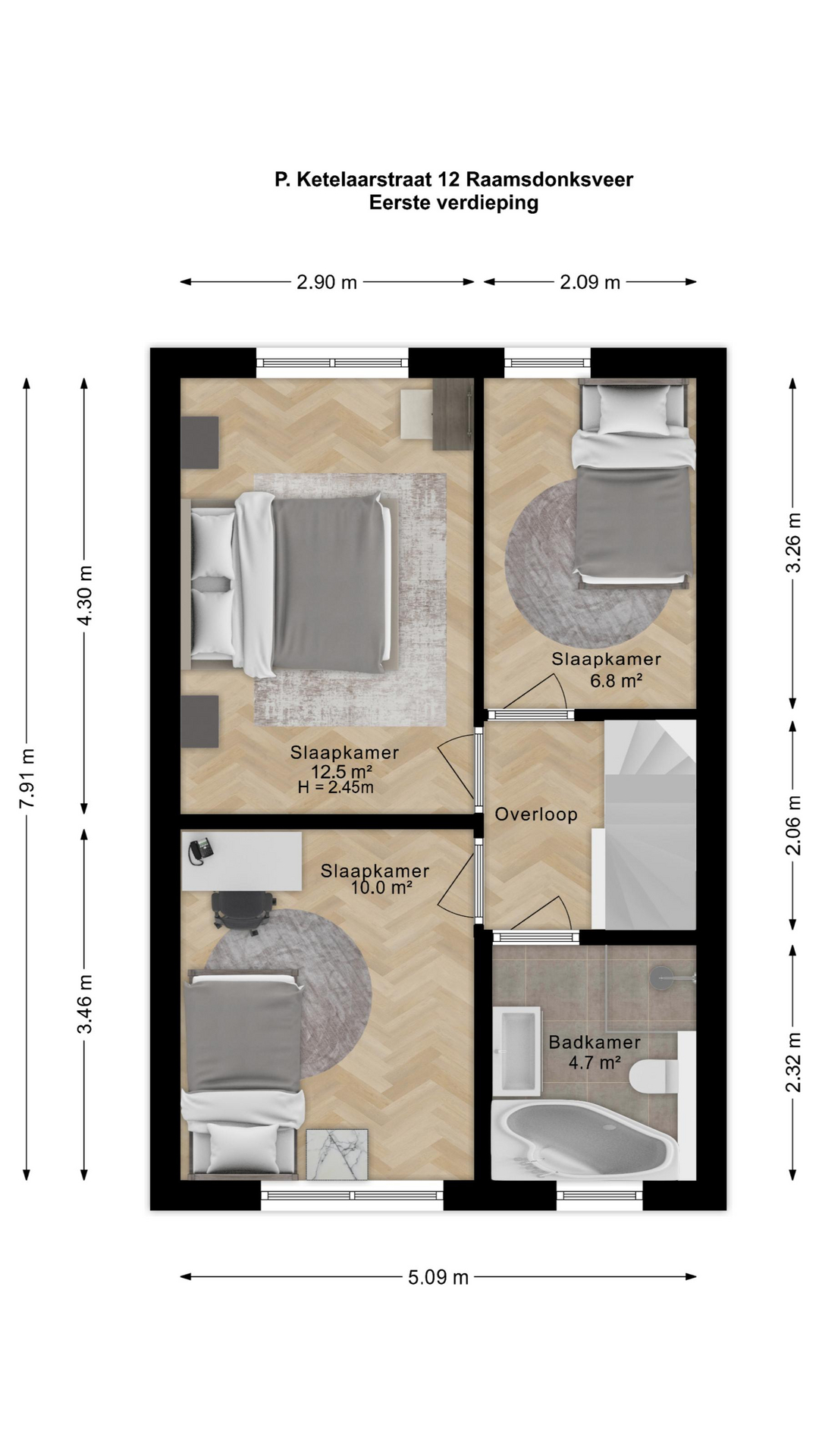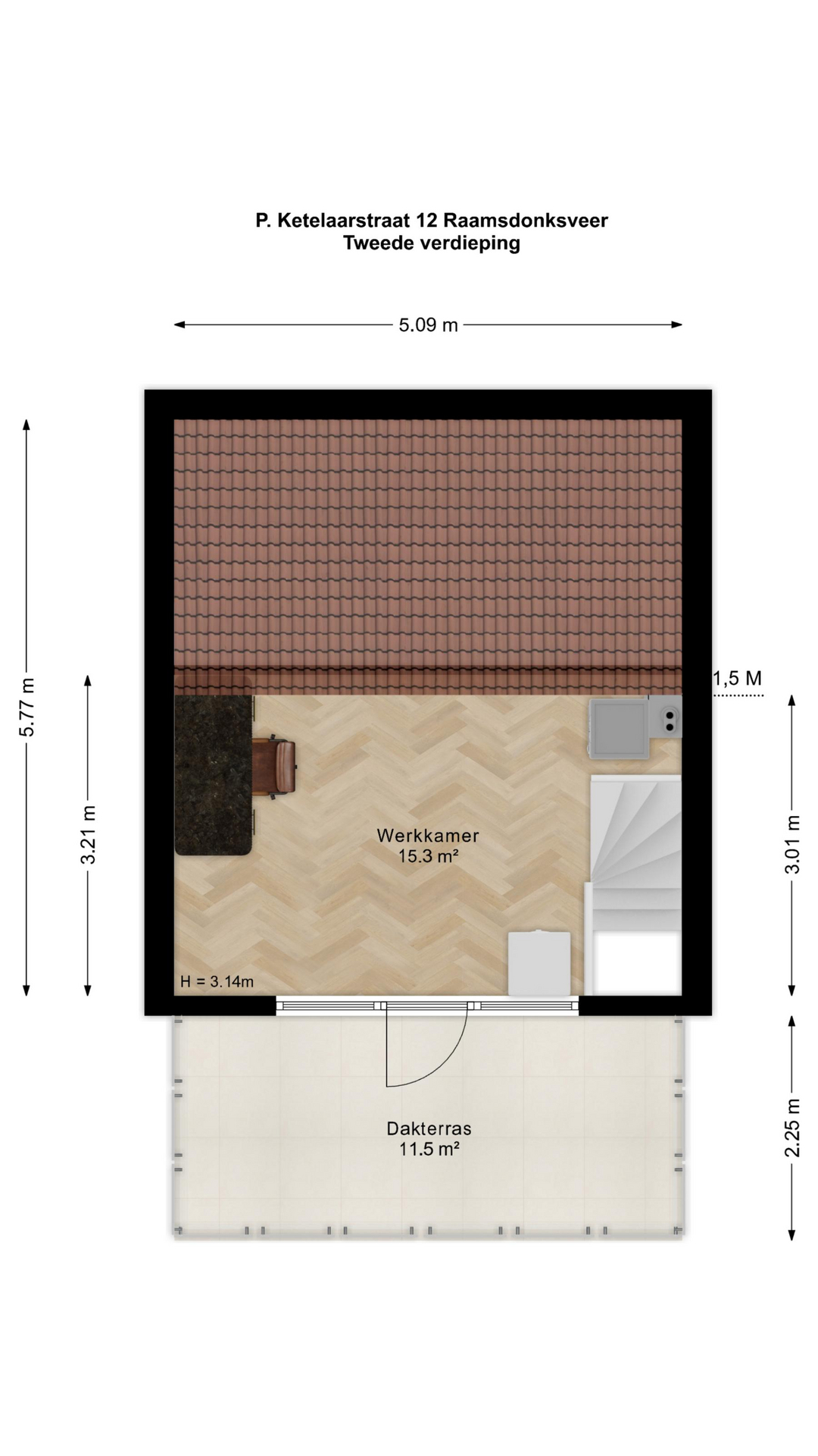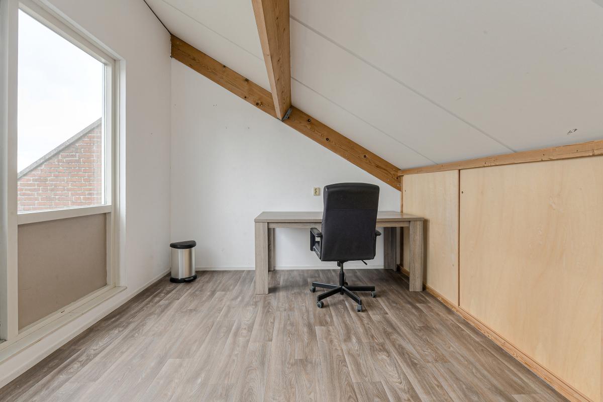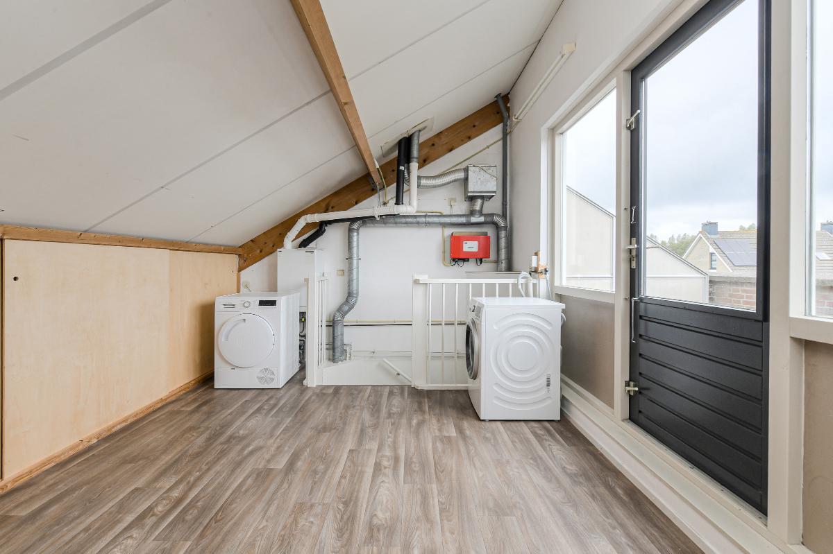 De verrassend ruime zolderverdieping is een echte bonus. Hier vindt u een grote kamer die geschikt is als extra slaapkamer, werkkamer of hobbyruimte. Vanuit deze kamer heeft u direct toegang tot een heerlijk dakterras – dé plek om op zomeravonden te genieten van de buitenlucht met uitzicht over de omgeving.