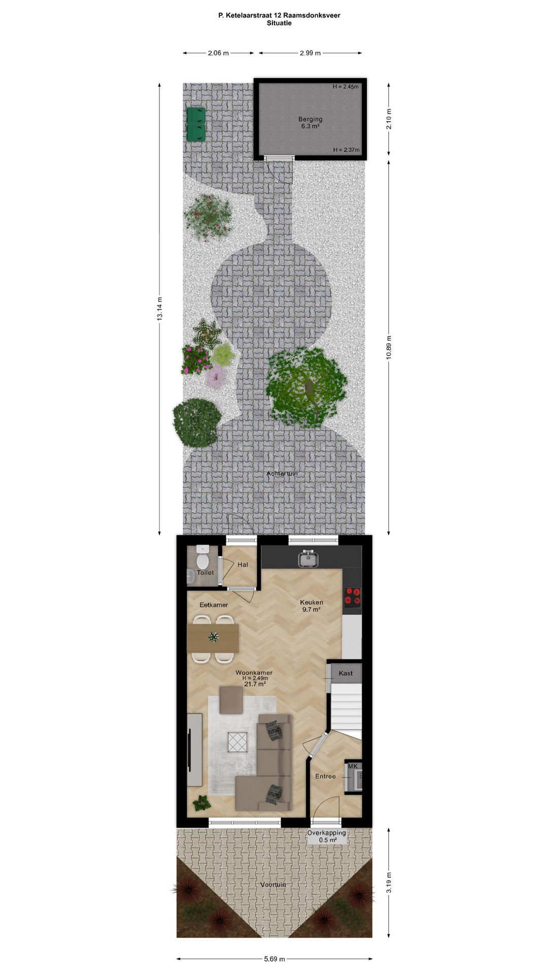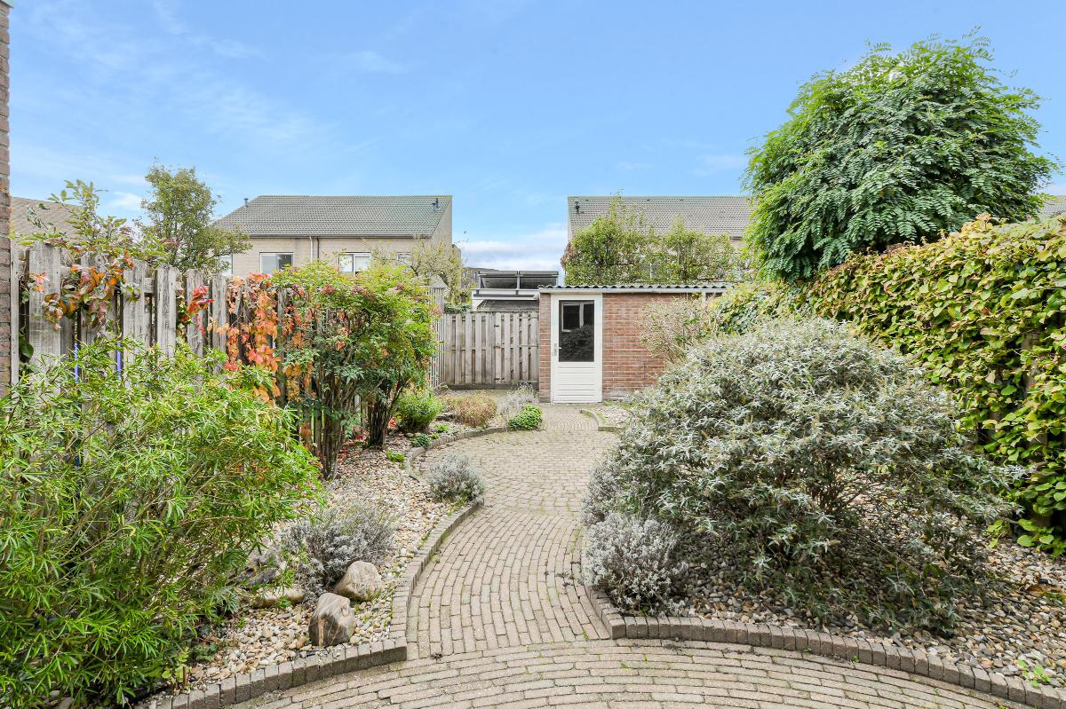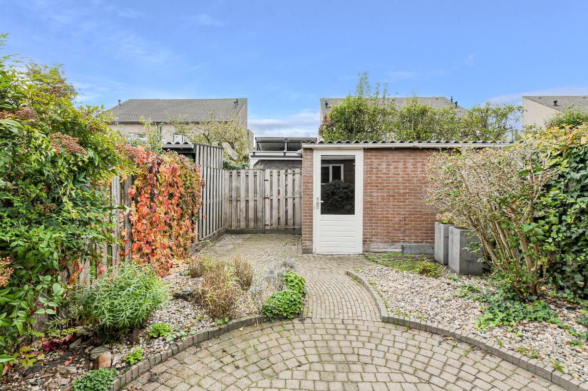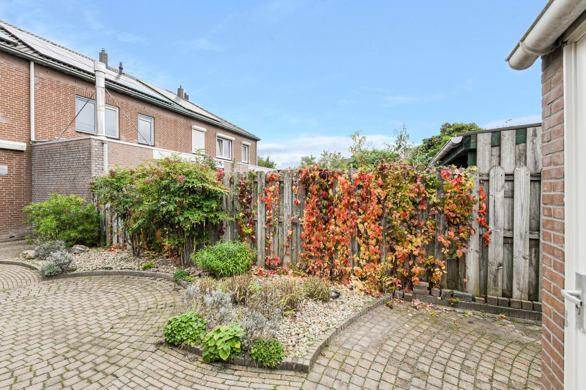 Tuin: De verzorgde achtertuin (ca. 13.14 x 5.69 m.) is gelegen op het zuiden. De tuin is voorzien van sierbestrating, borders met beplanting, een waterpunt, zonwering, stenen berging en achterom.