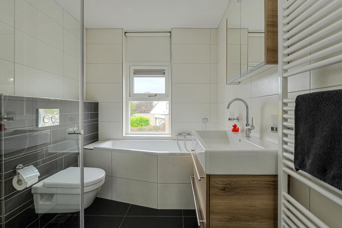 Op de eerste verdieping bevinden zich drie royale slaapkamers, ideaal voor het hele gezin of voor thuiswerkplekken. De moderne badkamer biedt u een inloopdouche, een ligbad én een toilet; perfect voor optimaal comfort.