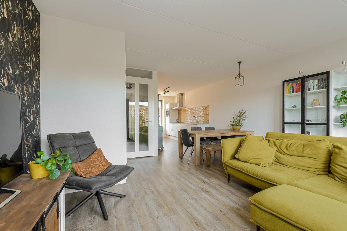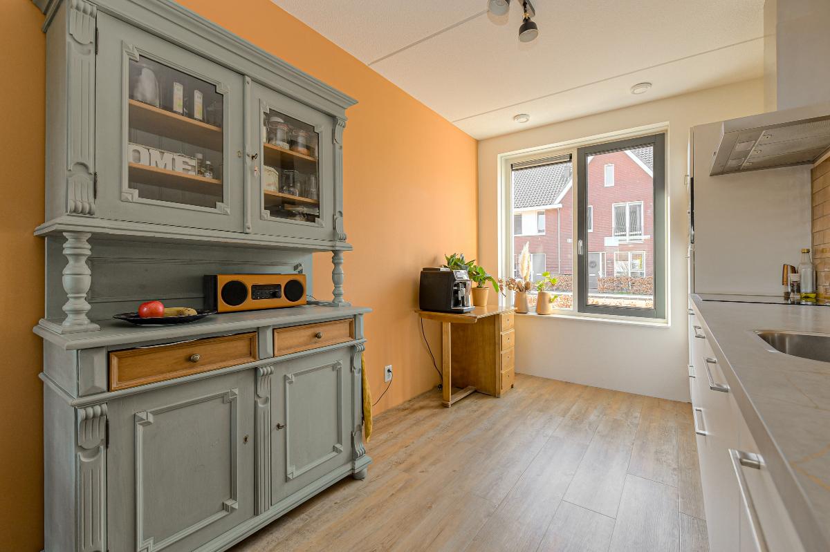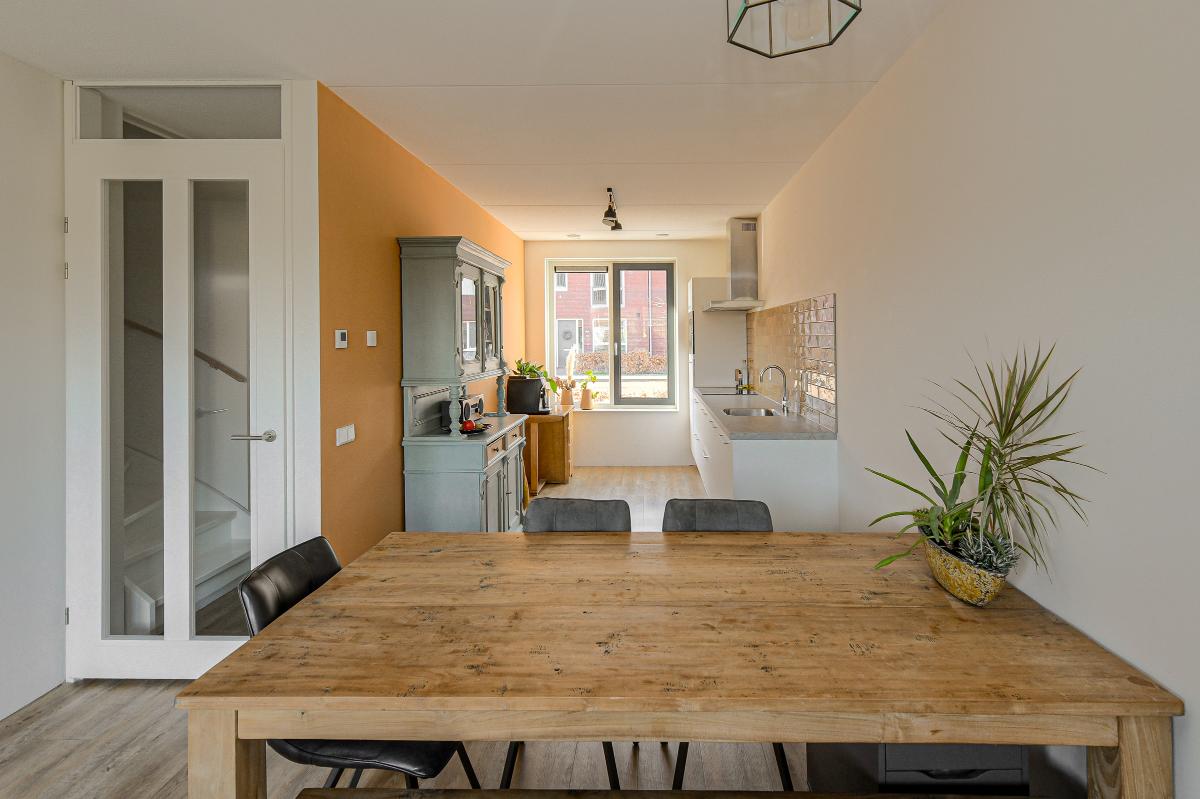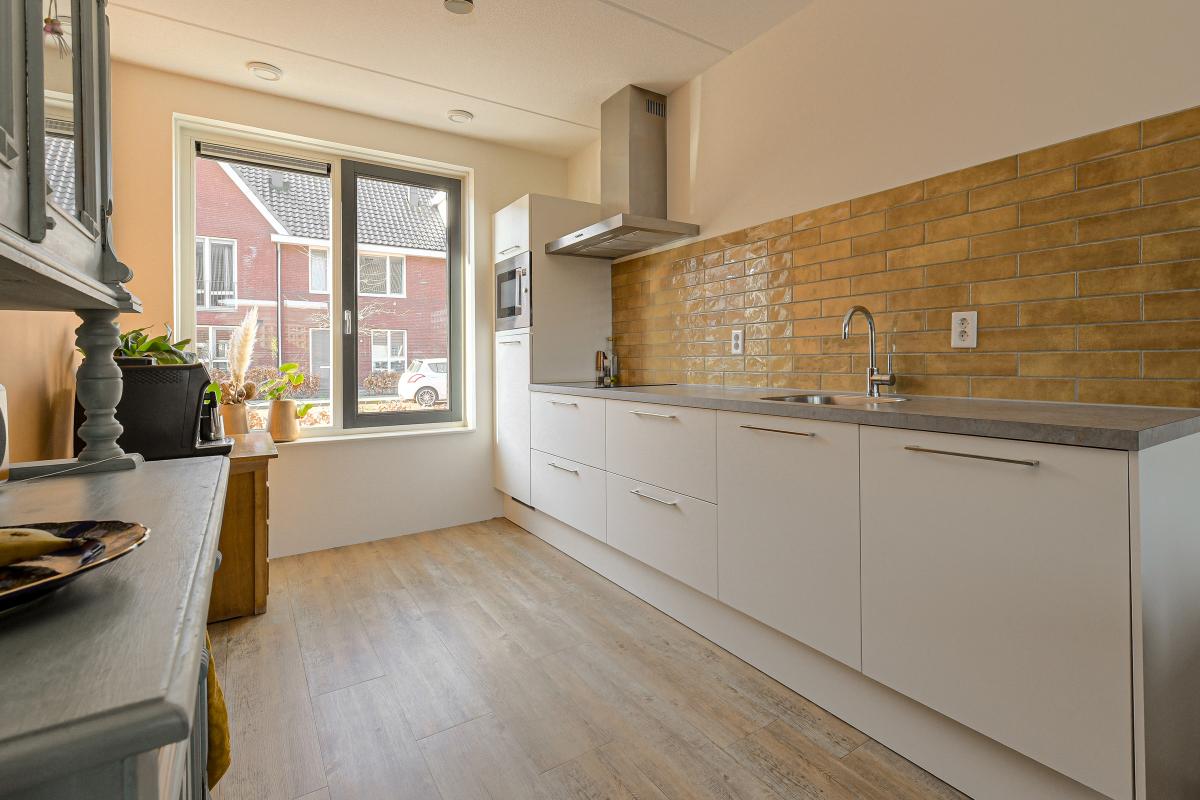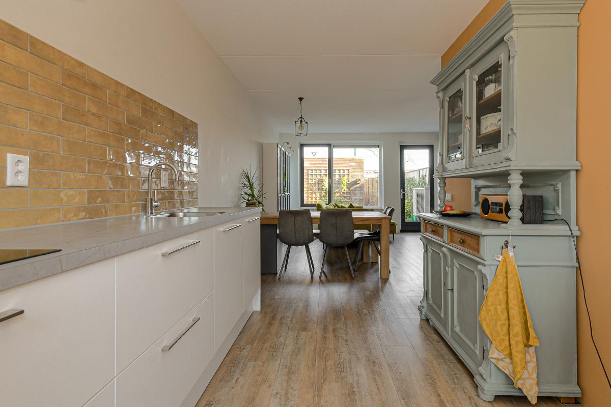 Ruime entree/hal met meterkast en een moderne, deels betegelde toiletruimte voorzien van een wandcloset en fonteintje. Vanuit de hal betreedt u de sfeervolle en lichte woonkamer (tuinkamer). Dankzij de grote raampartijen geniet deze ruimte van een prettige lichtinval. De woonkamer is afgewerkt met een fraaie PVC vloer met vloerverwarming en strakke wanden. Tevens beschikt de woonkamer over een praktische trapkast en staat deze in open verbinding met de keuken. Via de tuindeur bereikt u de achtertuin. De moderne keuken bevindt zich aan de voorzijde van de woning en is uitgevoerd in een rechte opstelling met een stijlvol werkblad. Uiteraard ontbreekt het niet aan inbouwapparatuur, waaronder een vaatwasser, combi-oven, koelkast, afzuigkap en een 4-pits inductiekookplaat. ________________________________________ Achtertuin De verzorgde achtertuin is gelegen op het noordoosten en heeft een afmeting van circa 7 x 5,5 meter. De tuin is modern aangelegd met een combinatie van grote terrastegels, groene borders en sfeervolle beplanting, wat zorgt voor een prettige balans tussen onderhoudsgemak en groen. De houten berging achterin de tuin is voorzien van elektra en een betonvloer en biedt voldoende ruimte voor fietsen en tuingereedschap. Dankzij de praktische achterom is de tuin bovendien goed bereikbaar. De groene erfafscheidingen en de verzorgde beplanting geven de tuin een rustige en beschutte sfeer, waardoor dit een heerlijke plek is om te ontspannen. ________________________________________ Eerste verdieping Overloop met vaste trap naar de tweede verdieping. Op deze verdieping bevinden zich drie slaapkamers: één aan de voorzijde en twee aan de achterzijde van de woning. De gehele verdieping is voorzien van vloerverwarming, een fraaie PVC vloer en strakke wanden. De moderne badkamer is deels betegeld en uitgerust met een inloopdouche, ligbad, wastafel en designradiator. De ruimte is netjes en verzorgd afgewerkt. ________________________________________ Tweede verdieping De zolderverdieping betreft een ruime open zolder met veel bergruimte. Door de royale hoogte is deze verdieping uitstekend geschikt om één of zelfs twee extra slaapkamers te realiseren, eventueel gecombineerd met een praktische bergzolder of vliering. ________________________________________ Voor de dagelijkse voorzieningen kunt u uitstekend terecht in het dorp zelf. Daarnaast ligt het prachtige Nationaal Park De Biesbosch op korte afstand – perfect voor wandelen, fietsen of varen in de natuur. Dankzij de gunstige ligging nabij diverse uitvalswegen bent u bovendien snel onderweg richting steden als Breda, Rotterdam, Utrecht en Dordrecht. Heeft deze woning uw interesse gewekt? Maak dan snel een afspraak voor een bezichtiging en ervaar zelf het comfort en de ruimte van deze mooie woning!