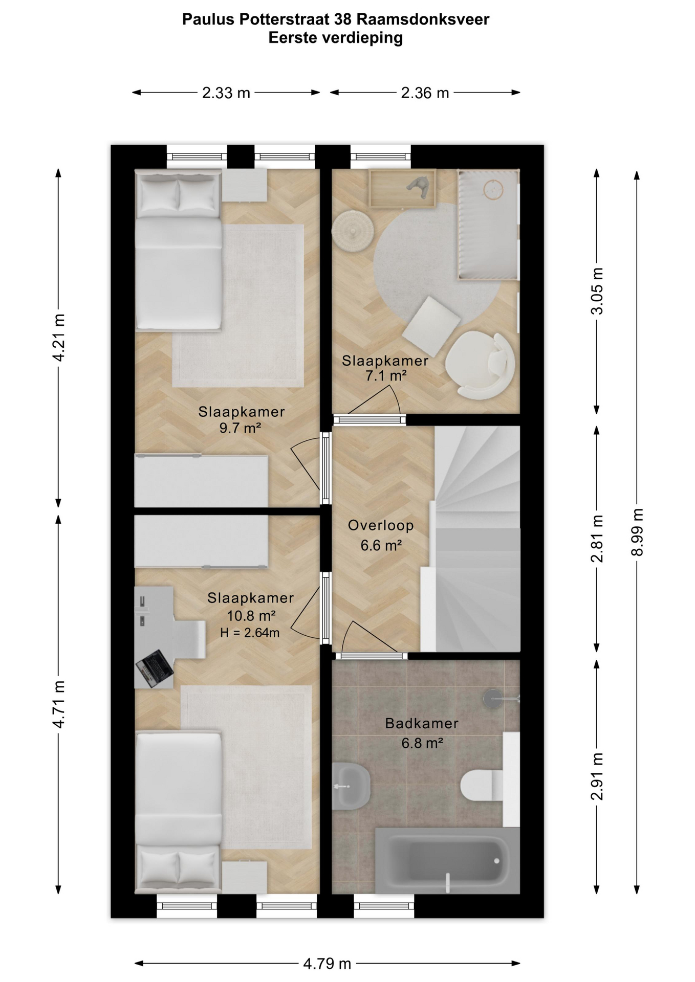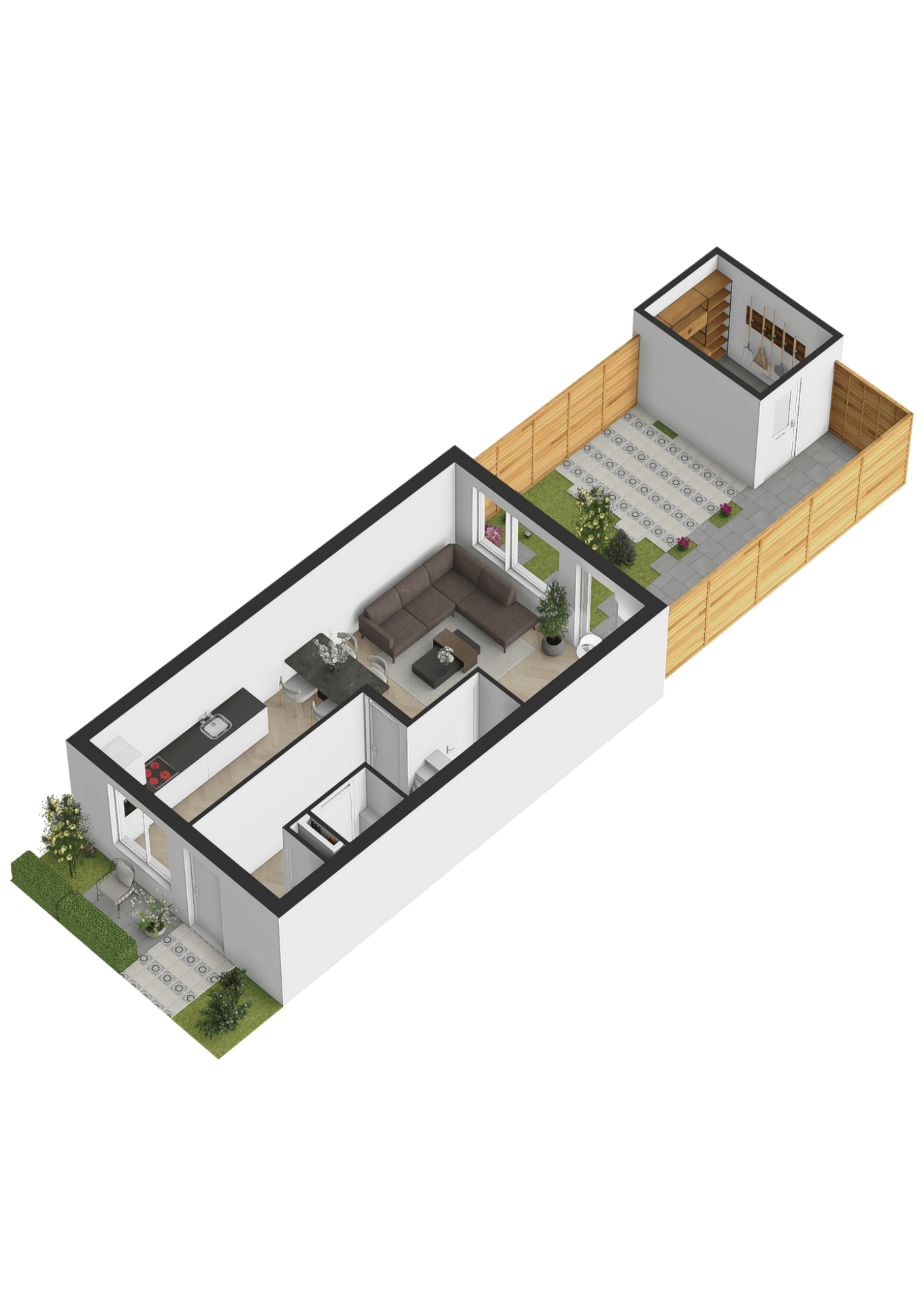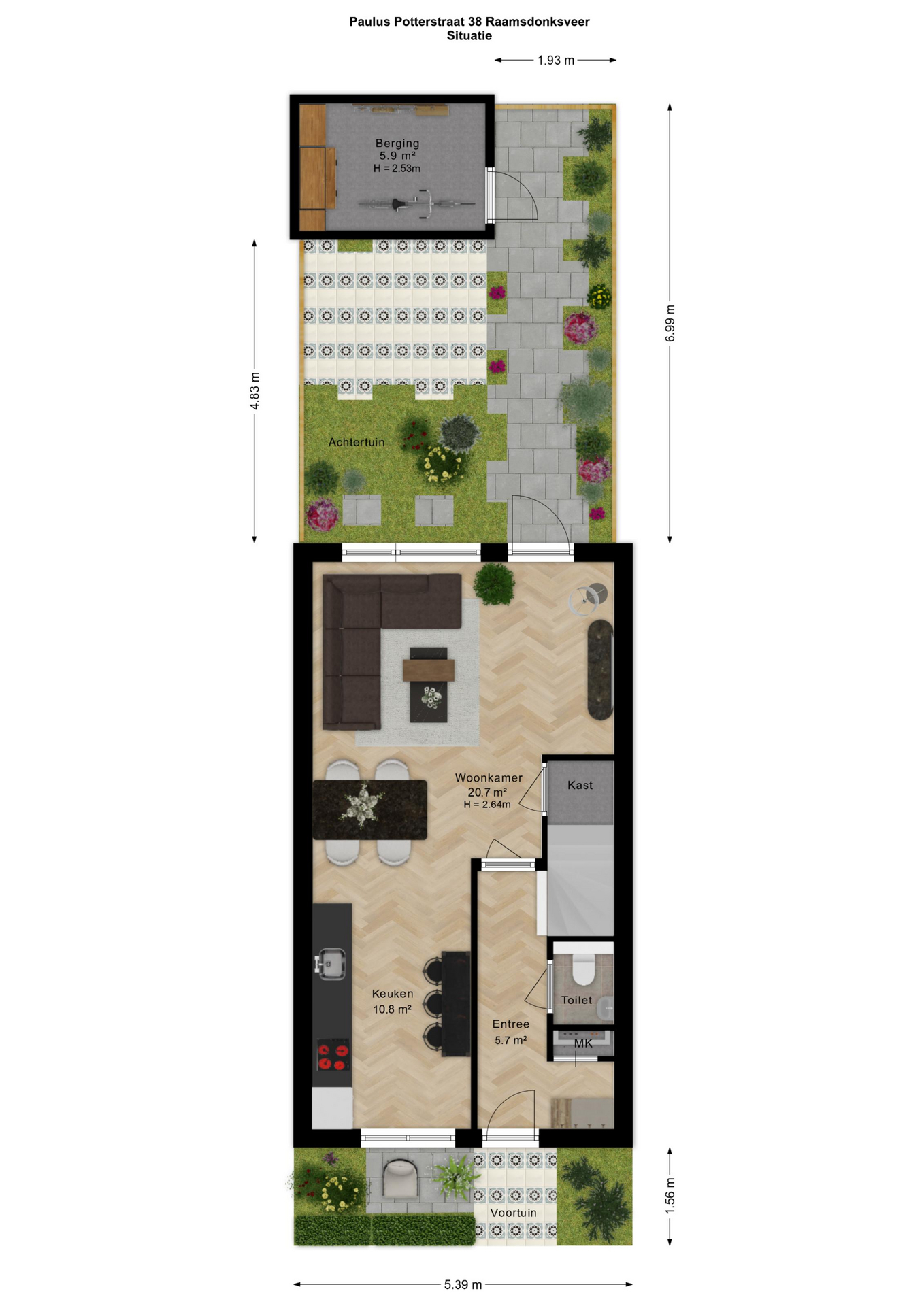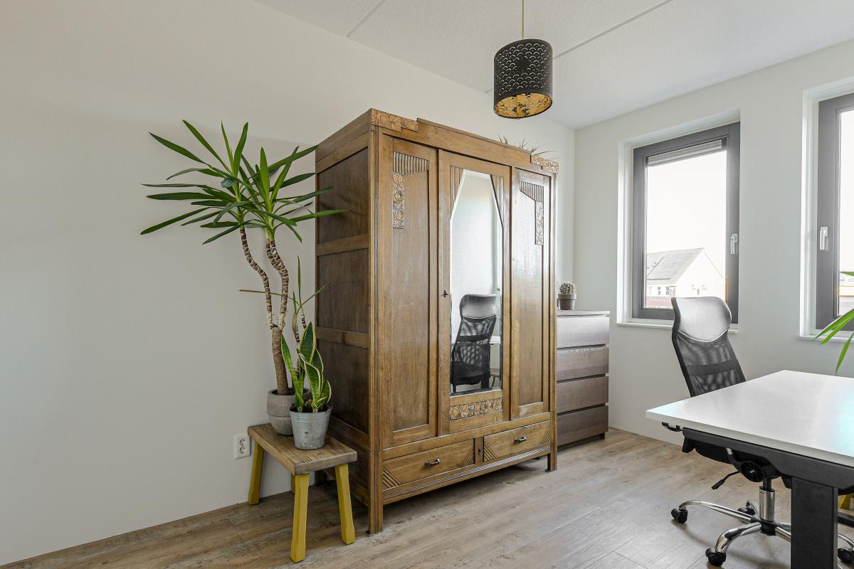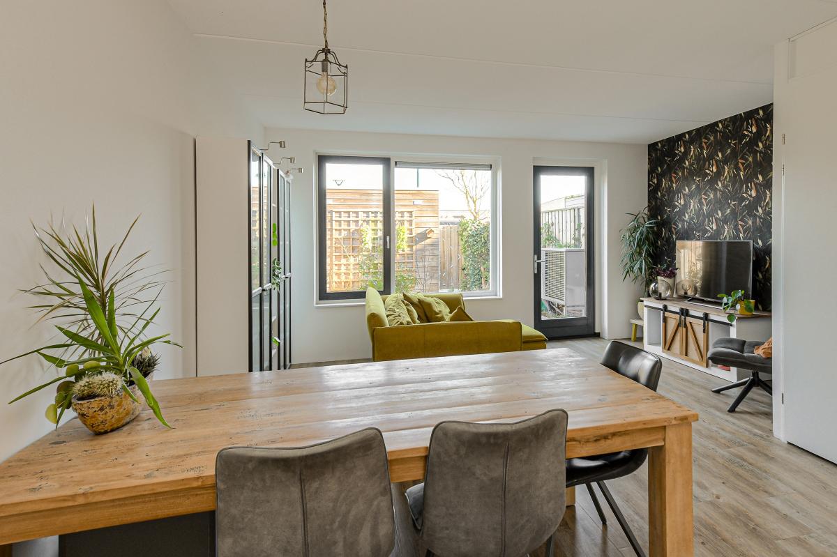 Ruime entree/hal met meterkast en een moderne, deels betegelde toiletruimte voorzien van een wandcloset en fonteintje. Vanuit de hal betreedt u de sfeervolle en lichte woonkamer (tuinkamer). Dankzij de grote raampartijen geniet deze ruimte van een prettige lichtinval. De woonkamer is afgewerkt met een fraaie PVC vloer met vloerverwarming en strakke wanden. Tevens beschikt de woonkamer over een praktische trapkast en staat deze in open verbinding met de keuken. Via de tuindeur bereikt u de achtertuin. De moderne keuken bevindt zich aan de voorzijde van de woning en is uitgevoerd in een rechte opstelling met een stijlvol werkblad. Uiteraard ontbreekt het niet aan inbouwapparatuur, waaronder een vaatwasser, combi-oven, koelkast, afzuigkap en een 4-pits inductiekookplaat. ________________________________________ Achtertuin De verzorgde achtertuin is gelegen op het noordoosten en heeft een afmeting van circa 7 x 5,5 meter. De tuin is modern aangelegd met een combinatie van grote terrastegels, groene borders en sfeervolle beplanting, wat zorgt voor een prettige balans tussen onderhoudsgemak en groen. De houten berging achterin de tuin is voorzien van elektra en een betonvloer en biedt voldoende ruimte voor fietsen en tuingereedschap. Dankzij de praktische achterom is de tuin bovendien goed bereikbaar. De groene erfafscheidingen en de verzorgde beplanting geven de tuin een rustige en beschutte sfeer, waardoor dit een heerlijke plek is om te ontspannen. ________________________________________ Eerste verdieping Overloop met vaste trap naar de tweede verdieping. Op deze verdieping bevinden zich drie slaapkamers: één aan de voorzijde en twee aan de achterzijde van de woning. De gehele verdieping is voorzien van vloerverwarming, een fraaie PVC vloer en strakke wanden. De moderne badkamer is deels betegeld en uitgerust met een inloopdouche, ligbad, wastafel en designradiator. De ruimte is netjes en verzorgd afgewerkt. ________________________________________ Tweede verdieping De zolderverdieping betreft een ruime open zolder met veel bergruimte. Door de royale hoogte is deze verdieping uitstekend geschikt om één of zelfs twee extra slaapkamers te realiseren, eventueel gecombineerd met een praktische bergzolder of vliering. ________________________________________ Voor de dagelijkse voorzieningen kunt u uitstekend terecht in het dorp zelf. Daarnaast ligt het prachtige Nationaal Park De Biesbosch op korte afstand – perfect voor wandelen, fietsen of varen in de natuur. Dankzij de gunstige ligging nabij diverse uitvalswegen bent u bovendien snel onderweg richting steden als Breda, Rotterdam, Utrecht en Dordrecht. Heeft deze woning uw interesse gewekt? Maak dan snel een afspraak voor een bezichtiging en ervaar zelf het comfort en de ruimte van deze mooie woning!