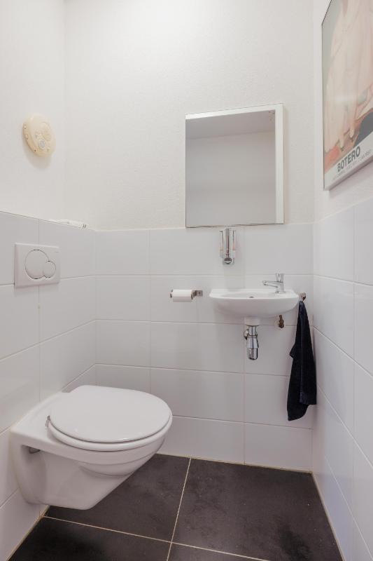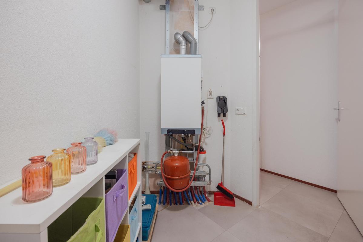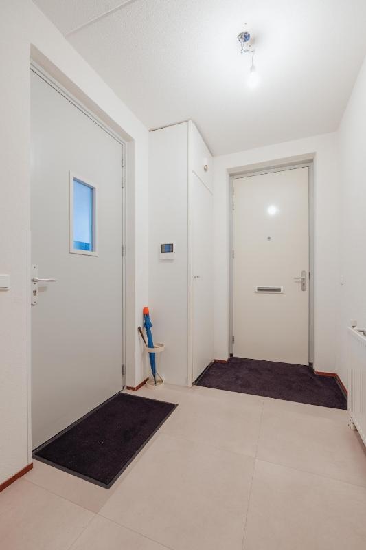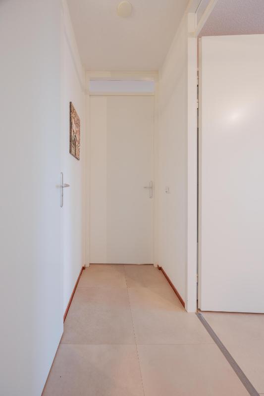 Indeling appartement: Entree/hal met meterkast (8 groepen en 2 aardlekschakelaars). Vanuit de hal toegang tot de bijkeuken/stook-/wasruimte met opstelling c.v.-combiketel Intergas HR 2009 en hier bevinden zich tevens de aansluitingen voor de wasapparatuur. Vanuit de hal eveneens toegang tot de woonkamer, de gemeenschappelijke hal en de deels betegelde toiletruimte met wandcloset en fonteintje.