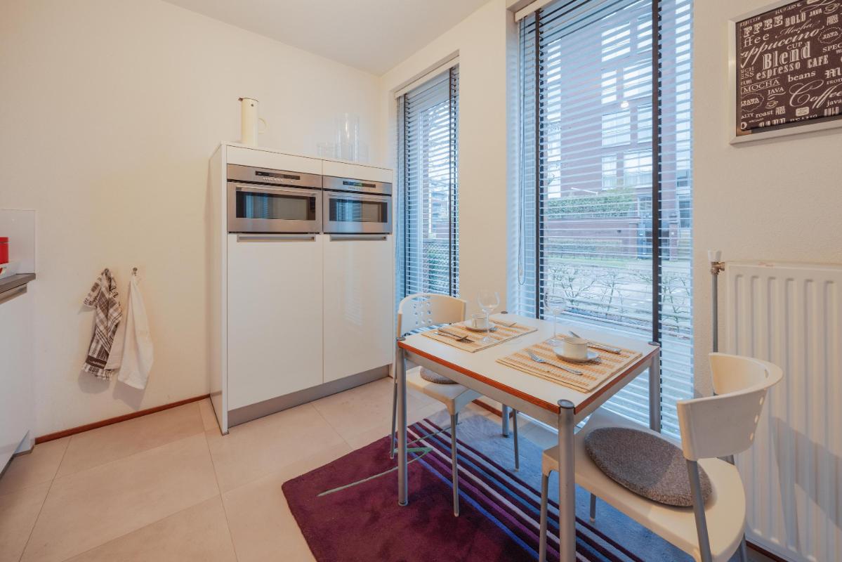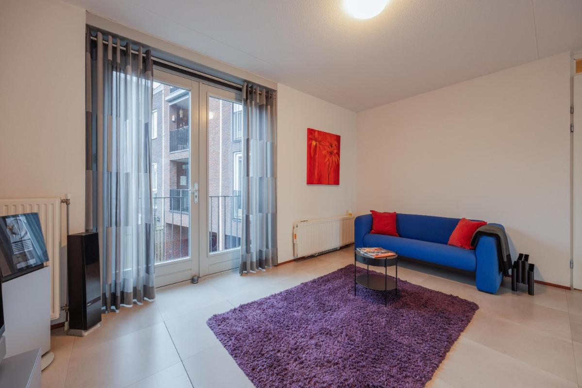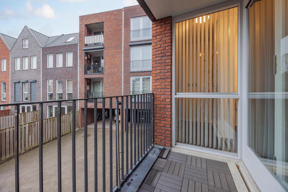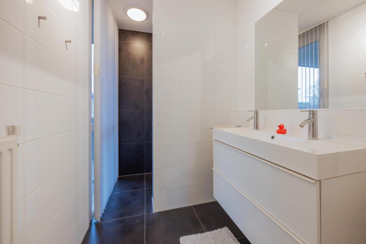 De woonkamer heeft een oppervlakte van ruim 37m2 en heeft veel lichtinval door de vele grote raampartijen en de aanwezige Franse balkons. Vanuit de woonkamer is de half open keuken bereikbaar met een nette complete keukeninrichting. Het keukenblok is voorzien van een hardstenen blad en beschikt over de volgende inbouwapparatuur: afzuigkap, 5-pits gaskookplaat, vaatwasser, koelkast, vriezer, oven en een combimagnetron/oven. Vanuit de woonkamer is een tussenhal te bereiken die toegang biedt tot de 2 ruime slaapkamers en de badkamer. De badkamer is volledig betegeld in een neutrale kleurstelling en is voorzien van een wastafelmeubel met dubbele kraan en een ruime inloopdouche. De slaapkamer aan de achterzijde biedt middels grote schuifpui toegang tot het balkon op het zuiden.