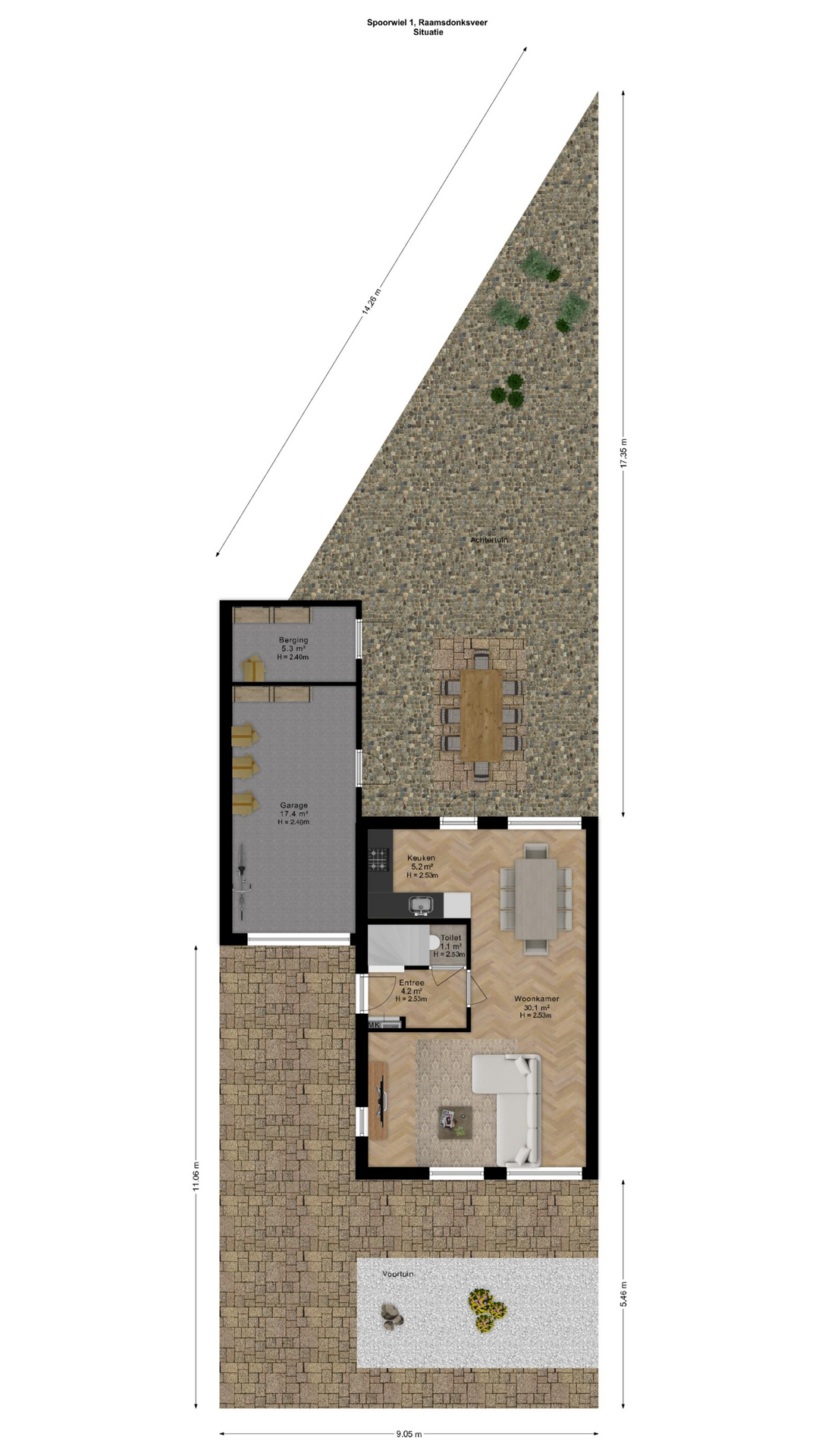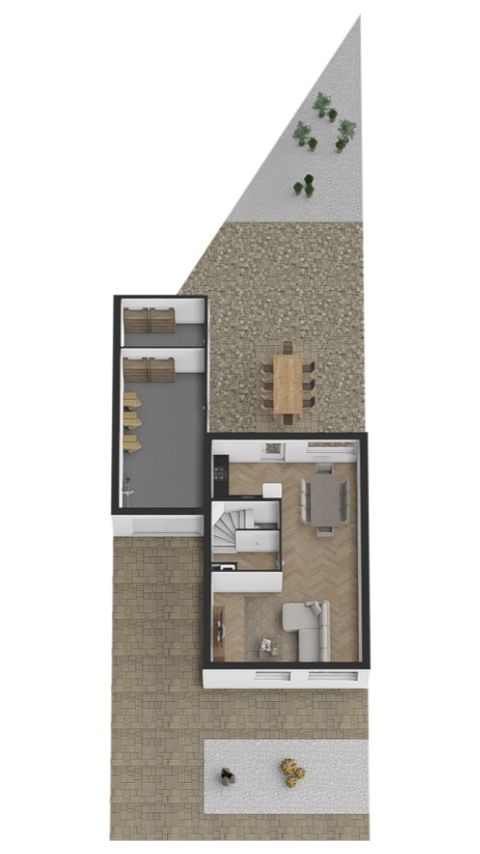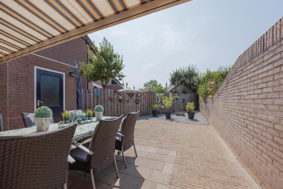 De tuin De achtertuin is fraai aangelegd met borders vol bloemen en planten, een zonnig terras en een achterom via de garage. Dankzij de besloten ligging geniet je hier volop van rust en privacy.