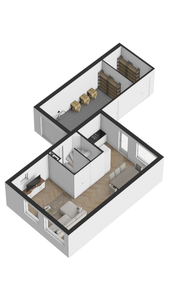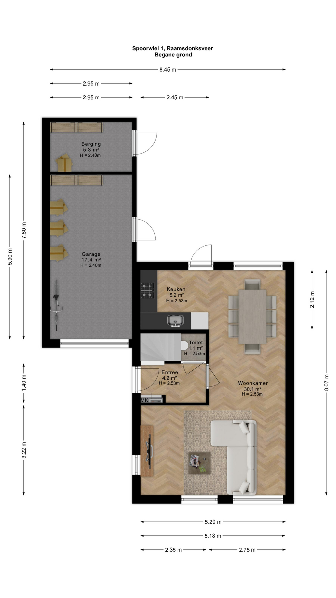 Indeling Begane grond Je parkeert gemakkelijk twee auto’s op de eigen oprit. De hal geeft toegang tot de meterkast, het toilet en de trap naar boven. De lichte, L-vormige woonkamer biedt volop ruimte voor een zit- en eethoek en is afgewerkt met een nette laminaatvloer. Aan de achterzijde ligt de keuken (2017), klassiek-modern van stijl en voorzien van diverse inbouwapparatuur. Vanuit hier stap je zo de tuin in. De garage is binnendoor bereikbaar en beschikt over een extra bergzolder. Achter de garage bevindt zich bovendien nog een aparte berging.