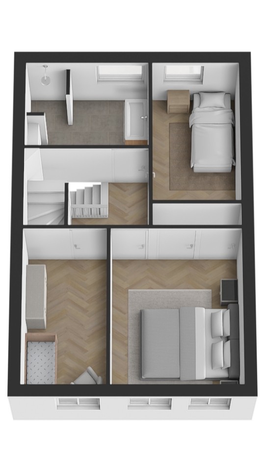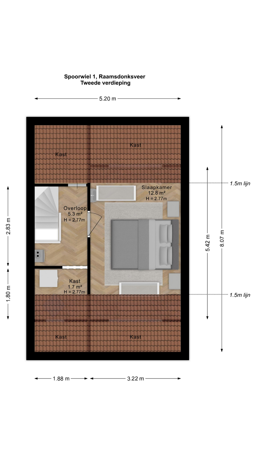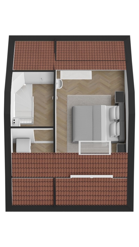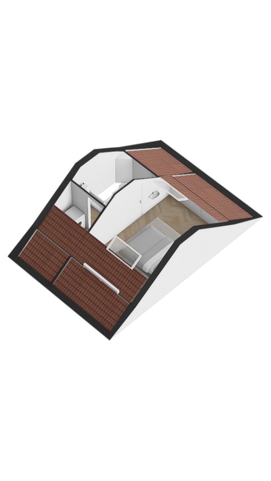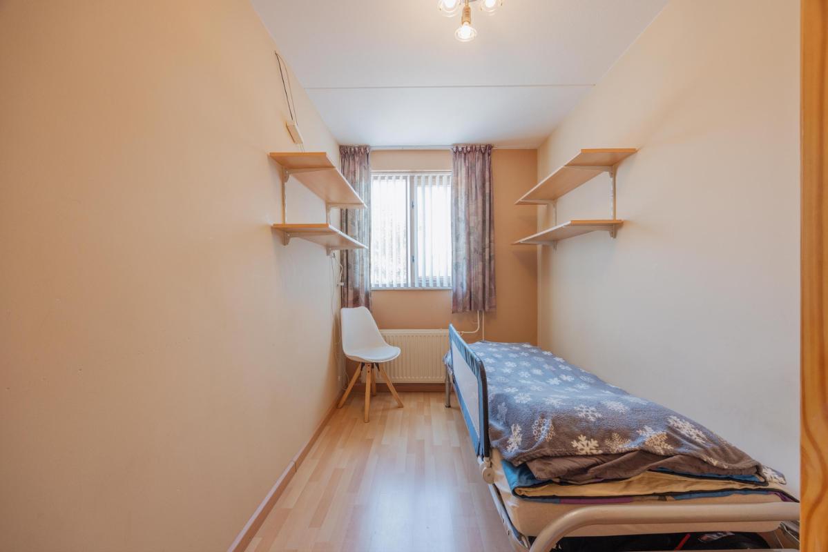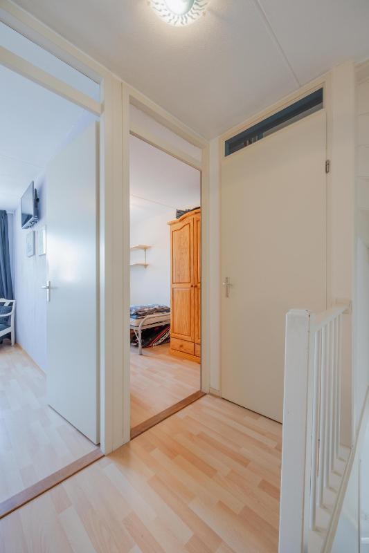 Tweede verdieping Een vaste trap leidt naar de zolder. Hier vind je de voorzolder met cv-installatie (Remeha Tzerra 2026 !!) en aansluitingen voor wasmachine en droger. Daarnaast is er een royale vierde slaapkamer met Velux dakraam en handige bergruimte achter de knieschotten. In 2022 is het volledige dak vernieuwd en voorzien van nieuwe dakisolatie en dakpannen.
