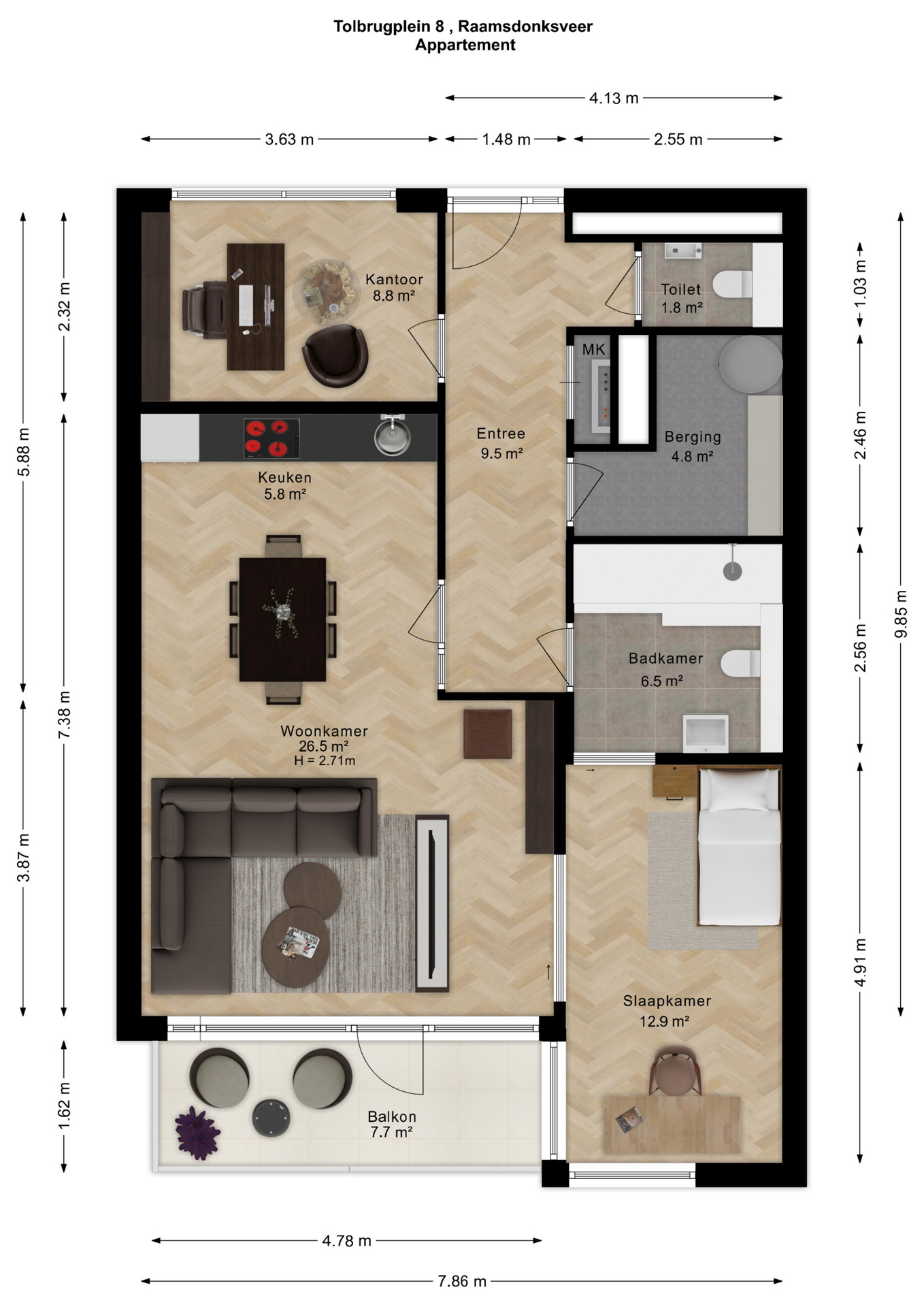 Dit lichte en uitstekend geïsoleerde driekamerappartement van 81 m2 biedt u een unieke kans om te genieten van een weids uitzicht over de rivier de Donge en het karakteristieke fort Lunet. Gelegen op de begane grond van een modern complex uit 2013, combineert deze woning een rustige woonomgeving met de gezelligheid van het centrum van Raamdonksveer op loopafstand.