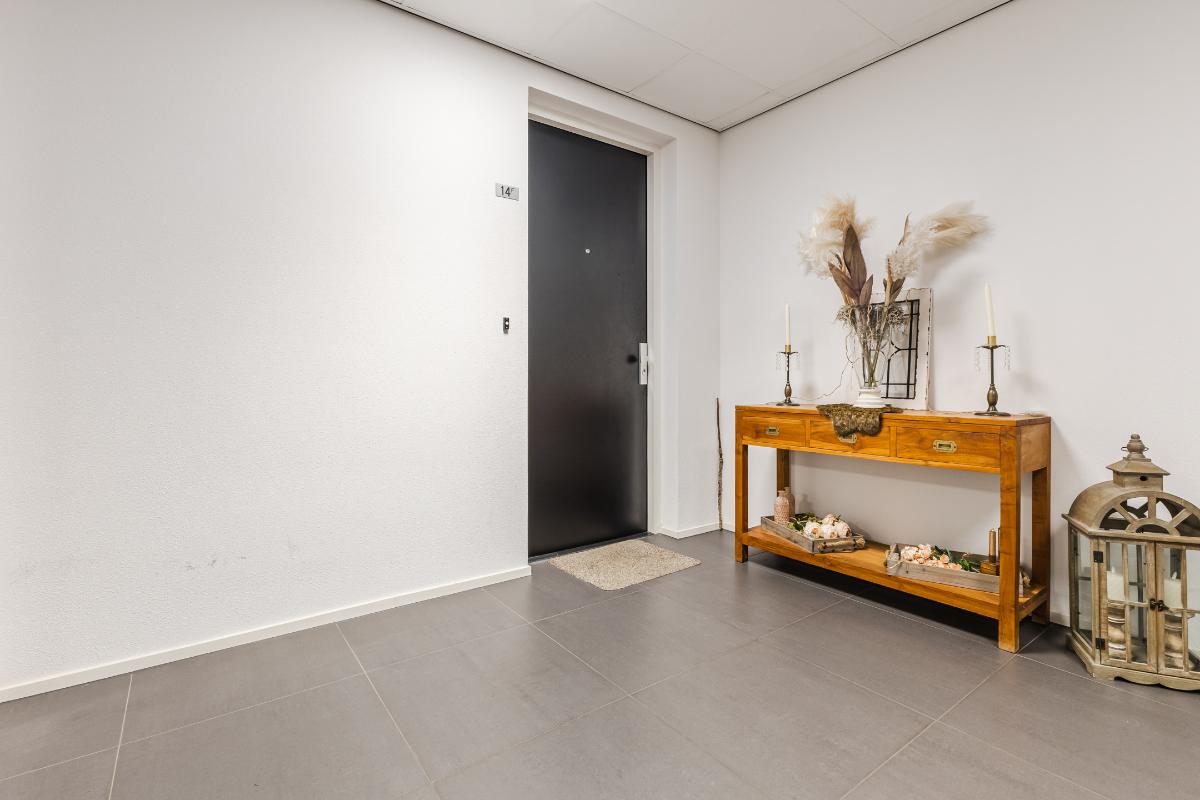 L-vormige hal met de meterkast, videofooninstallatie en toegang naar de technische ruimte en de woonkamer.