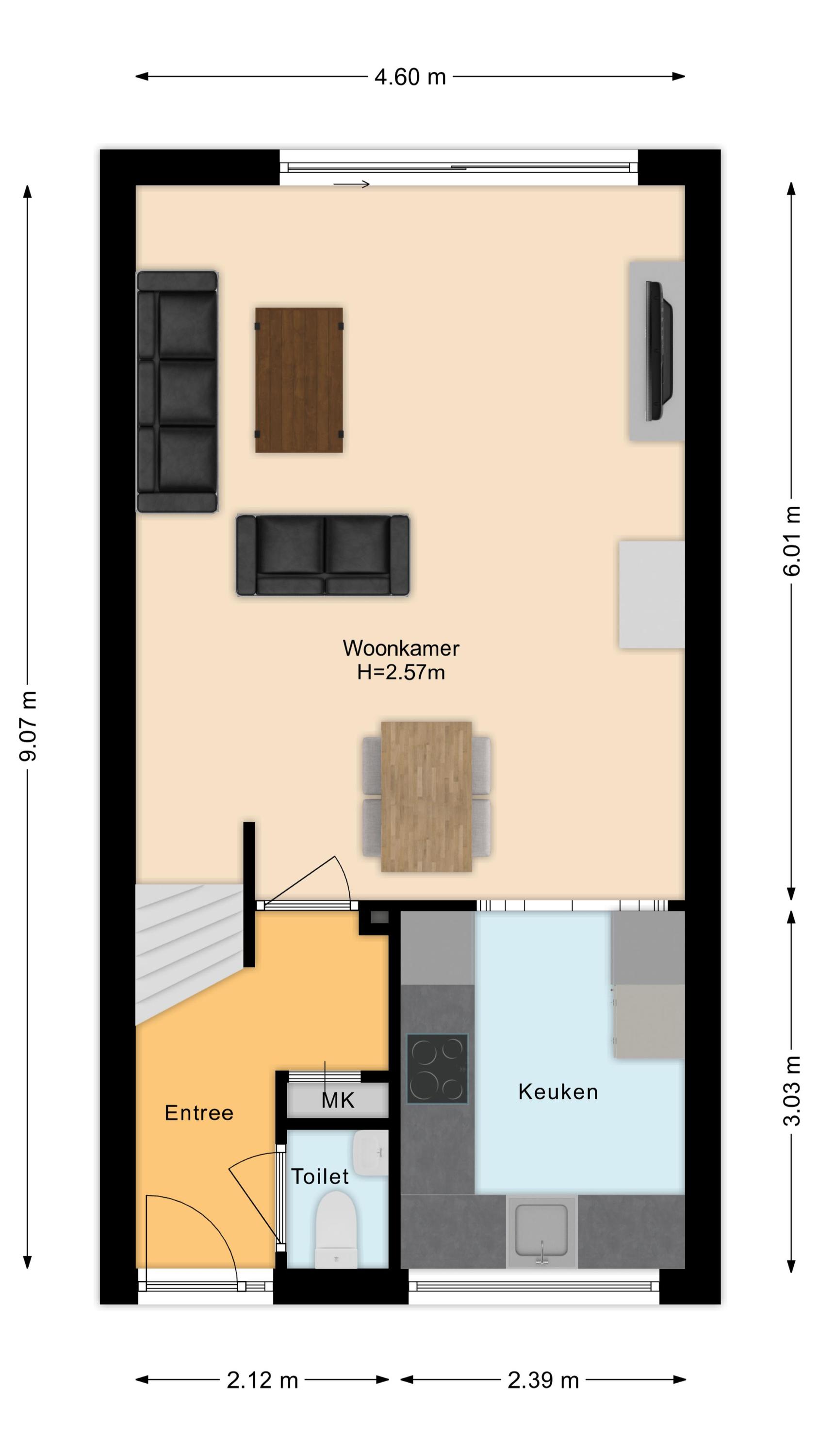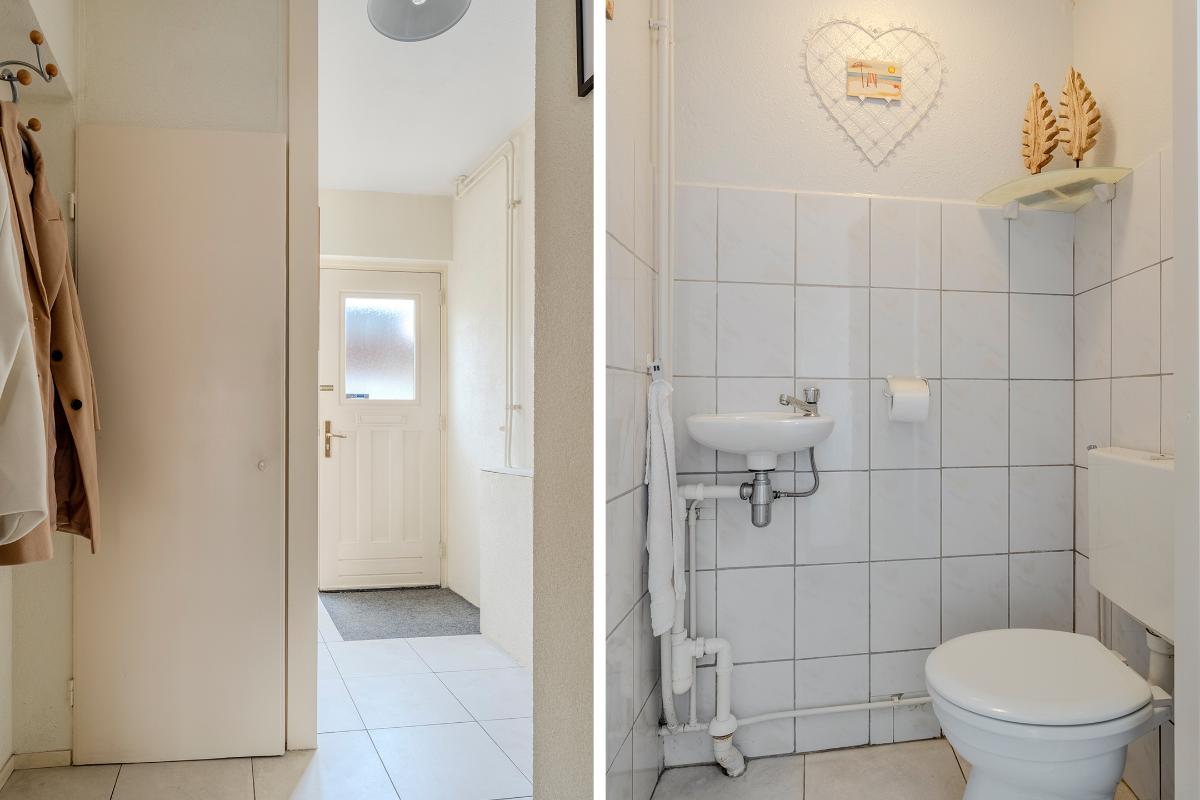 Via de entree komt u eerst in de gang met modern toilet en de meterkast.