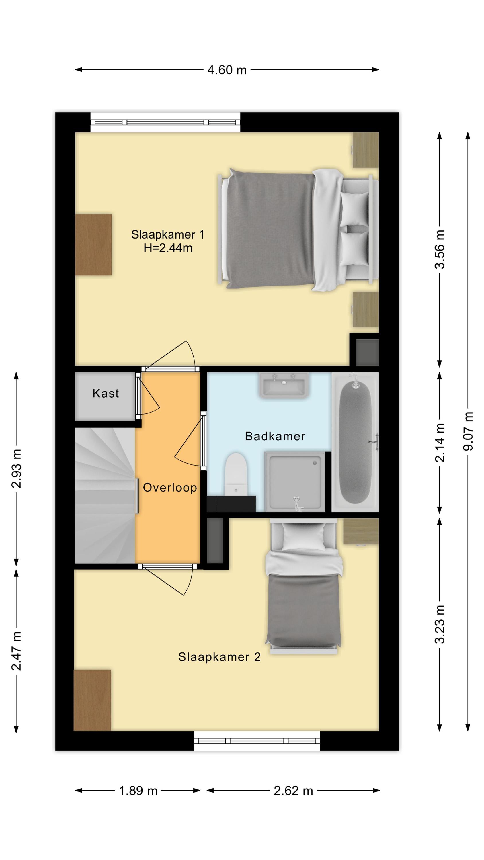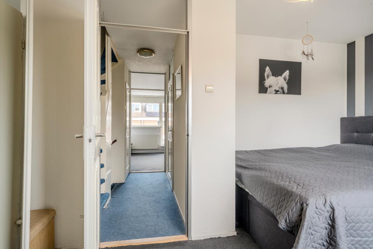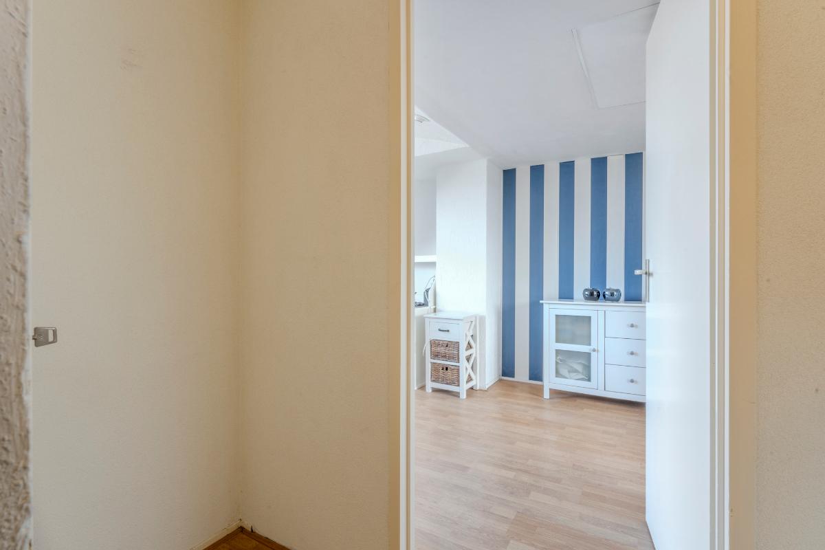 Tussenin de overloop met ruime vaste kast en toegang tot de badkamer.