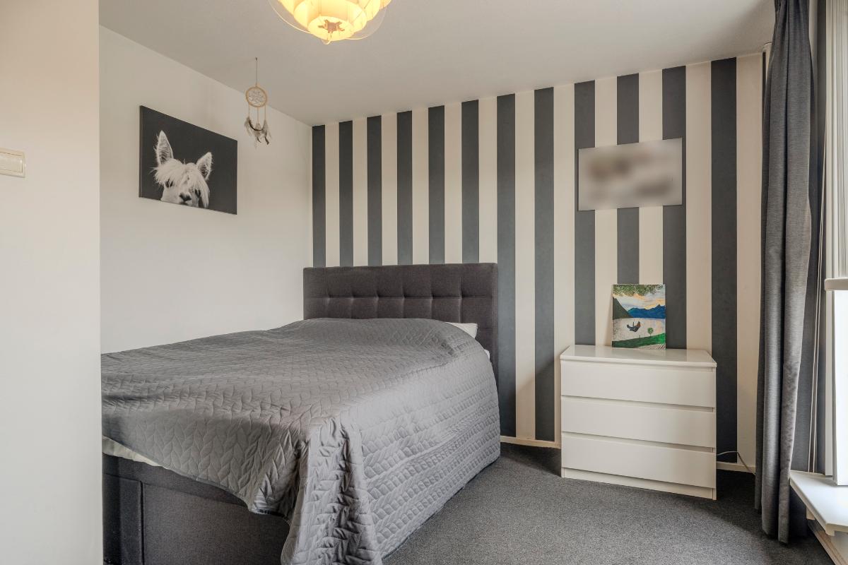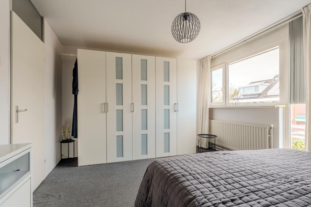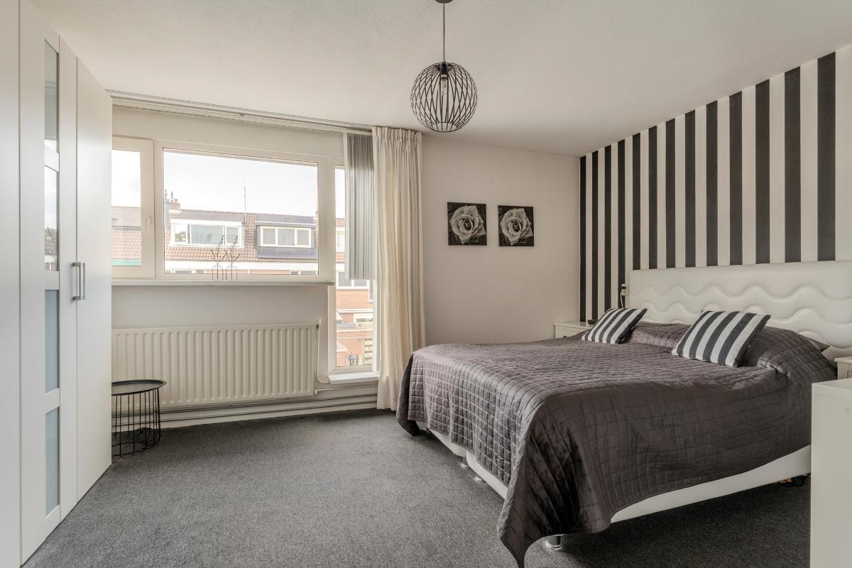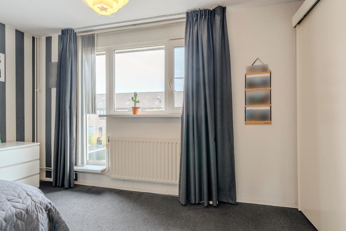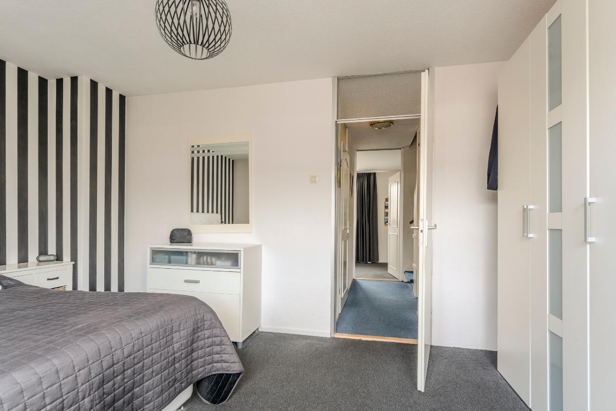 Op de eerste verdieping van de woning treft u aan de achterzijde, de ruime ouderslaapkamer, welke is voorzien van kunststof kozijnen en dubbel glas.