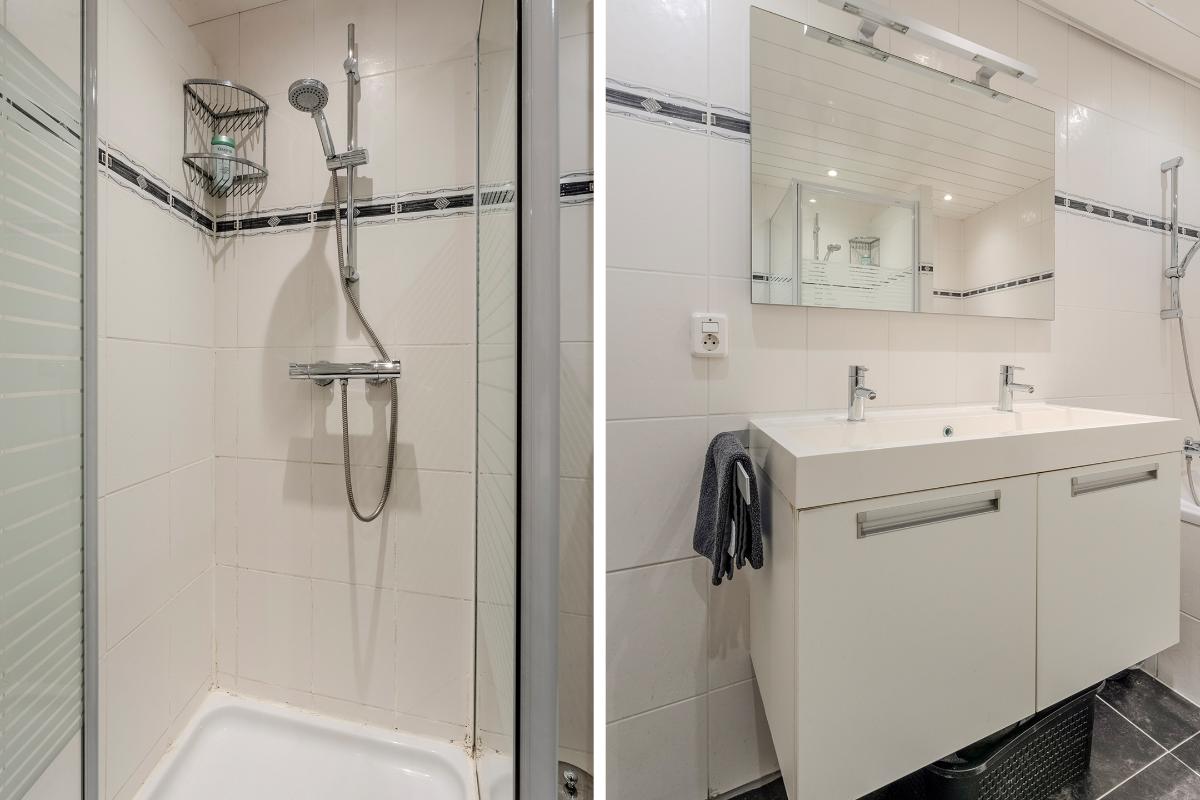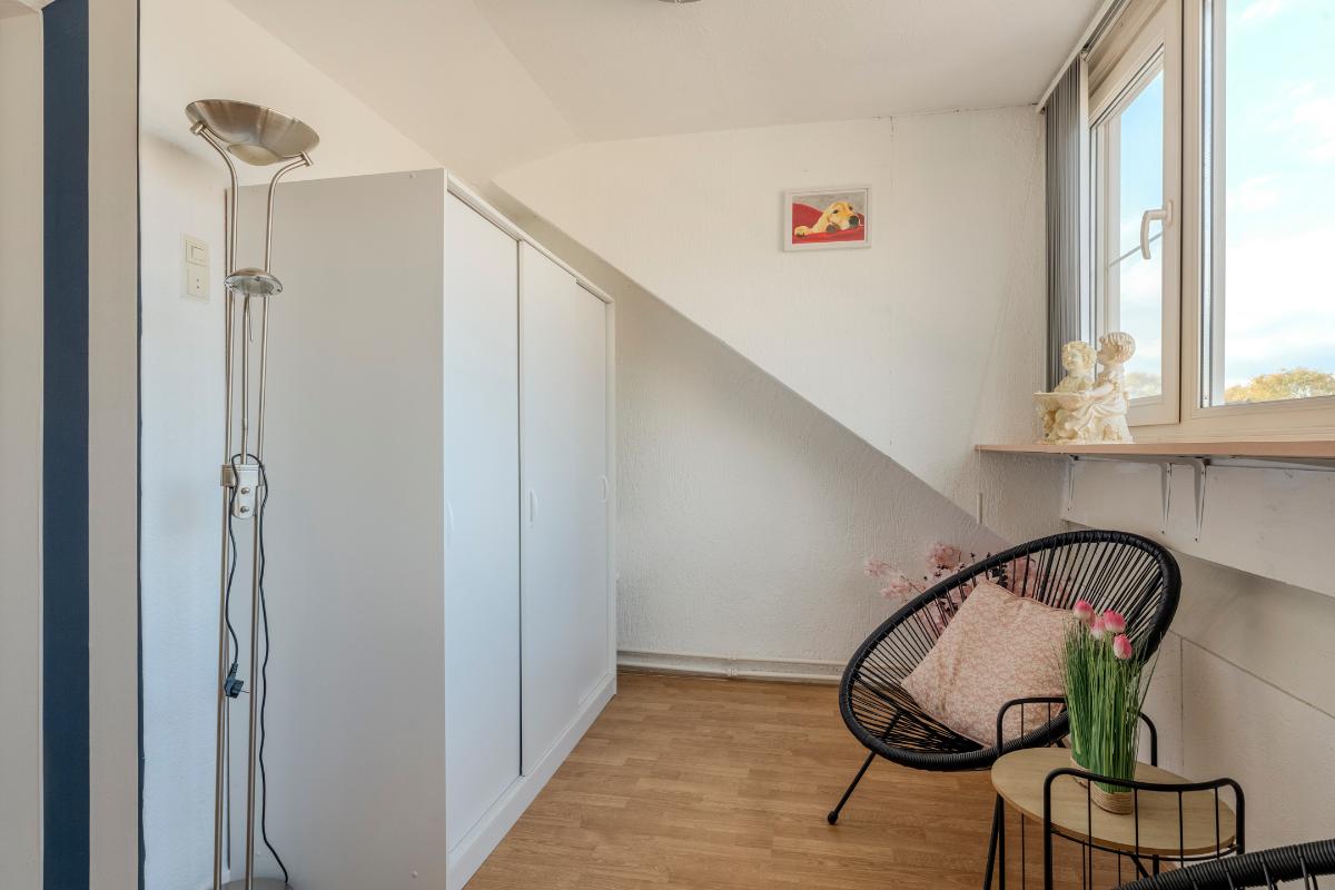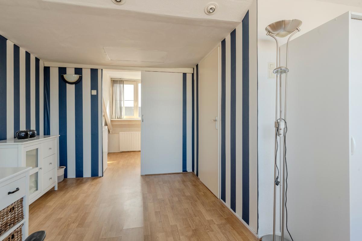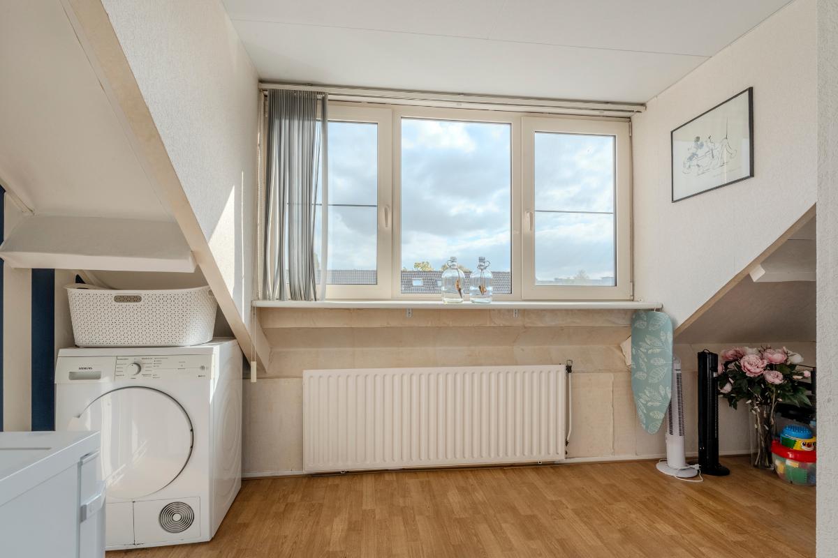 Op de 2e verdieping is een kleine voorzolder met een praktisch badmeubel en een vaste kast met de opstelling van de CV combi-ketel.