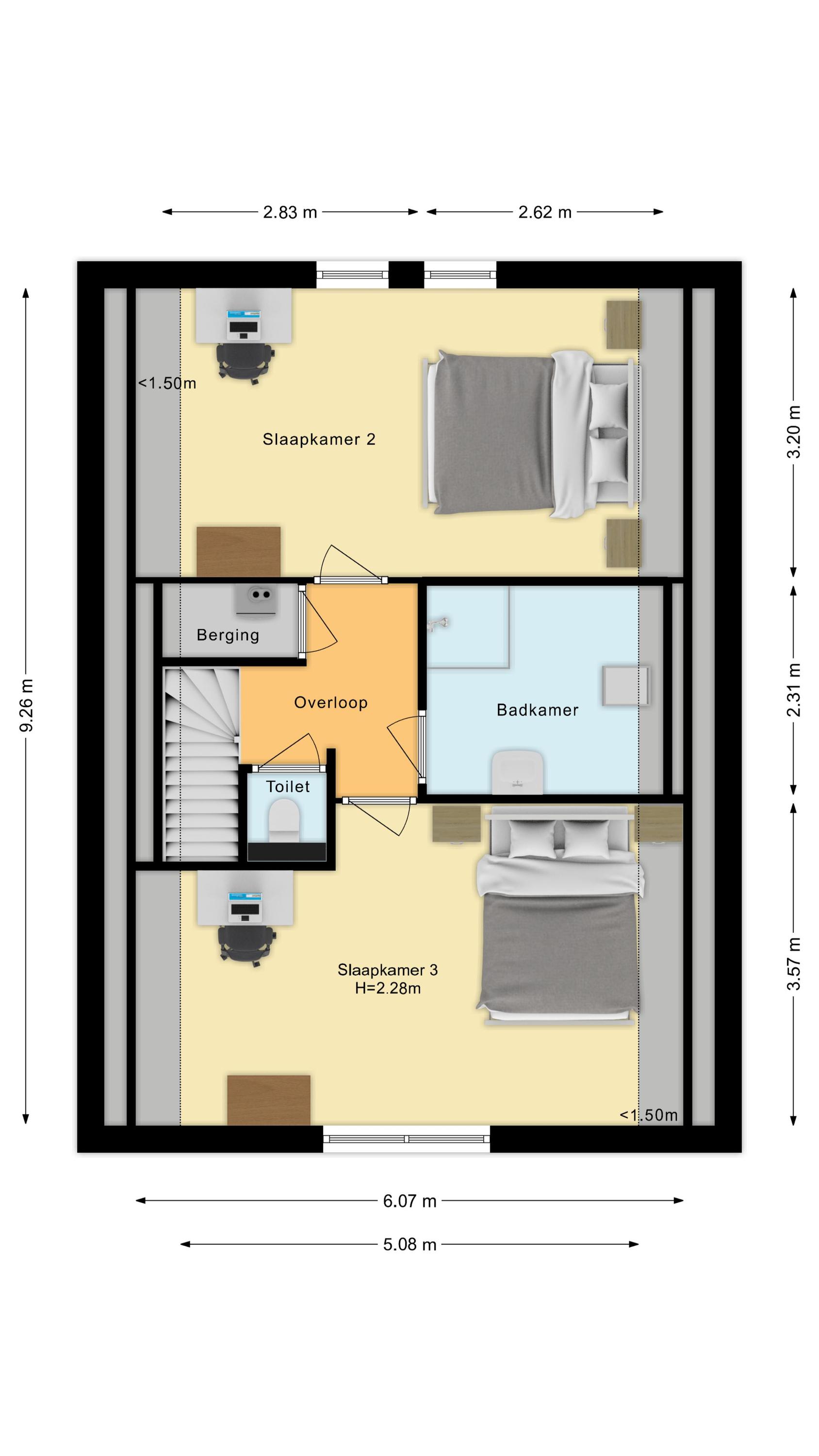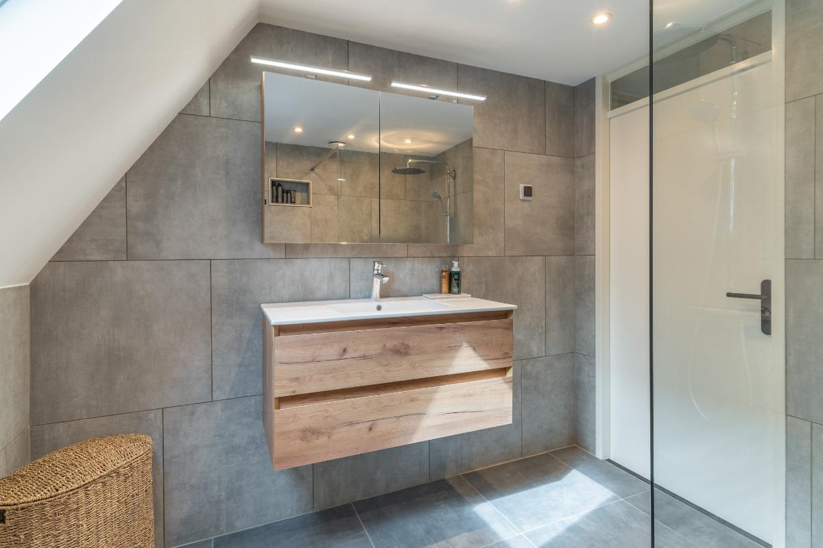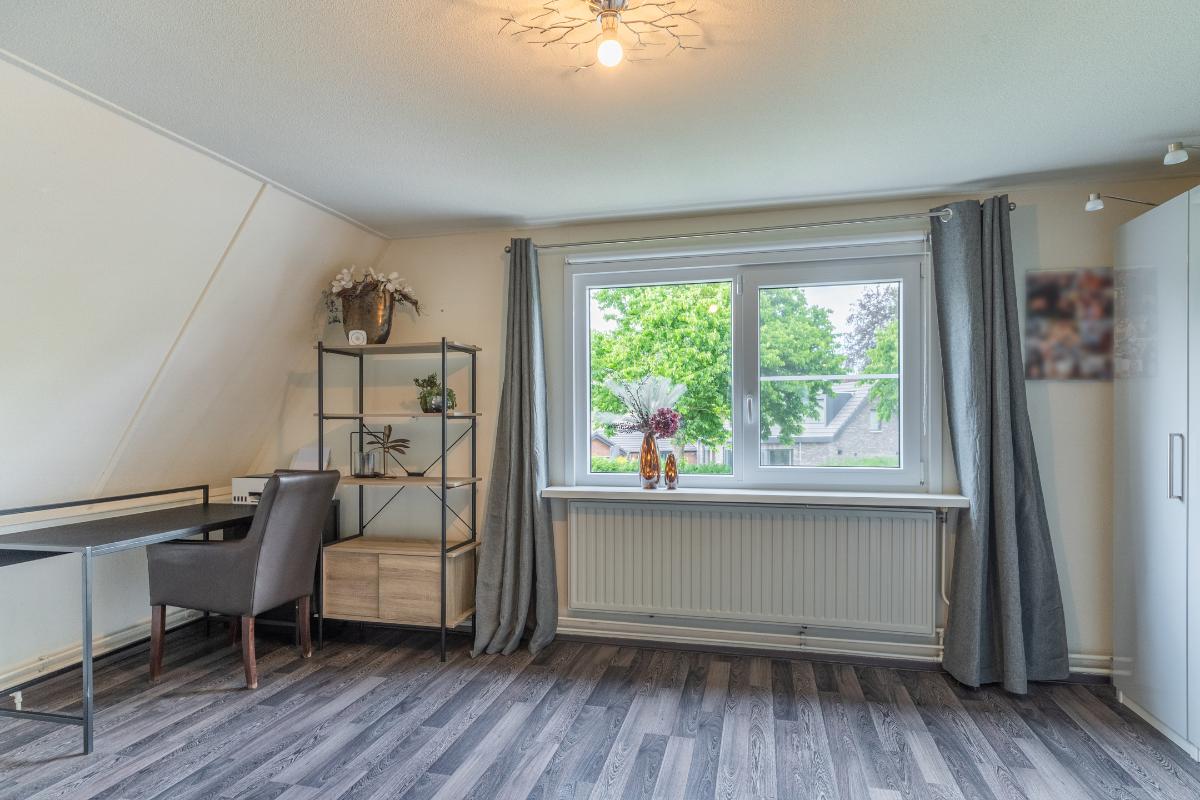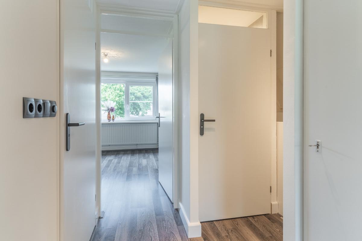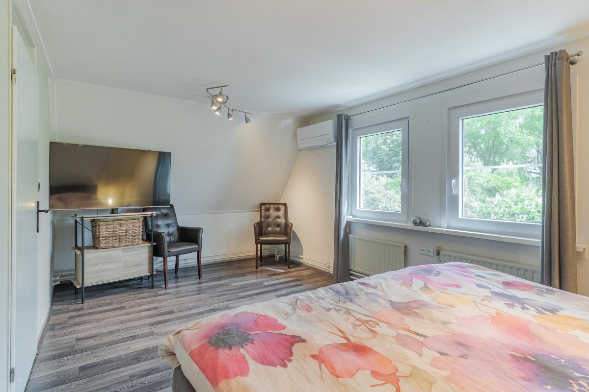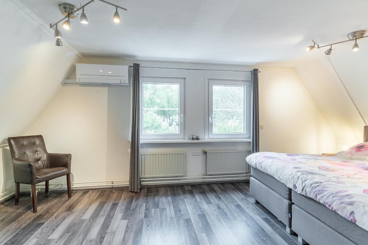 Eerste verdieping: Op de eerste verdieping bevinden zich twee ruime slaapkamers, allen voorzien van een doorlopende laminaatvloer die zorgt voor rust en eenheid. De badkamer beschikt over een inloopdouche, een wastafelmeubel en een raam voor de natuurlijke ventilatie. Tevens is er op deze verdieping een apart 2e toilet. De hoofdslaapkamer is aan de achterkant van de woning. Deze kamer beschikt over een eigen airco en heeft een rolluik. De kamer aan de voorzijde is eveneens erg royaal.