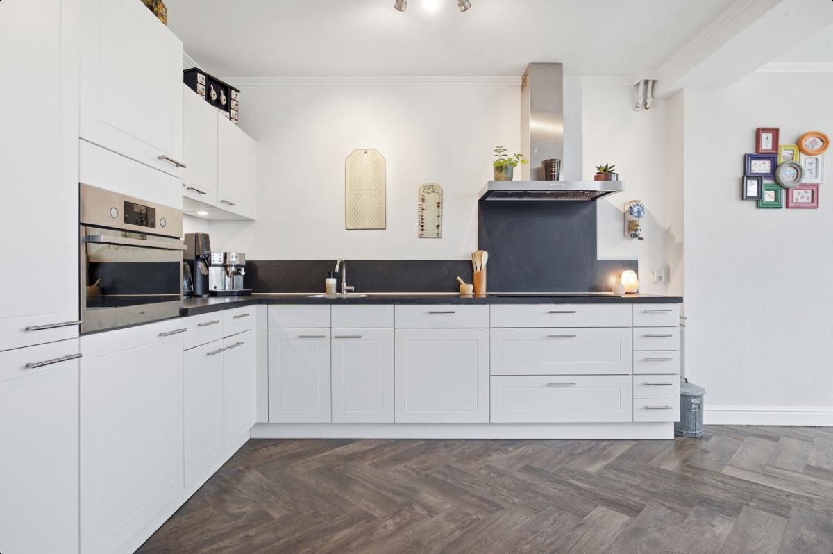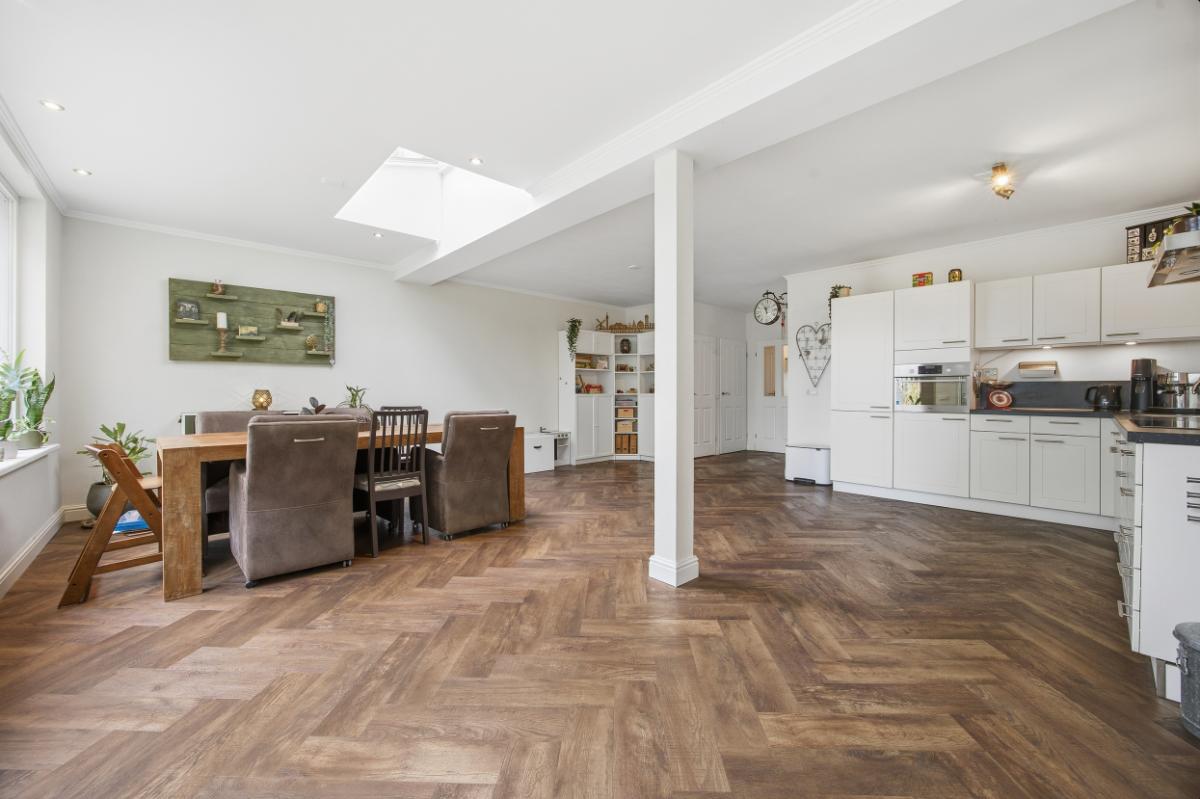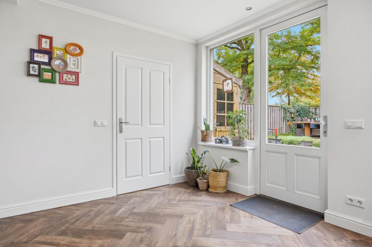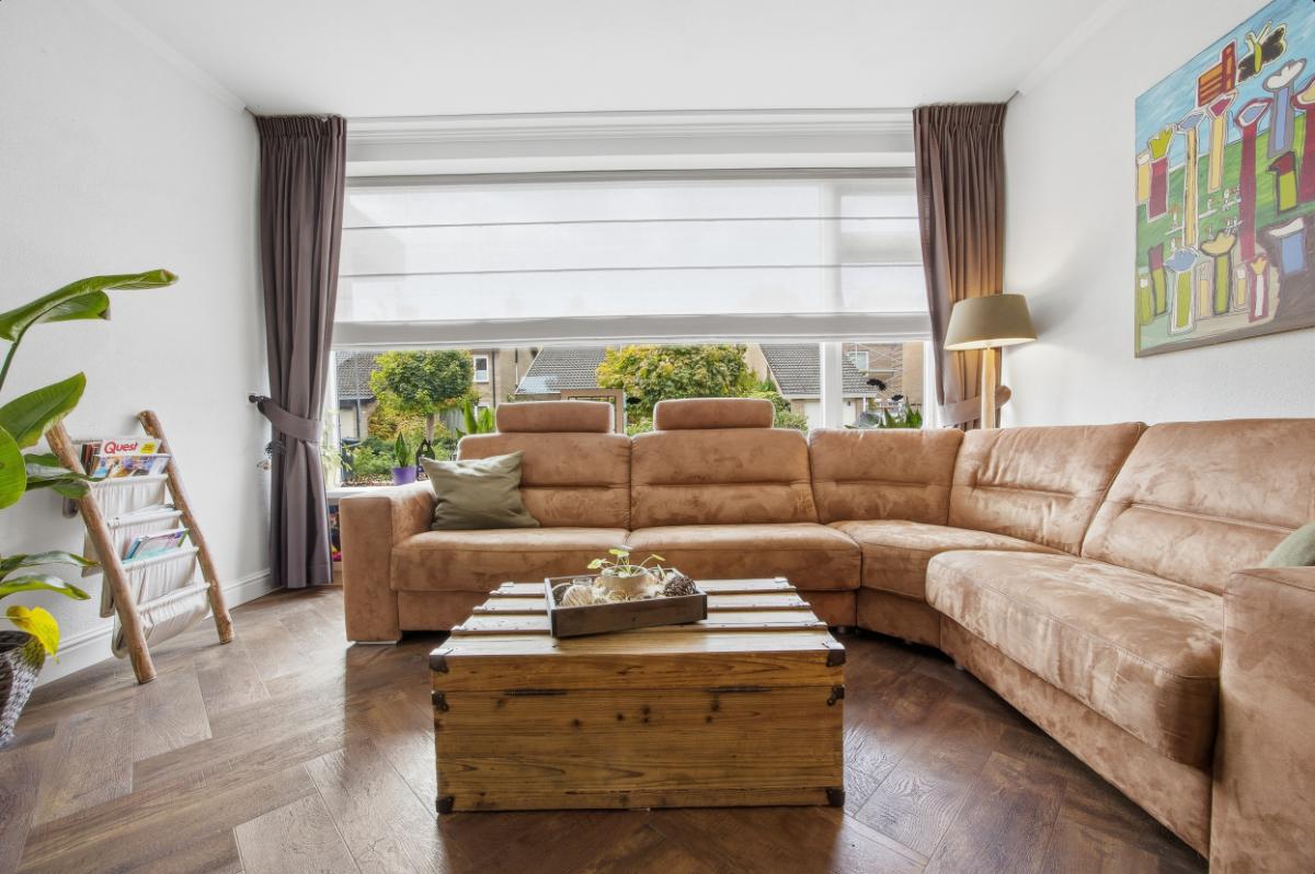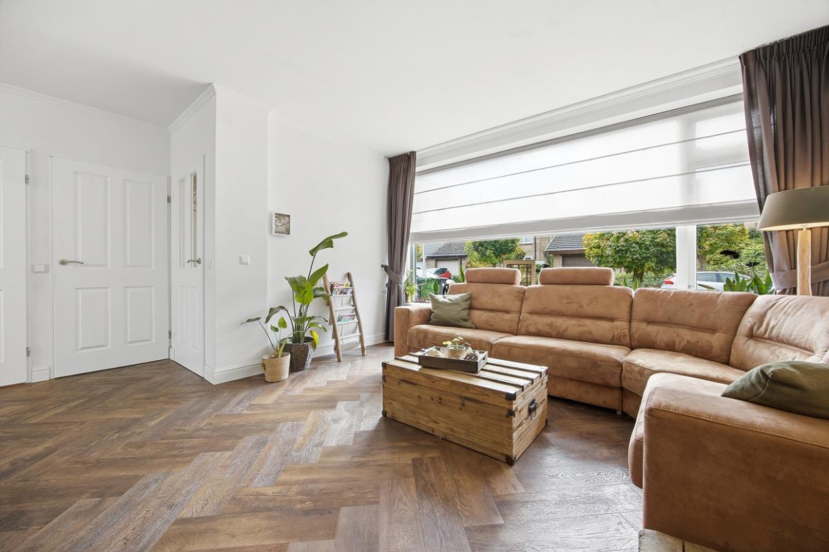 De ruime woonkamer heeft een groot raam aan de voorzijde waardoor u volop kunt genieten van het uitzicht op de voortuin en de rustige straat. Boven het raam hangt een zonnescherm. Aan de achterzijde bevindt zich de eetkamer, in de uitbouw (2020) met zicht op de keuken en de tuin. Vanuit deze ruimte heeft u ook toegang naar de achtertuin. De keuken (2014), met een neutrale uitstraling, is voorzien van veel bergruimte, soft close laden, voldoende stroompunten en diverse inbouwapparatuur: een inductie kookplaat met afzuigkap, vaatwasser, combi oven en een koel- vriescombinatie.