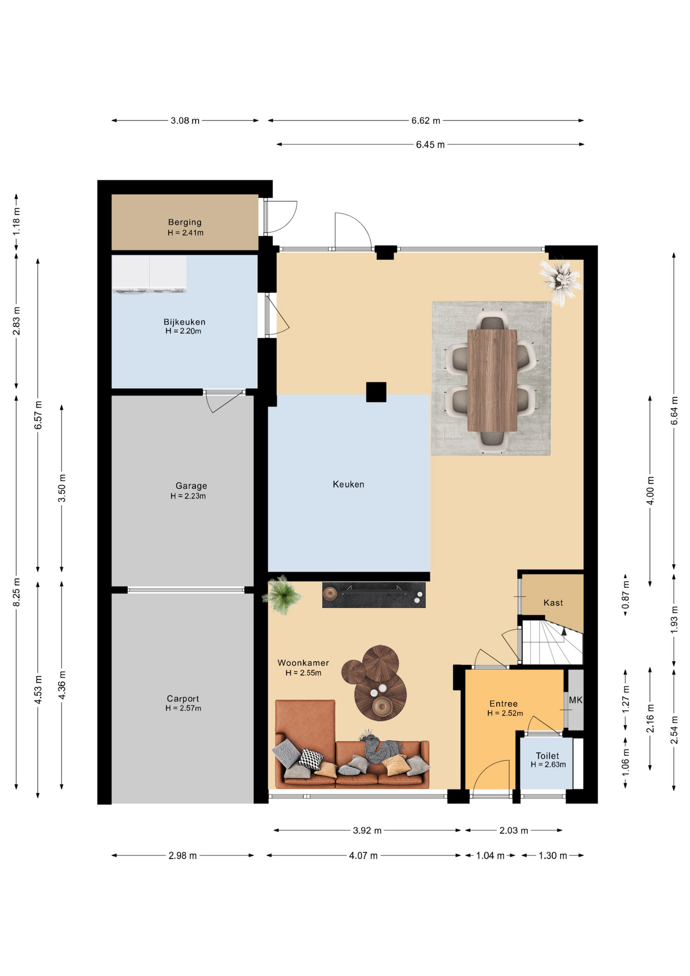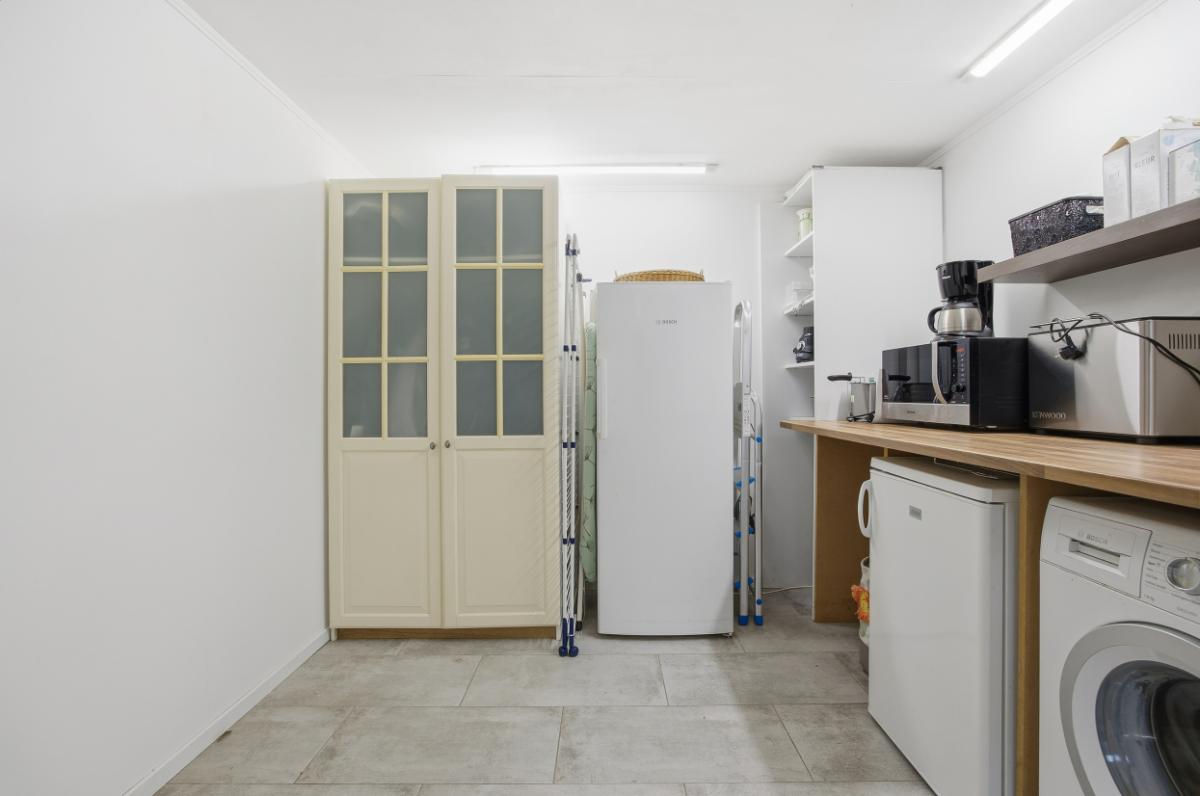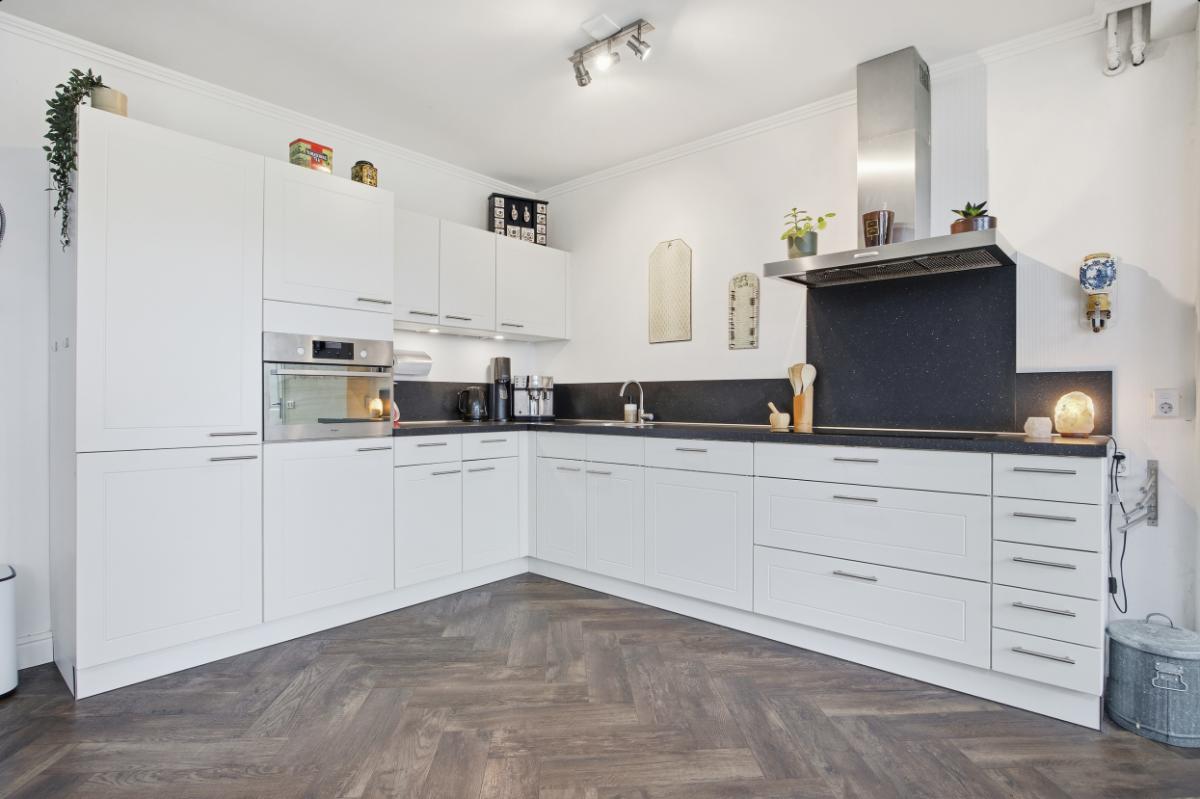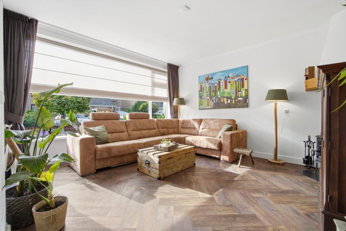 De ruime woonkamer heeft een groot raam aan de voorzijde waardoor u volop kunt genieten van het uitzicht op de voortuin en de rustige straat. Boven het raam hangt een zonnescherm. Aan de achterzijde bevindt zich de eetkamer, in de uitbouw (2020) met zicht op de keuken en de tuin. Vanuit deze ruimte heeft u ook toegang naar de achtertuin. De keuken (2014), met een neutrale uitstraling, is voorzien van veel bergruimte, soft close laden, voldoende stroompunten en diverse inbouwapparatuur: een inductie kookplaat met afzuigkap, vaatwasser, combi oven en een koel- vriescombinatie.