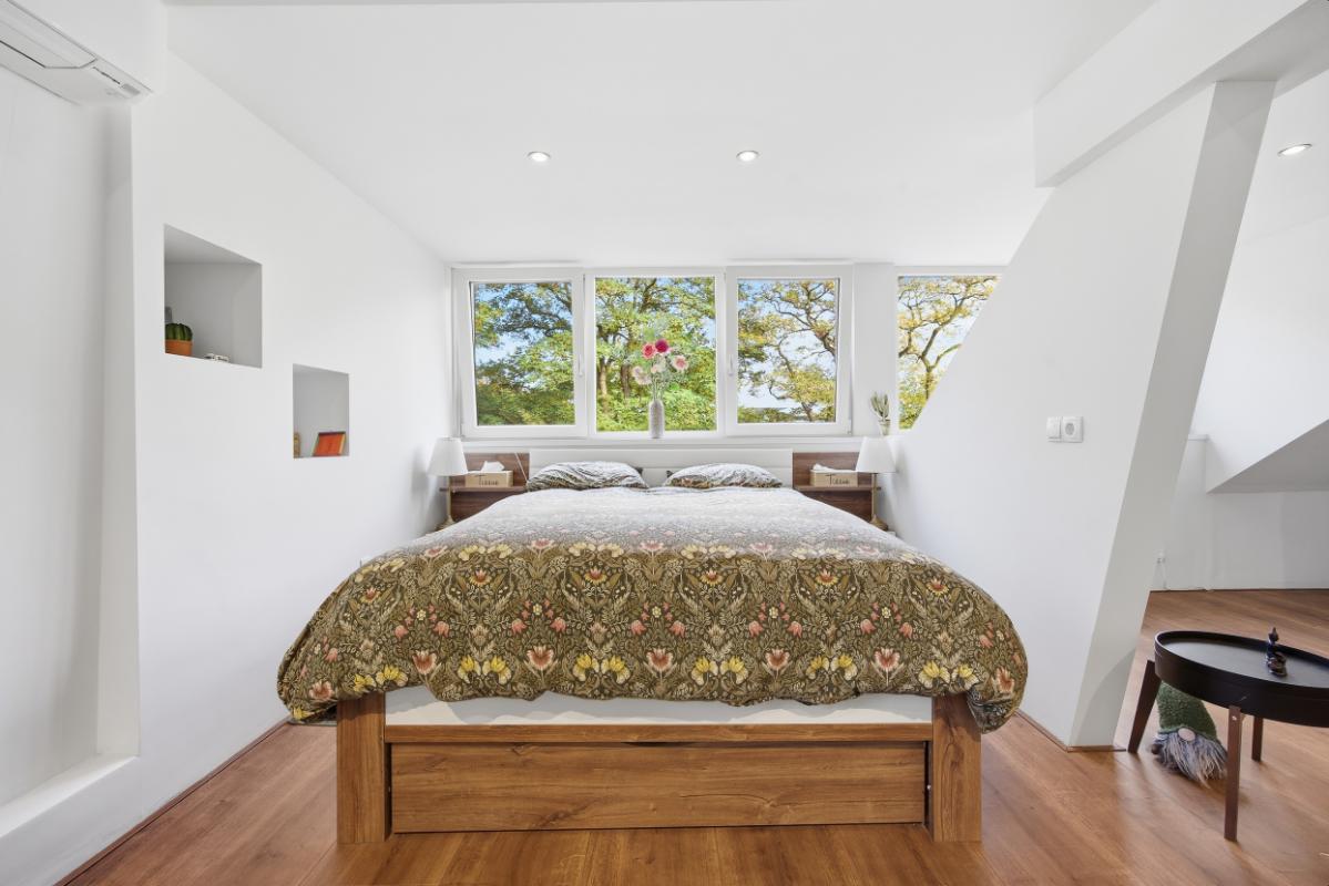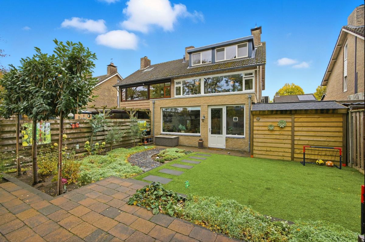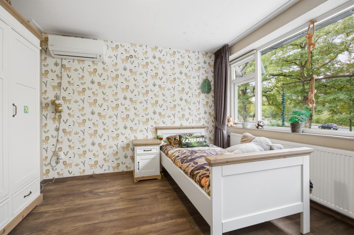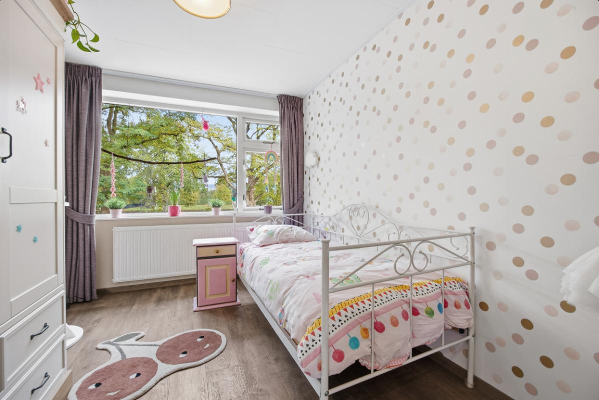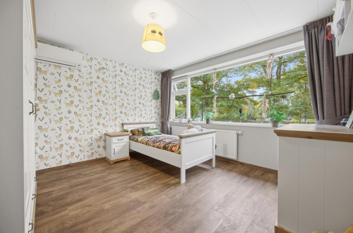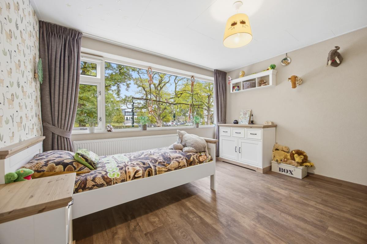 De vijf slaapkamers waarvan 1 op de enorme zolder, bieden veel wooncomfort. Parkeren kan op de oprit, onder de carport en/of in de garage.