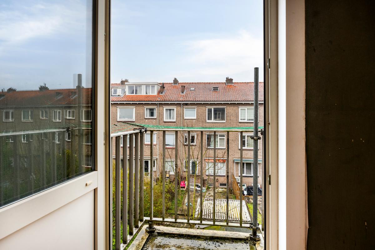 Het balkon, bereikbaar via de slaapkamer, is een fijne plek om even buiten te zitten en te genieten van de ochtendzon.