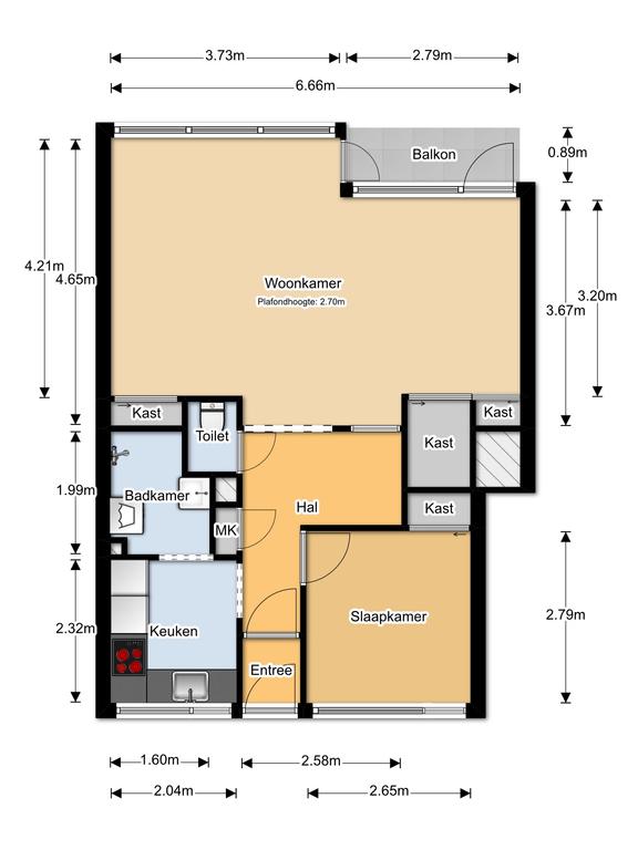 Indeling: Begane grond: Bij binnenkomst tref je een nette, goed onderhouden entree met brievenbussen, bellentableau, lift en trappenhuis. Op de begane grond beschik je over een eigen berging, handig voor fietsen, koffers of seizoensspullen.