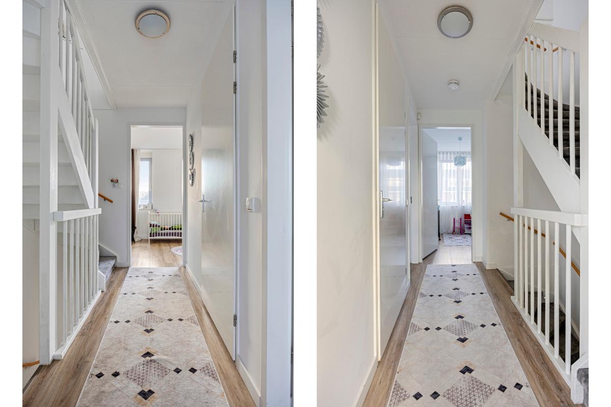 Begane grond Via de verzorgde voortuin kom je binnen in de hal met modern toilet, meterkast en trapopgang. De ruime woonkamer biedt volop mogelijkheden voor een gezellige zithoek en een royale eethoek.