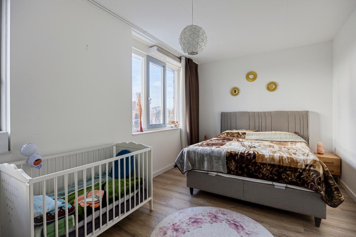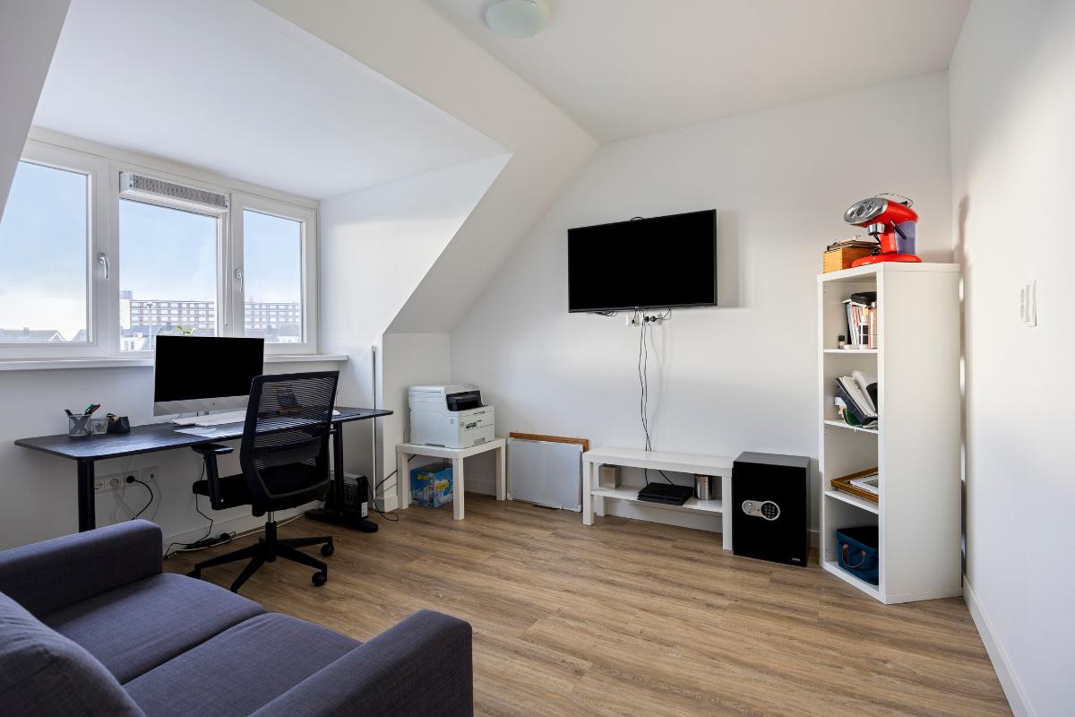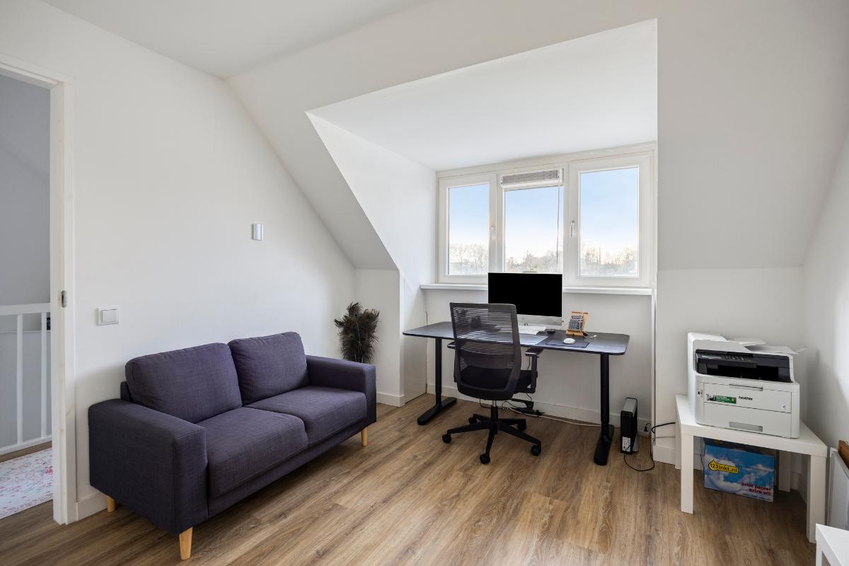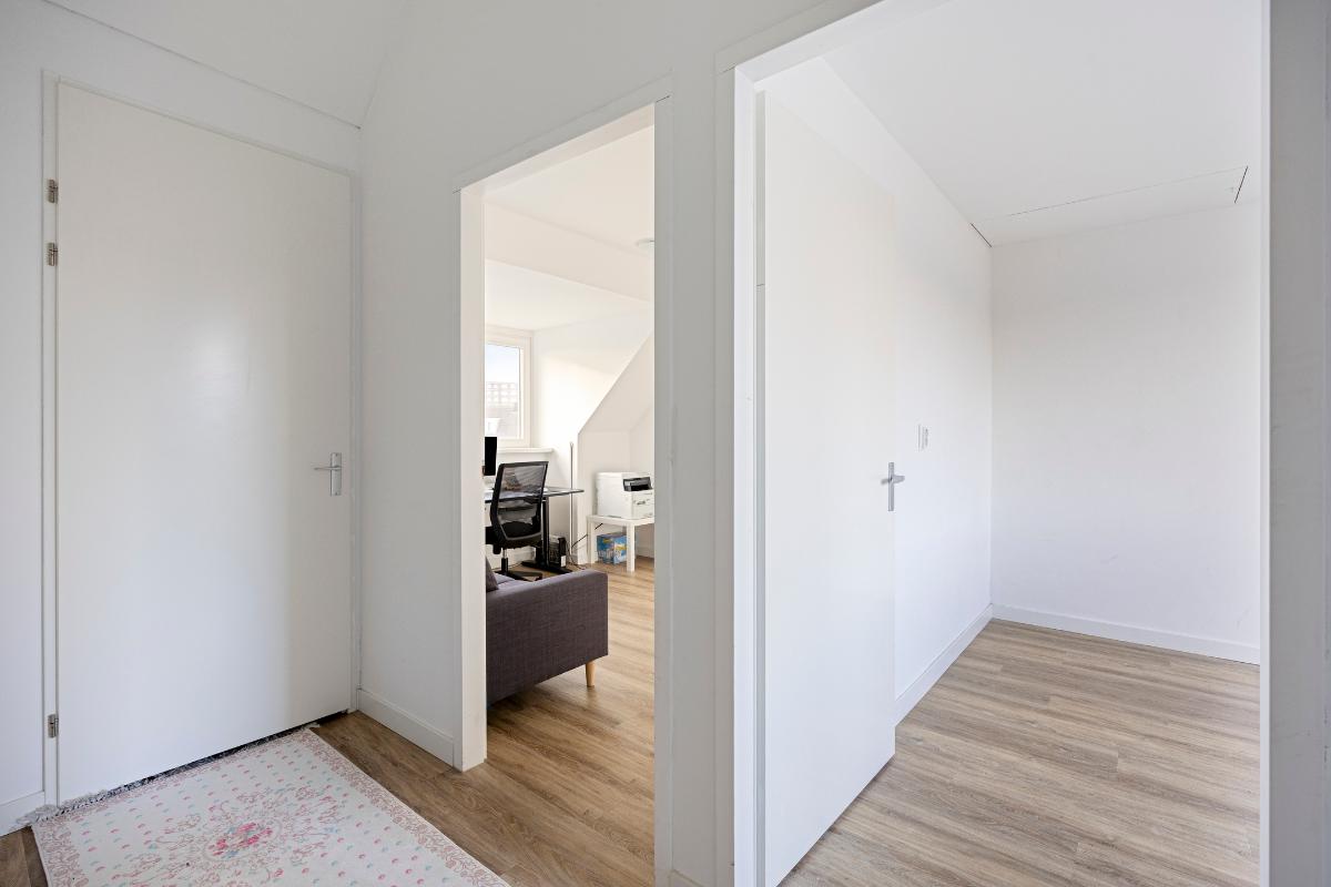 Een royale zolderruimte met 2 ruime slaapkamers. Tevens bevindt zich hier de wasruimte met aansluitingen voor wasmachine en droger, de cv-ketel en de mechanische ventilatie-unit. Tevens toegang tot een vliering geschikt voor berging.