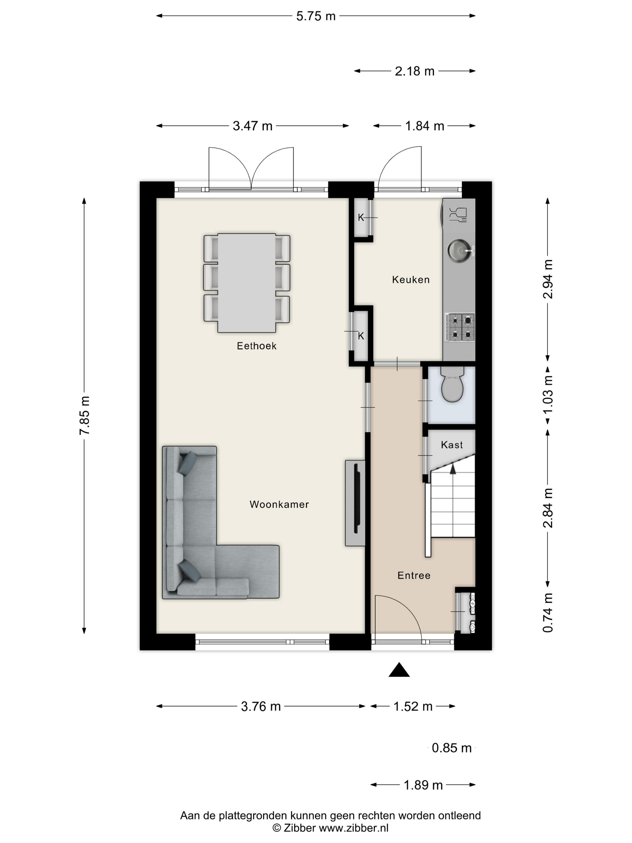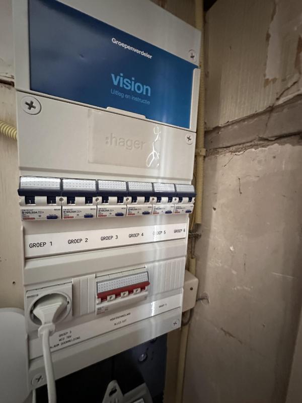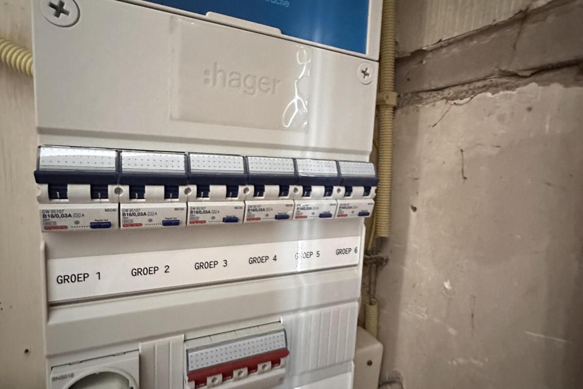 Begane grond Entree Via de kunststof voordeur met HR++-beglazing betreed je de woning. In de hal bevinden zich de vernieuwde meterkast (6 groepen, hoofdschakelaar, aardlekschakelaars en glasvezelaansluiting), de vaste trap naar de eerste verdieping, een praktische trapkast en het toilet, voorzien van een staand closet en mechanische ventilatie.